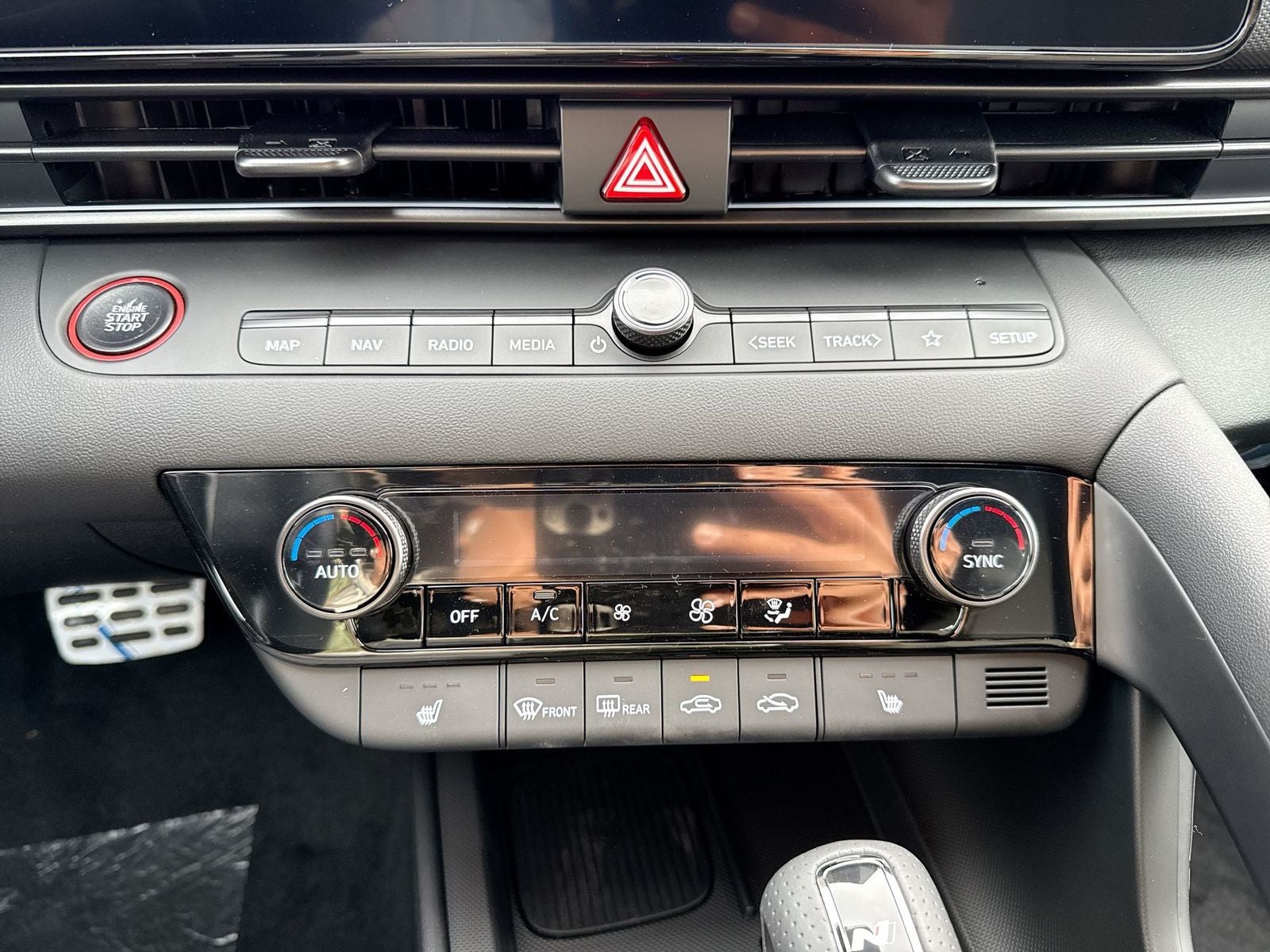 **SUNROOF/MOONROOF**, **NAVIGATION**, **LEATHER SEATS**, **PUSH BUTTON START**, **KEYLESS ENTRY**, **BACKUP CAMERA**, **Bluetooth®**, **RAIN SENSING WIPERS!**, **REMOTE START**, **APPLE CARPLAY/ANDROID AUTO**, **ADAPTIVE CRUISE CONTROL**, PORTABLE AUDIO CONNECTION/MP3, **BOSE PREMIUM AUDIO**, Cargo Blocks, Cargo Net, Cargo Package, Cargo Tray, Carpeted Floor Mats, First Aid Kit, Option Group 01, Rear Bumper Applique. $1,491 off MSRP! With options like Cargo Package (Cargo Blocks and Cargo Tray), Option Group 01, Cargo Net, Carpeted Floor Mats, First Aid Kit, Rear Bumper Applique, 18 x 7.5J Alloy Wheels, 4-Wheel Disc Brakes, 8 Speakers, ABS brakes, Air Conditioning, Alloy wheels, AM/FM radio: SiriusXM, Apple CarPlay & Android Auto, Auto High-beam Headlights, Automatic temperature control, Brake assist, Bumpers: body-color, Delay-off headlights, Driver door bin, Driver vanity mirror, Dual front impact airbags, Dual front side impact airbags, Electronic Stability Control, Exterior Parking Camera Rear, Four wheel independent suspension, Front anti-roll bar, Front Bucket Seats, Front Center Armrest, Front dual zone A/C, Front reading lights, Fully automatic headlights, Heated door mirrors, Heated front seats, Heated Front Sport Bucket Seats, Illuminated entry, Leather Shift Knob, Leather steering wheel, Low tire pressure warning, Navigation System, Occupant sensing airbag, Outside temperature display, Overhead airbag, Overhead console, Panic alarm, Passenger door bin, Passenger vanity mirror, Power door mirrors, Power driver seat, Power moonroof, Power steering, Power windows, Radio: AM/FM/HD/SiriusXM Display Audio, Rear anti-roll bar, Rear seat center armrest, Rear side impact airbag, Rear window defroster, Remote keyless entry, Security system, Speed control, Speed-sensing steering, Split folding rear seat, Spoiler, Sport steering wheel, Steering wheel mounted audio controls, Tachometer, Telescoping steering wheel, Tilt steering wheel, Traction control, Trip computer, Turn signal indicator mirrors, and Variably intermittent wipers. Ecotronic Gray 2026 Hyundai Elantra N Line FWD 7-Speed Dual Clutch DCT I4