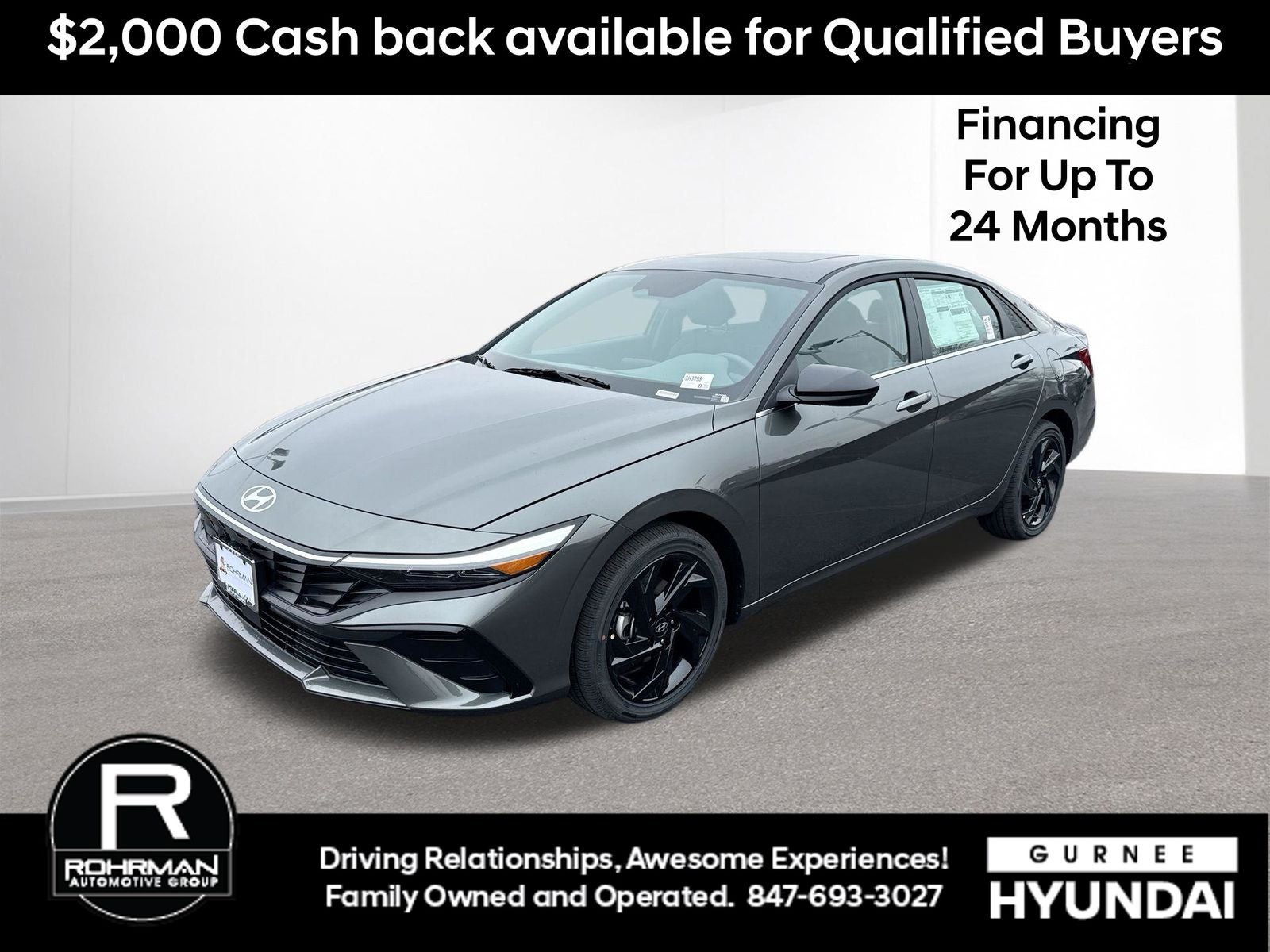 **PUSH BUTTON START**, **KEYLESS ENTRY**, **BACKUP CAMERA**, **Bluetooth®**, **REMOTE START**, **BLIND SPOT MONITOR**, **APPLE CARPLAY/ANDROID AUTO**, **ADAPTIVE CRUISE CONTROL**, PORTABLE AUDIO CONNECTION/MP3, Cargo Blocks, Cargo Package, Cargo Tray, Option Group 01. $2,904 off MSRP! Priced below KBB Fair Purchase Price! With options like Cargo Package (Cargo Blocks and Cargo Tray), Option Group 01, 4-Wheel Disc Brakes, 6 Speakers, ABS brakes, Air Conditioning, Alloy wheels, AM/FM radio, Apple CarPlay & Android Auto, Auto High-beam Headlights, Automatic temperature control, Brake assist, Bumpers: body-color, Cargo Net, Carpeted Floor Mats, Delay-off headlights, Driver door bin, Driver vanity mirror, Dual front impact airbags, Dual front side impact airbags, Electronic Stability Control, Exterior Parking Camera Rear, First Aid Kit, Front anti-roll bar, Front Bucket Seats, Front Center Armrest, Front dual zone A/C, Front reading lights, Front wheel independent suspension, Fully automatic headlights, Heated door mirrors, Heated Front Bucket Seats, Heated front seats, Illuminated entry, Low tire pressure warning, Occupant sensing airbag, Outside temperature display, Overhead airbag, Overhead console, Panic alarm, Passenger door bin, Passenger vanity mirror, Power door mirrors, Power moonroof, Power steering, Power windows, Premium Cloth Seat Trim, Radio: AM/FM/HD Display Audio, Rear Bumper Applique, Rear seat center armrest, Rear side impact airbag, Rear window defroster, Remote keyless entry, Roadside Assistance Kit, Security system, Speed control, Speed-sensing steering, Split folding rear seat, Spoiler, Steering wheel mounted audio controls, Tachometer, Telescoping steering wheel, Tilt steering wheel, Traction control, Trip computer, Variably intermittent wipers, and Wheels: 17 x 7.0J Alloy Gloss Black w/Dark Finish. Amazon Gray 2026 Hyundai Elantra SEL Sport FWD CVT I4
