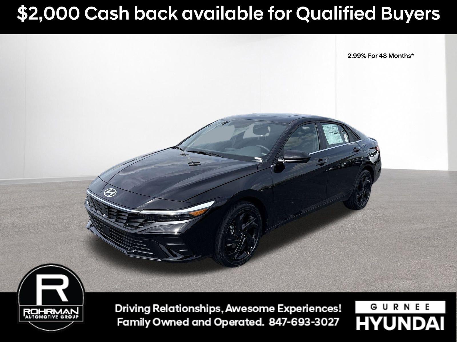 **SUNROOF/MOONROOF**, **PUSH BUTTON START**, **KEYLESS ENTRY**, **BACKUP CAMERA**, **Bluetooth®**, **REMOTE START**, **BLIND SPOT MONITOR**, **APPLE CARPLAY/ANDROID AUTO**, **ADAPTIVE CRUISE CONTROL**, PORTABLE AUDIO CONNECTION/MP3. $2,904 off MSRP! Priced below KBB Fair Purchase Price! With options like Cargo Package (Cargo Blocks and Cargo Tray), Option Group 01, 4-Wheel Disc Brakes, 6 Speakers, ABS brakes, Air Conditioning, Alloy wheels, AM/FM radio, Apple CarPlay & Android Auto, Auto High-beam Headlights, Automatic temperature control, Brake assist, Bumpers: body-color, Cargo Net, Delay-off headlights, Driver door bin, Driver vanity mirror, Dual front impact airbags, Dual front side impact airbags, Electronic Stability Control, Exterior Parking Camera Rear, Front anti-roll bar, Front Bucket Seats, Front Center Armrest, Front dual zone A/C, Front reading lights, Front wheel independent suspension, Fully automatic headlights, Heated door mirrors, Heated Front Bucket Seats, Heated front seats, Illuminated entry, Low tire pressure warning, Occupant sensing airbag, Outside temperature display, Overhead airbag, Overhead console, Panic alarm, Passenger door bin, Passenger vanity mirror, Power door mirrors, Power moonroof, Power steering, Power windows, Premium Cloth Seat Trim, Radio: AM/FM/HD Display Audio, Rear seat center armrest, Rear side impact airbag, Rear window defroster, Remote keyless entry, Security system, Severe Weather Kit, Speed control, Speed-sensing steering, Split folding rear seat, Spoiler, Steering wheel mounted audio controls, Tachometer, Telescoping steering wheel, Tilt steering wheel, Traction control, Trip computer, Variably intermittent wipers, and Wheels: 17 x 7.0J Alloy Gloss Black w/Dark Finish. Abyss Black 2026 Hyundai Elantra SEL Sport FWD CVT I4