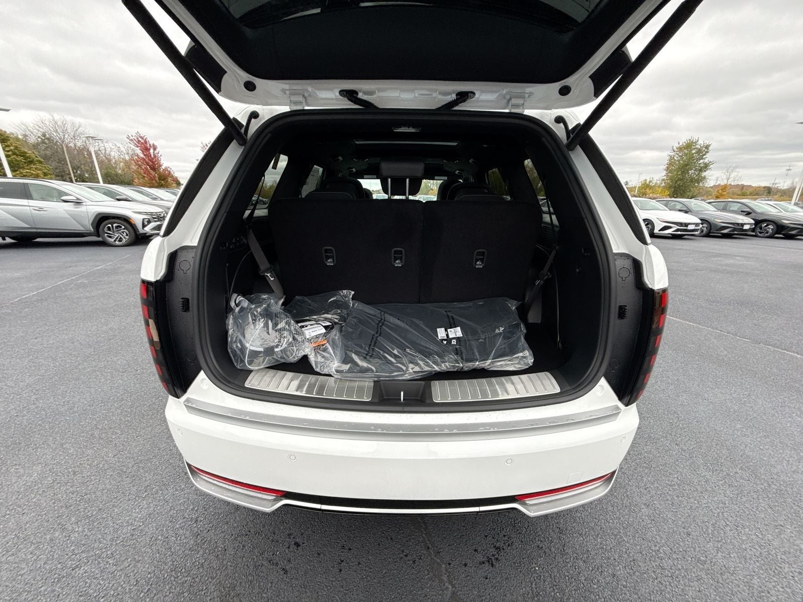**ALL WHEEL DRIVE**, **SUNROOF/MOONROOF**, ** 7 PASSENGER**, **NAVIGATION**, **LEATHER SEATS**, **3RD ROW SEATS**, **PUSH BUTTON START**, **KEYLESS ENTRY**, **BACKUP CAMERA**, **Bluetooth®**, **HEATED STEERING WHEEL**, **RAIN SENSING WIPERS!**, **POWER LIFTGATE**, **REMOTE START**, **BLIND SPOT MONITOR**, **APPLE CARPLAY/ANDROID AUTO**, **ADAPTIVE CRUISE CONTROL**, PORTABLE AUDIO CONNECTION/MP3, **BOSE PREMIUM AUDIO**. $2,644 off MSRP! Priced below KBB Fair Purchase Price! With options like Option Group 01, 14 Speakers, 3rd row seats: split-bench, 4-Wheel Disc Brakes, ABS brakes, Air Conditioning, All-Season Fitted Liners, Alloy wheels, AM/FM radio: SiriusXM, Apple CarPlay & Android Auto, Audio memory, Auto High-beam Headlights, Auto-dimming door mirrors, Auto-dimming Rear-View mirror, Auto-leveling suspension, Automatic temperature control, Brake assist, Bumpers: body-color, Cargo Net, Carpeted Floor Mats, Compass, Delay-off headlights, Driver door bin, Driver vanity mirror, Dual front impact airbags, Dual front side impact airbags, Electronic Stability Control, Exterior Parking Camera Rear, First Aid Kit, Four wheel independent suspension, Front anti-roll bar, Front Bucket Seats, Front Center Armrest, Front dual zone A/C, Front reading lights, Fully automatic headlights, Garage door transmitter: HomeLink, Genuine wood console insert, Genuine wood dashboard insert, Heads-Up Display, Heated door mirrors, Heated front seats, Heated rear seats, Heated steering wheel, HVAC memory, Illuminated entry, Knee airbag, Leather steering wheel, Low tire pressure warning, Memory seat, Navigation System, Occupant sensing airbag, Outside temperature display, Overhead airbag, Overhead console, Panic alarm, Passenger door bin, Passenger vanity mirror, Power door mirrors, Power driver seat, Power Liftgate, Power moonroof, Power passenger seat, Power steering, Power windows, Premium Nappa Leather Seat Trim, Radio data system, Radio: Infotainment Navigation System, Rain sensing wipers, Rear air conditioning, Rear anti-roll bar, Rear audio controls, Rear reading lights, Rear side impact airbag, Rear window defroster, Rear window wiper, Reclining 3rd row seat, Remote keyless entry, Roadside Assistance Kit, Security system, Speed control, Split folding rear seat, Spoiler, Steering wheel mounted audio controls, Tachometer, Telescoping steering wheel, Tilt steering wheel, Traction control, Trip computer, Turn signal indicator mirrors, Variably intermittent wipers, Ventilated front seats, Ventilated rear seats, and Wheels: 21 x 8.5J Alloy. Creamy White Pearl 2026 Hyundai Palisade Calligraphy AWD 8-Speed Automatic V6