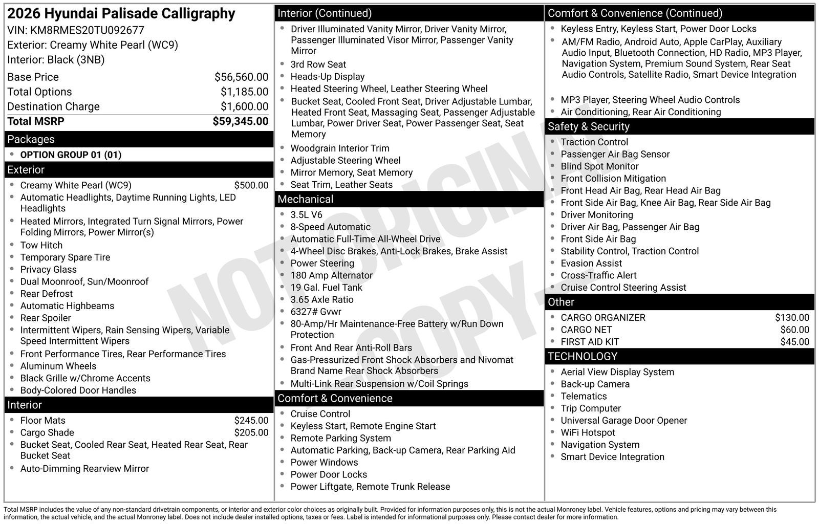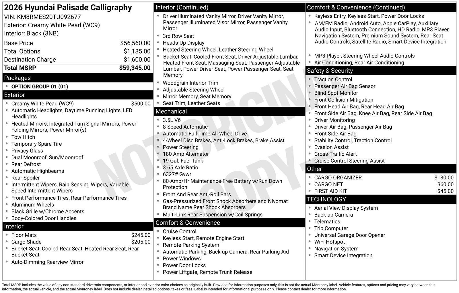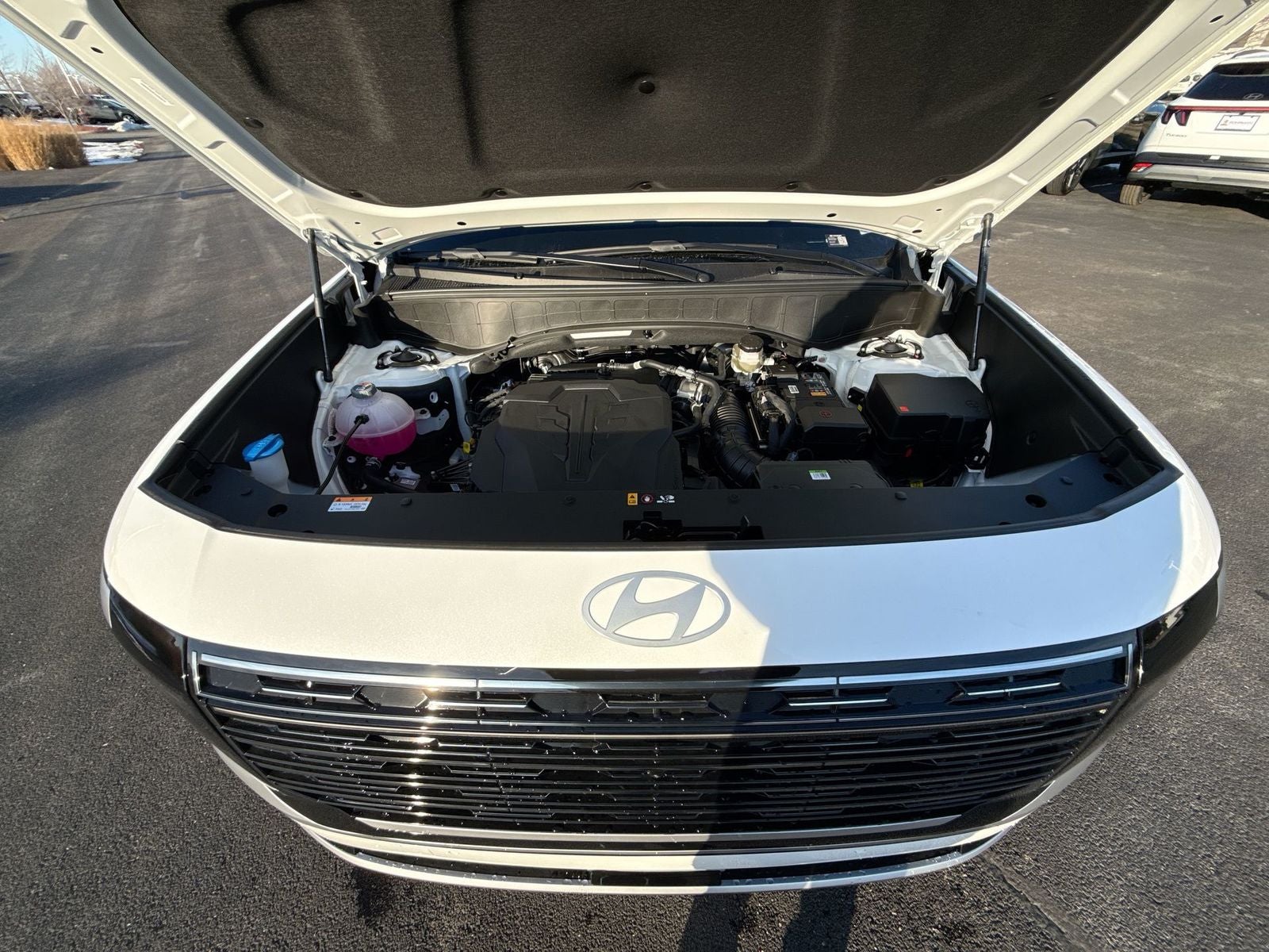 **ALL WHEEL DRIVE**, **SUNROOF/MOONROOF**, ** 7 PASSENGER**, **NAVIGATION**, **LEATHER SEATS**, **3RD ROW SEATS**, **PUSH BUTTON START**, **KEYLESS ENTRY**, **BACKUP CAMERA**, **Bluetooth®**, **HEATED STEERING WHEEL**, **RAIN SENSING WIPERS!**, **POWER LIFTGATE**, **REMOTE START**, **BLIND SPOT MONITOR**, **APPLE CARPLAY/ANDROID AUTO**, **ADAPTIVE CRUISE CONTROL**, PORTABLE AUDIO CONNECTION/MP3, **BOSE PREMIUM AUDIO**, Navigation System, Option Group 01. $3,642 off MSRP! Priced below KBB Fair Purchase Price! With options like Option Group 01, Navigation System, 14 Speakers, 3rd row seats: split-bench, 4-Wheel Disc Brakes, ABS brakes, Air Conditioning, Alloy wheels, AM/FM radio: SiriusXM, Apple CarPlay & Android Auto, Audio memory, Auto High-beam Headlights, Auto-dimming door mirrors, Auto-dimming Rear-View mirror, Auto-leveling suspension, Automatic temperature control, Brake assist, Bumpers: body-color, Cargo Cover, Cargo Net, Cargo Organizer, Carpeted Floor Mats, Compass, Delay-off headlights, Driver door bin, Driver vanity mirror, Dual front impact airbags, Dual front side impact airbags, Electronic Stability Control, Emergency communication system: None, Exterior Parking Camera Rear, First Aid Kit, Four wheel independent suspension, Front anti-roll bar, Front Bucket Seats, Front Center Armrest, Front dual zone A/C, Front reading lights, Fully automatic headlights, Garage door transmitter: HomeLink, Genuine wood console insert, Genuine wood dashboard insert, Heads-Up Display, Heated and Ventilated Front Bucket Seats, Heated door mirrors, Heated front seats, Heated rear seats, Heated steering wheel, HVAC memory, Illuminated entry, Knee airbag, Leather steering wheel, Low tire pressure warning, Memory seat, Occupant sensing airbag, Outside temperature display, Overhead airbag, Overhead console, Panic alarm, Passenger door bin, Passenger vanity mirror, Power door mirrors, Power driver seat, Power Liftgate, Power moonroof, Power passenger seat, Power steering, Power windows, Premium Nappa Leather Seat Trim, Radio data system, Radio: Infotainment Navigation System, Rain sensing wipers, Rear air conditioning, Rear anti-roll bar, Rear audio controls, Rear reading lights, Rear side impact airbag, Rear window defroster, Rear window wiper, Reclining 3rd row seat, Remote keyless entry, Security system, Speed control, Split folding rear seat, Spoiler, Steering wheel mounted audio controls, Tachometer, Telescoping steering wheel, Tilt steering wheel, Traction control, Trip computer, Turn signal indicator mirrors, Variably intermittent wipers, Ventilated front seats, Ventilated rear seats, and Wheels: 21 x 8.5J Alloy. Creamy White Pearl 2026 Hyundai Palisade Calligraphy AWD 8-Speed Automatic V6