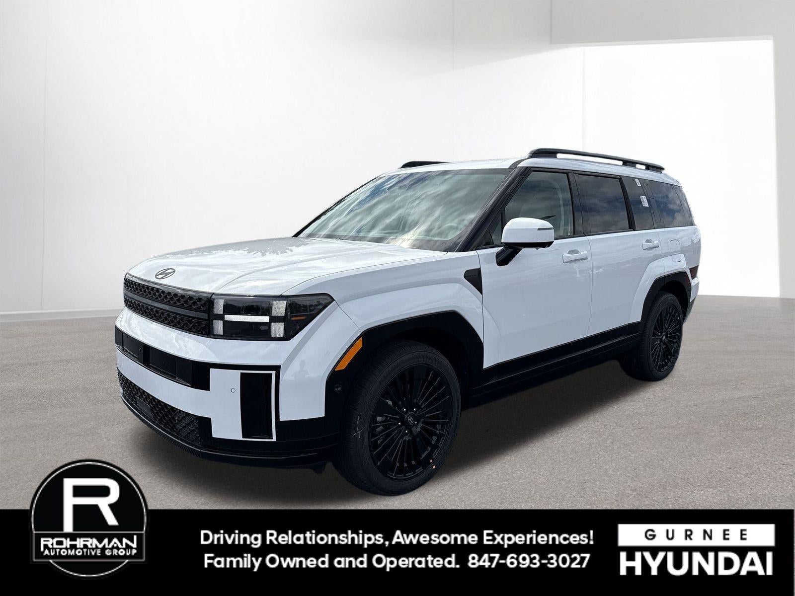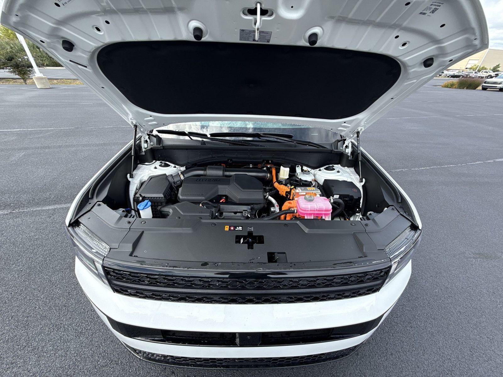**ALL WHEEL DRIVE**, **SUNROOF/MOONROOF**, **NAVIGATION**, **LEATHER SEATS**, **3RD ROW SEATS**, **PUSH BUTTON START**, **KEYLESS ENTRY**, **BACKUP CAMERA**, **Bluetooth®**, **HEATED STEERING WHEEL**, **RAIN SENSING WIPERS!**, **POWER LIFTGATE**, **REMOTE START**, **BLIND SPOT MONITOR**, **APPLE CARPLAY/ANDROID AUTO**, **ADAPTIVE CRUISE CONTROL**, PORTABLE AUDIO CONNECTION/MP3, **BOSE PREMIUM AUDIO**, Navigation System, Option Group 01. $2,725 off MSRP! With options like Option Group 01, Navigation System, 12 Speakers, 3rd row seats: bench, 4-Wheel Disc Brakes, ABS brakes, Air Conditioning, All Season Fitted Liners, Alloy wheels, AM/FM radio: SiriusXM, Apple CarPlay & Android Auto, Auto High-beam Headlights, Auto-dimming Rear-View mirror, Automatic temperature control, Brake assist, Bumpers: body-color, Cargo Net, Cargo Tray, Carpeted Floor Mats, Delay-off headlights, Driver door bin, Driver vanity mirror, Dual front impact airbags, Dual front side impact airbags, Electronic Stability Control, Emergency communication system, Exterior Parking Camera Rear, First Aid Kit, Four wheel independent suspension, Front anti-roll bar, Front Bucket Seats, Front Center Armrest, Front dual zone A/C, Front reading lights, Fully automatic headlights, Garage door transmitter: HomeLink, Heads-Up Display, Heated door mirrors, Heated front seats, Heated rear seats, Heated steering wheel, Illuminated entry, Knee airbag, Leather steering wheel, Low tire pressure warning, Memory seat, Occupant sensing airbag, Outside temperature display, Overhead airbag, Overhead console, Panic alarm, Passenger door bin, Passenger vanity mirror, Power door mirrors, Power driver seat, Power Liftgate, Power moonroof, Power passenger seat, Power steering, Power windows, Quilted Premium Nappa Leather Seat Trim, Radio: AM/FM/HD Bose Premium Audio System, Rain sensing wipers, Rear anti-roll bar, Rear side impact airbag, Rear window defroster, Rear window wiper, Remote keyless entry, Roadside Assistance Kit, Roof Rack Crossbars, Security system, Speed control, Speed-sensing steering, Split folding rear seat, Spoiler, Steering wheel mounted audio controls, Tachometer, Telescoping steering wheel, Tilt steering wheel, Traction control, Trip computer, Turn signal indicator mirrors, Variably intermittent wipers, Ventilated front seats, and Wheels: 20 x 8.5J Unique Dark Finish Alloy. Serenity White 2026 Hyundai Santa Fe Hybrid Calligraphy AWD 6-Speed Automatic with Shiftronic I4