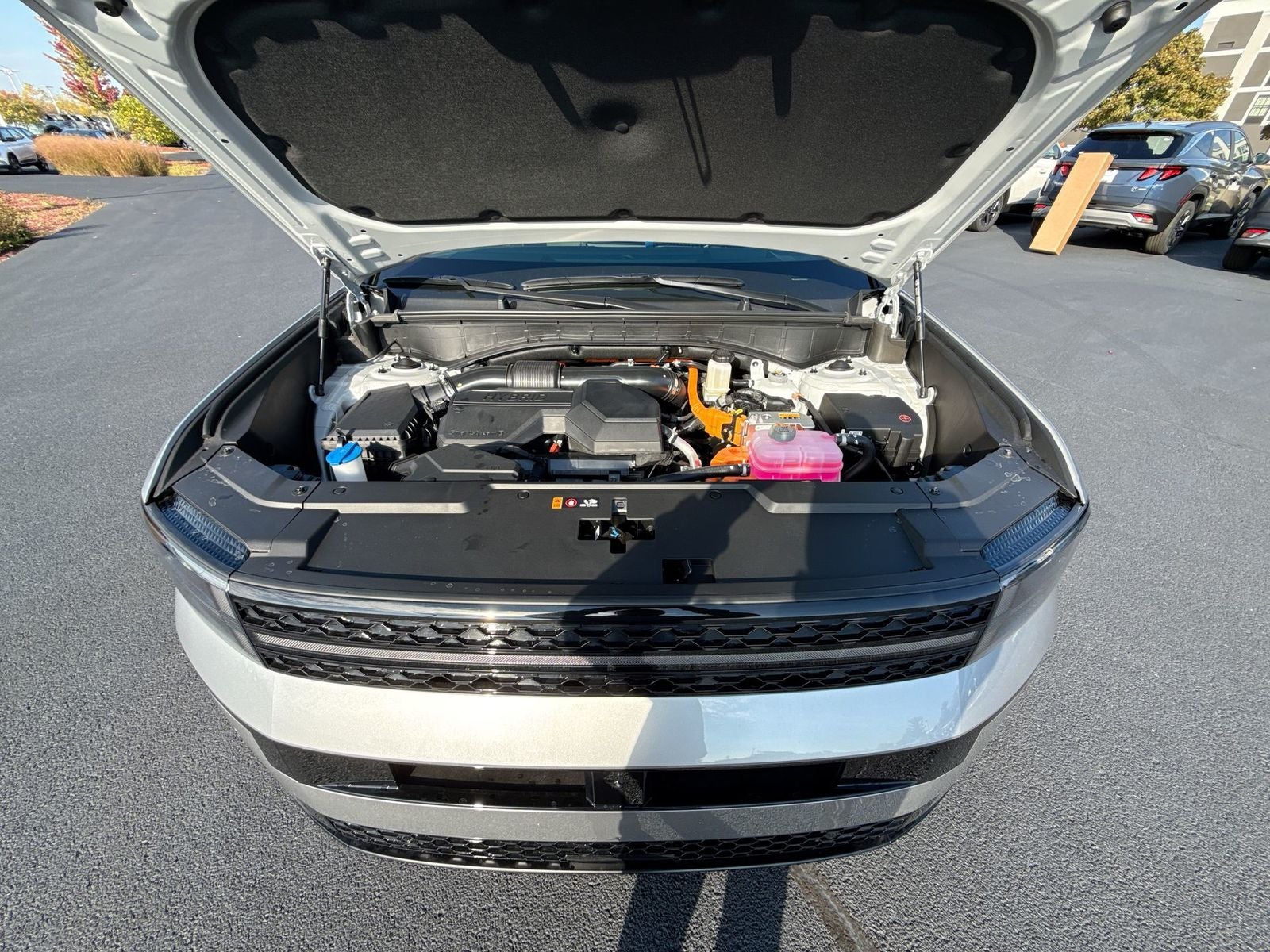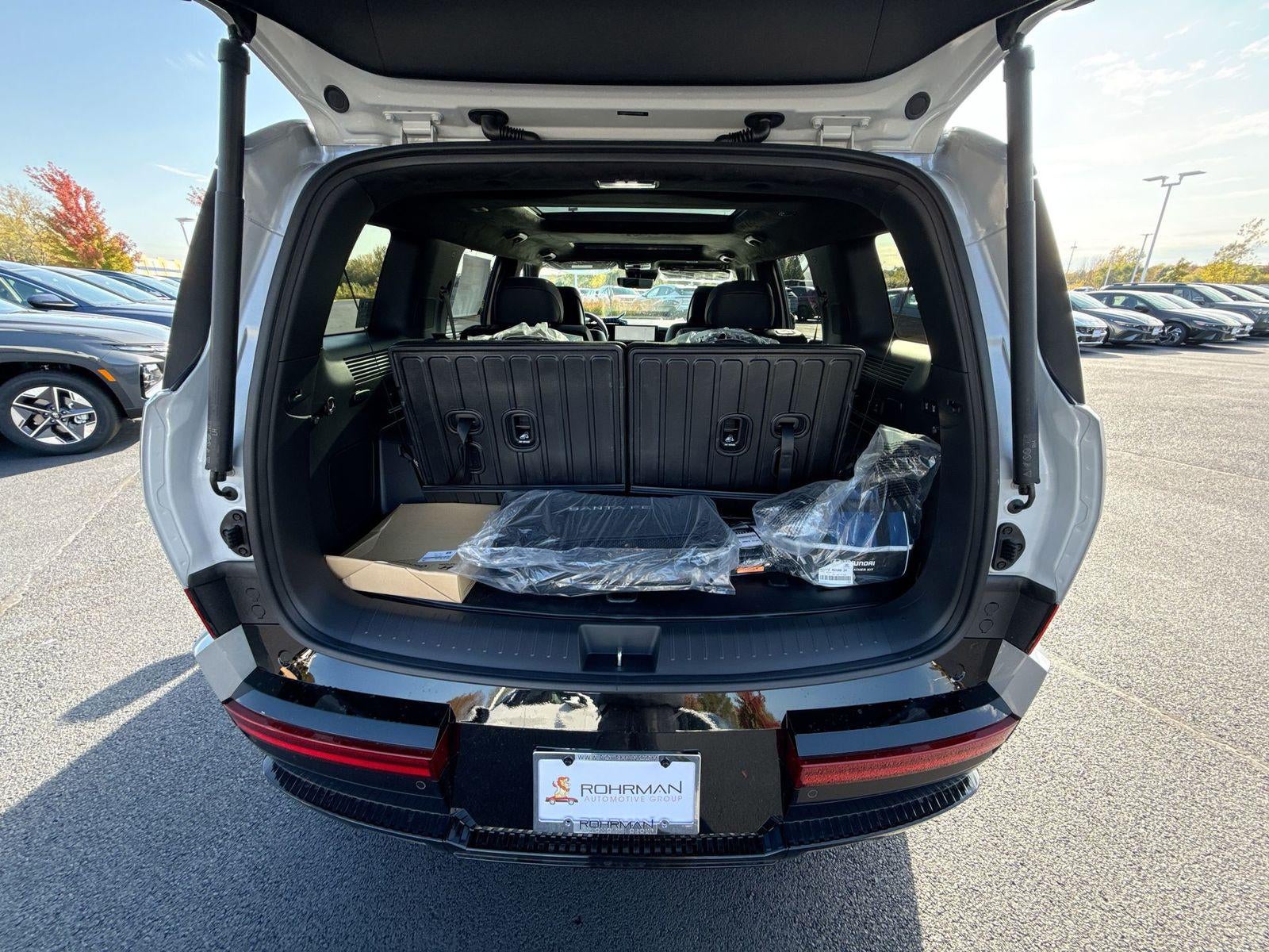 **ALL WHEEL DRIVE**, **SUNROOF/MOONROOF**, **NAVIGATION**, **LEATHER SEATS**, **3RD ROW SEATS**, **PUSH BUTTON START**, **KEYLESS ENTRY**, **BACKUP CAMERA**, **Bluetooth®**, **HEATED STEERING WHEEL**, **RAIN SENSING WIPERS!**, **POWER LIFTGATE**, **REMOTE START**, **BLIND SPOT MONITOR**, **APPLE CARPLAY/ANDROID AUTO**, **ADAPTIVE CRUISE CONTROL**, PORTABLE AUDIO CONNECTION/MP3, **BOSE PREMIUM AUDIO**, Cargo Net, Cargo Tray, Carpeted Floor Mats, First Aid Kit, Roof Rack Crossbars, Severe Weather Kit. $1,186 off MSRP! With options like Option Group 01, Cargo Net, Cargo Tray, Carpeted Floor Mats, First Aid Kit, Roof Rack Crossbars, Severe Weather Kit, 12 Speakers, 3rd row seats: bench, 4-Wheel Disc Brakes, ABS brakes, Air Conditioning, Alloy wheels, AM/FM radio: SiriusXM, Apple CarPlay & Android Auto, Auto High-beam Headlights, Auto-dimming Rear-View mirror, Automatic temperature control, Brake assist, Bumpers: body-color, Delay-off headlights, Driver door bin, Driver vanity mirror, Dual front impact airbags, Dual front side impact airbags, Electronic Stability Control, Emergency communication system, Exterior Parking Camera Rear, Four wheel independent suspension, Front anti-roll bar, Front Bucket Seats, Front Center Armrest, Front dual zone A/C, Front reading lights, Fully automatic headlights, Garage door transmitter: HomeLink, Heads-Up Display, Heated door mirrors, Heated front seats, Heated rear seats, Heated steering wheel, Illuminated entry, Knee airbag, Leather steering wheel, Low tire pressure warning, Memory seat, Navigation System, Occupant sensing airbag, Outside temperature display, Overhead airbag, Overhead console, Panic alarm, Passenger door bin, Passenger vanity mirror, Power door mirrors, Power driver seat, Power Liftgate, Power moonroof, Power passenger seat, Power steering, Power windows, Quilted Premium Nappa Leather Seat Trim, Radio: AM/FM/HD Bose Premium Audio System, Rain sensing wipers, Rear anti-roll bar, Rear side impact airbag, Rear window defroster, Rear window wiper, Remote keyless entry, Security system, Speed control, Speed-sensing steering, Split folding rear seat, Spoiler, Steering wheel mounted audio controls, Tachometer, Telescoping steering wheel, Tilt steering wheel, Traction control, Trip computer, Turn signal indicator mirrors, Variably intermittent wipers, Ventilated front seats, and Wheels: 20 x 8.5J Unique Dark Finish Alloy. Shimmering Silver 2026 Hyundai Santa Fe Hybrid Calligraphy AWD 6-Speed Automatic with Shiftronic I4