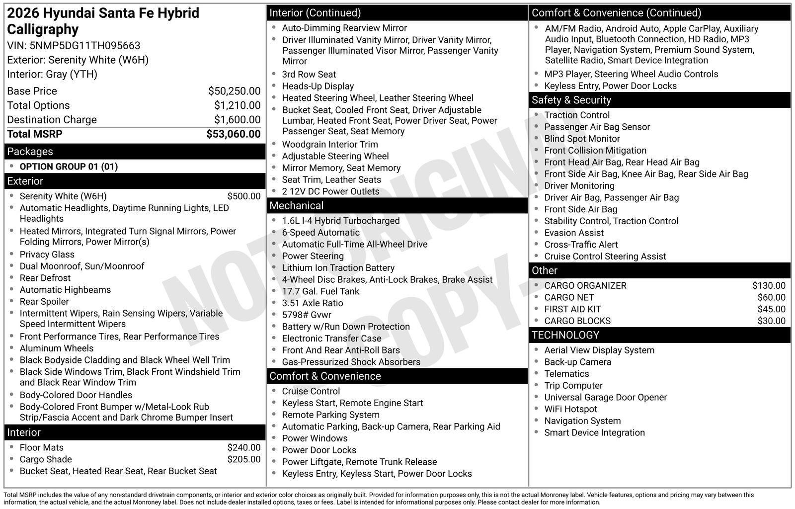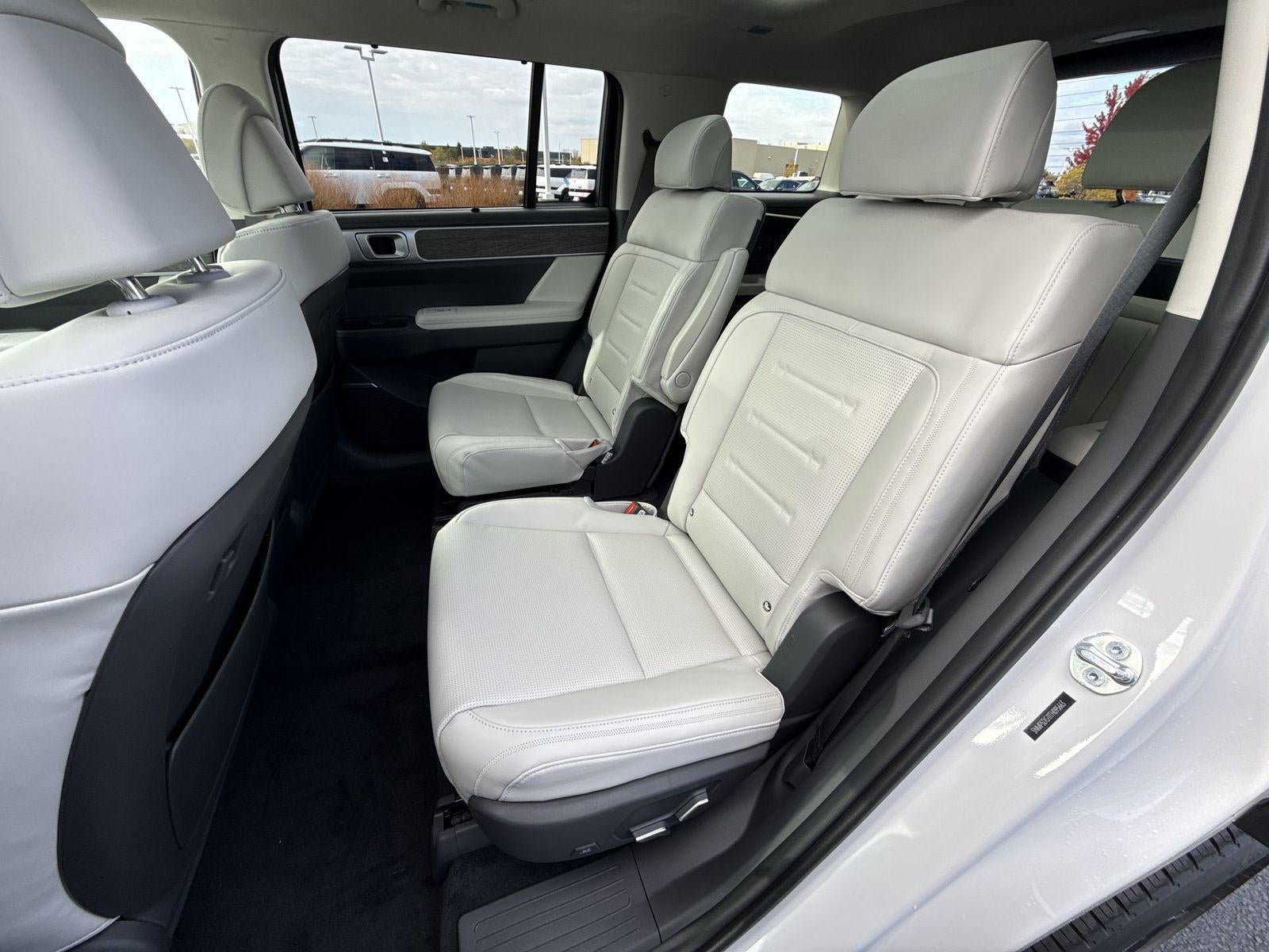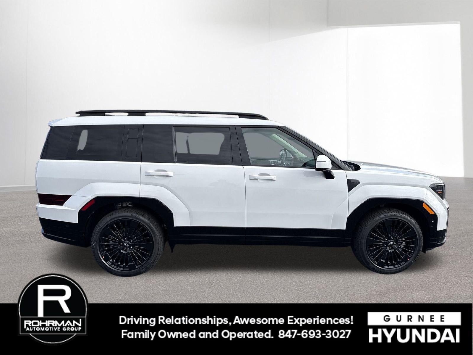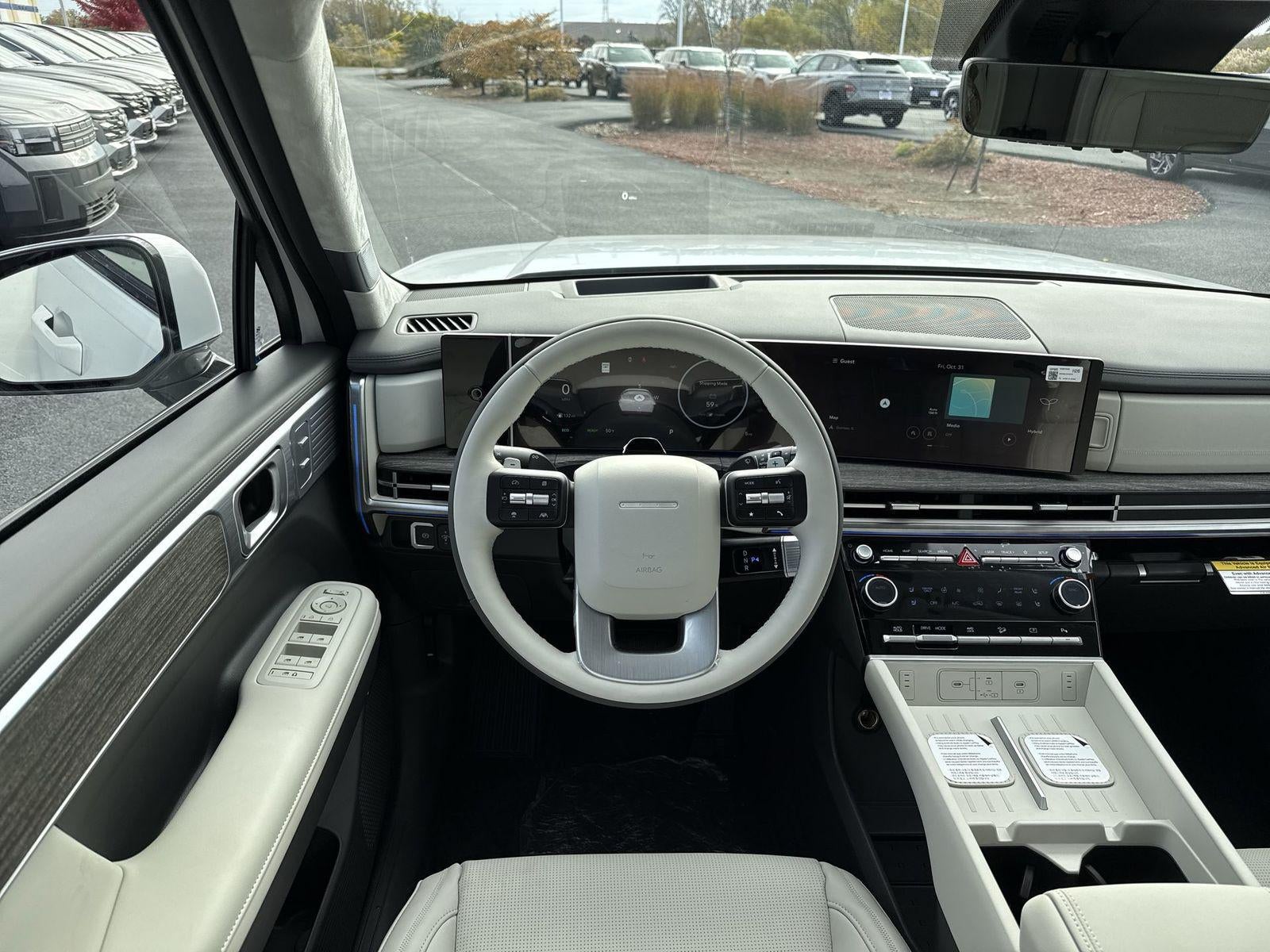 **ALL WHEEL DRIVE**, **SUNROOF/MOONROOF**, **NAVIGATION**, **LEATHER SEATS**, **3RD ROW SEATS**, **PUSH BUTTON START**, **KEYLESS ENTRY**, **BACKUP CAMERA**, **Bluetooth®**, **HEATED STEERING WHEEL**, **RAIN SENSING WIPERS!**, **POWER LIFTGATE**, **REMOTE START**, **BLIND SPOT MONITOR**, **APPLE CARPLAY/ANDROID AUTO**, **ADAPTIVE CRUISE CONTROL**, PORTABLE AUDIO CONNECTION/MP3, **BOSE PREMIUM AUDIO**, Navigation System, Option Group 01. $2,649 off MSRP! With options like Option Group 01, Navigation System, 12 Speakers, 3rd row seats: bench, 4-Wheel Disc Brakes, ABS brakes, Air Conditioning, Alloy wheels, AM/FM radio: SiriusXM, Apple CarPlay & Android Auto, Auto High-beam Headlights, Auto-dimming Rear-View mirror, Automatic temperature control, Brake assist, Bumpers: body-color, Cargo Blocks, Cargo Cover/Screen, Cargo Net, Cargo Organizer, Carpeted Floor Mats, Delay-off headlights, Driver door bin, Driver vanity mirror, Dual front impact airbags, Dual front side impact airbags, Electronic Stability Control, Emergency communication system, Exterior Parking Camera Rear, First Aid Kit, Four wheel independent suspension, Front anti-roll bar, Front Bucket Seats, Front Center Armrest, Front dual zone A/C, Front reading lights, Fully automatic headlights, Garage door transmitter: HomeLink, Heads-Up Display, Heated door mirrors, Heated front seats, Heated rear seats, Heated steering wheel, Illuminated entry, Knee airbag, Leather steering wheel, Low tire pressure warning, Memory seat, Occupant sensing airbag, Outside temperature display, Overhead airbag, Overhead console, Panic alarm, Passenger door bin, Passenger vanity mirror, Power door mirrors, Power driver seat, Power Liftgate, Power moonroof, Power passenger seat, Power steering, Power windows, Quilted Premium Nappa Leather Seat Trim, Radio: AM/FM/HD Bose Premium Audio System, Rain sensing wipers, Rear anti-roll bar, Rear side impact airbag, Rear window defroster, Rear window wiper, Remote keyless entry, Security system, Speed control, Speed-sensing steering, Split folding rear seat, Spoiler, Steering wheel mounted audio controls, Tachometer, Telescoping steering wheel, Tilt steering wheel, Traction control, Trip computer, Turn signal indicator mirrors, Variably intermittent wipers, Ventilated front seats, and Wheels: 20 x 8.5J Unique Dark Finish Alloy. Serenity White 2026 Hyundai Santa Fe Hybrid Calligraphy AWD 6-Speed Automatic with Shiftronic I4