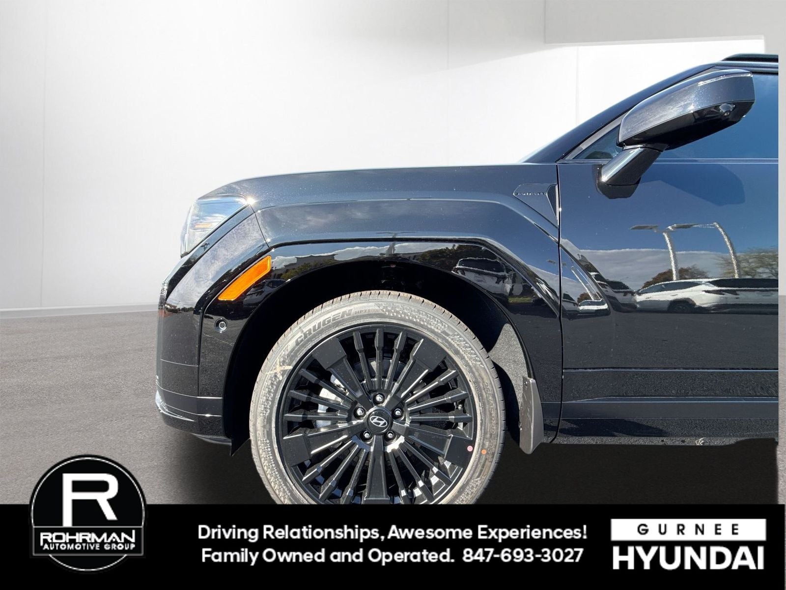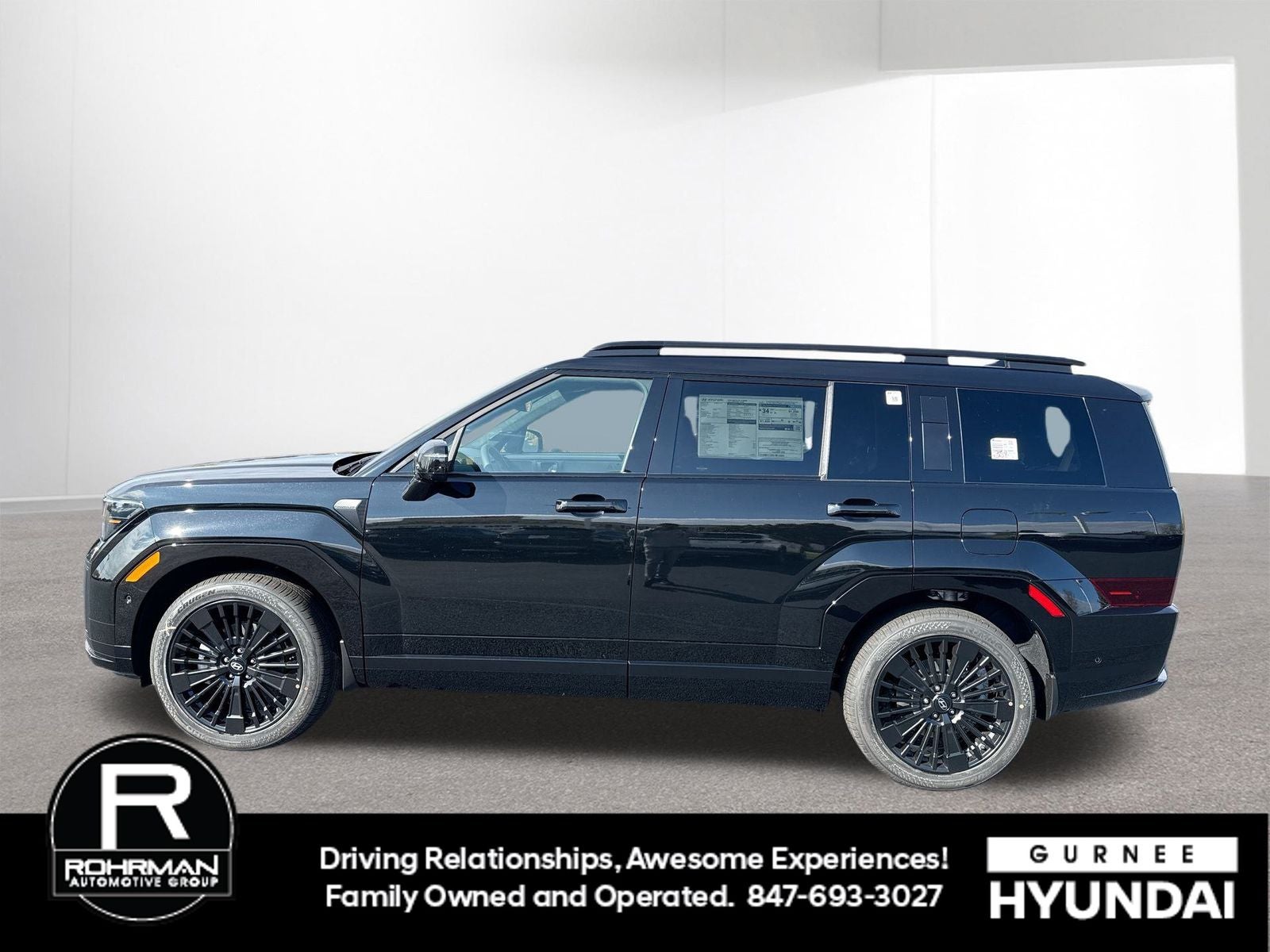**ALL WHEEL DRIVE**, **SUNROOF/MOONROOF**, **NAVIGATION**, **LEATHER SEATS**, **3RD ROW SEATS**, **PUSH BUTTON START**, **KEYLESS ENTRY**, **BACKUP CAMERA**, **Bluetooth®**, **HEATED STEERING WHEEL**, **RAIN SENSING WIPERS!**, **POWER LIFTGATE**, **REMOTE START**, **BLIND SPOT MONITOR**, **APPLE CARPLAY/ANDROID AUTO**, **ADAPTIVE CRUISE CONTROL**, PORTABLE AUDIO CONNECTION/MP3, **BOSE PREMIUM AUDIO**, Navigation System, Option Group 01. $2,665 off MSRP! With options like Option Group 01, Navigation System, 12 Speakers, 3rd row seats: bench, 4-Wheel Disc Brakes, ABS brakes, Air Conditioning, Alloy wheels, AM/FM radio: SiriusXM, Apple CarPlay & Android Auto, Auto High-beam Headlights, Auto-dimming Rear-View mirror, Automatic temperature control, Brake assist, Bumpers: body-color, Cargo Blocks, Cargo Cover/Screen, Cargo Net, Cargo Tray, Carpeted Floor Mats, Delay-off headlights, Driver door bin, Driver vanity mirror, Dual front impact airbags, Dual front side impact airbags, Electronic Stability Control, Emergency communication system, Exterior Parking Camera Rear, First Aid Kit, Four wheel independent suspension, Front anti-roll bar, Front Bucket Seats, Front Center Armrest, Front dual zone A/C, Front reading lights, Fully automatic headlights, Garage door transmitter: HomeLink, Heads-Up Display, Heated door mirrors, Heated front seats, Heated rear seats, Heated steering wheel, Illuminated entry, Knee airbag, Leather steering wheel, Low tire pressure warning, Memory seat, Mudguards, Occupant sensing airbag, Outside temperature display, Overhead airbag, Overhead console, Panic alarm, Passenger door bin, Passenger vanity mirror, Power door mirrors, Power driver seat, Power Liftgate, Power moonroof, Power passenger seat, Power steering, Power windows, Quilted Premium Nappa Leather Seat Trim, Radio: AM/FM/HD Bose Premium Audio System, Rain sensing wipers, Rear anti-roll bar, Rear side impact airbag, Rear window defroster, Rear window wiper, Remote keyless entry, Security system, Speed control, Speed-sensing steering, Split folding rear seat, Spoiler, Steering wheel mounted audio controls, Tachometer, Telescoping steering wheel, Tilt steering wheel, Traction control, Transverse Panel, Trip computer, Turn signal indicator mirrors, Variably intermittent wipers, Ventilated front seats, and Wheels: 20 x 8.5J Unique Dark Finish Alloy. Phantom Black 2026 Hyundai Santa Fe Hybrid Calligraphy AWD 6-Speed Automatic with Shiftronic I4