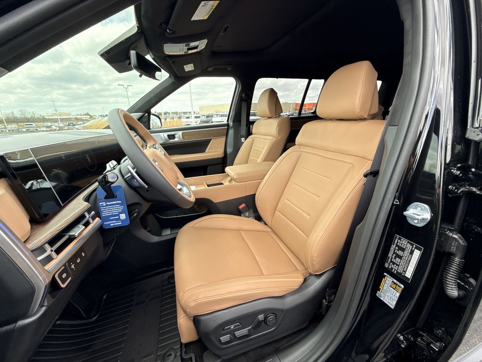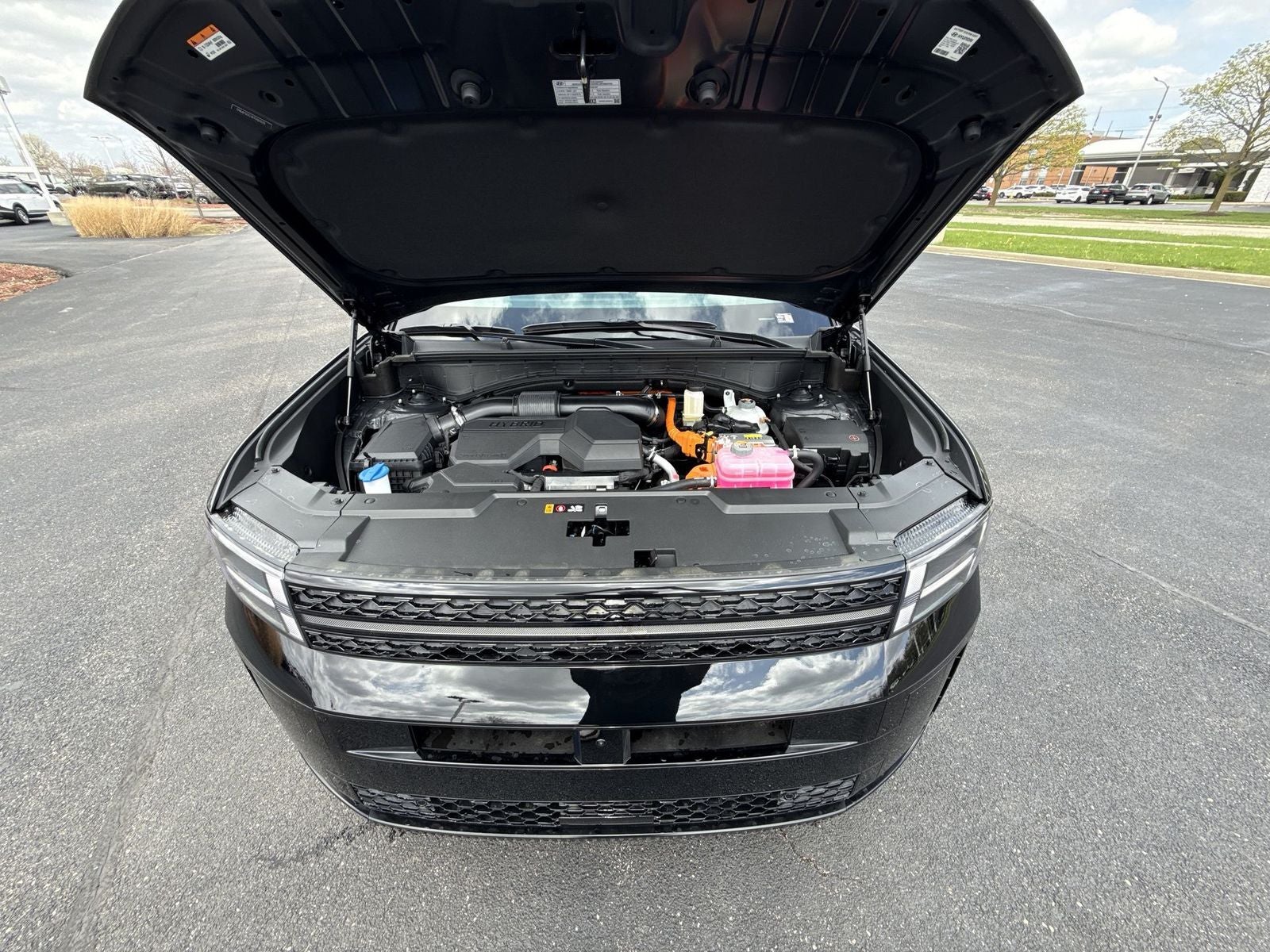 **ALL WHEEL DRIVE**, **SUNROOF/MOONROOF**, **NAVIGATION**, **LEATHER SEATS**, **3RD ROW SEATS**, **PUSH BUTTON START**, **KEYLESS ENTRY**, **BACKUP CAMERA**, **Bluetooth®**, **HEATED STEERING WHEEL**, **RAIN SENSING WIPERS!**, **POWER LIFTGATE**, **REMOTE START**, **BLIND SPOT MONITOR**, **APPLE CARPLAY/ANDROID AUTO**, **ADAPTIVE CRUISE CONTROL**, PORTABLE AUDIO CONNECTION/MP3, **BOSE PREMIUM AUDIO**. $3,160 off MSRP! Priced below KBB Fair Purchase Price! With options like Option Group 01, 12 Speakers, 3rd row seats: bench, 4-Wheel Disc Brakes, ABS brakes, Air Conditioning, All Season Fitted Liners, Alloy wheels, AM/FM radio: SiriusXM, Apple CarPlay & Android Auto, Auto High-beam Headlights, Auto-dimming Rear-View mirror, Automatic temperature control, Brake assist, Bumpers: body-color, Cargo Cover/Screen, Cargo Net, Cargo Tray, Carpeted Floor Mats, Delay-off headlights, Driver door bin, Driver vanity mirror, Dual front impact airbags, Dual front side impact airbags, Electronic Stability Control, Emergency communication system, Exterior Parking Camera Rear, First Aid Kit, Four wheel independent suspension, Front anti-roll bar, Front Bucket Seats, Front Center Armrest, Front dual zone A/C, Front reading lights, Fully automatic headlights, Garage door transmitter: HomeLink, Heads-Up Display, Heated and Ventilated Front Bucket Seats, Heated door mirrors, Heated front seats, Heated rear seats, Heated steering wheel, Illuminated entry, Knee airbag, Leather steering wheel, Low tire pressure warning, Memory seat, Navigation System, Occupant sensing airbag, Outside temperature display, Overhead airbag, Overhead console, Panic alarm, Passenger door bin, Passenger vanity mirror, Power door mirrors, Power driver seat, Power Liftgate, Power moonroof, Power passenger seat, Power steering, Power windows, Quilted Premium Nappa Leather Seat Trim, Radio: AM/FM/HD Bose Premium Audio System, Rain sensing wipers, Rear anti-roll bar, Rear side impact airbag, Rear window defroster, Rear window wiper, Remote keyless entry, Security system, Speed control, Speed-sensing steering, Split folding rear seat, Spoiler, Steering wheel mounted audio controls, Tachometer, Telescoping steering wheel, Tilt steering wheel, Traction control, Trip computer, Turn signal indicator mirrors, Variably intermittent wipers, Ventilated front seats, and Wheels: 20 x 8.5J Unique Dark Finish Alloy. Phantom Black 2026 Hyundai Santa Fe Hybrid Calligraphy AWD 6-Speed Automatic with Shiftronic I4