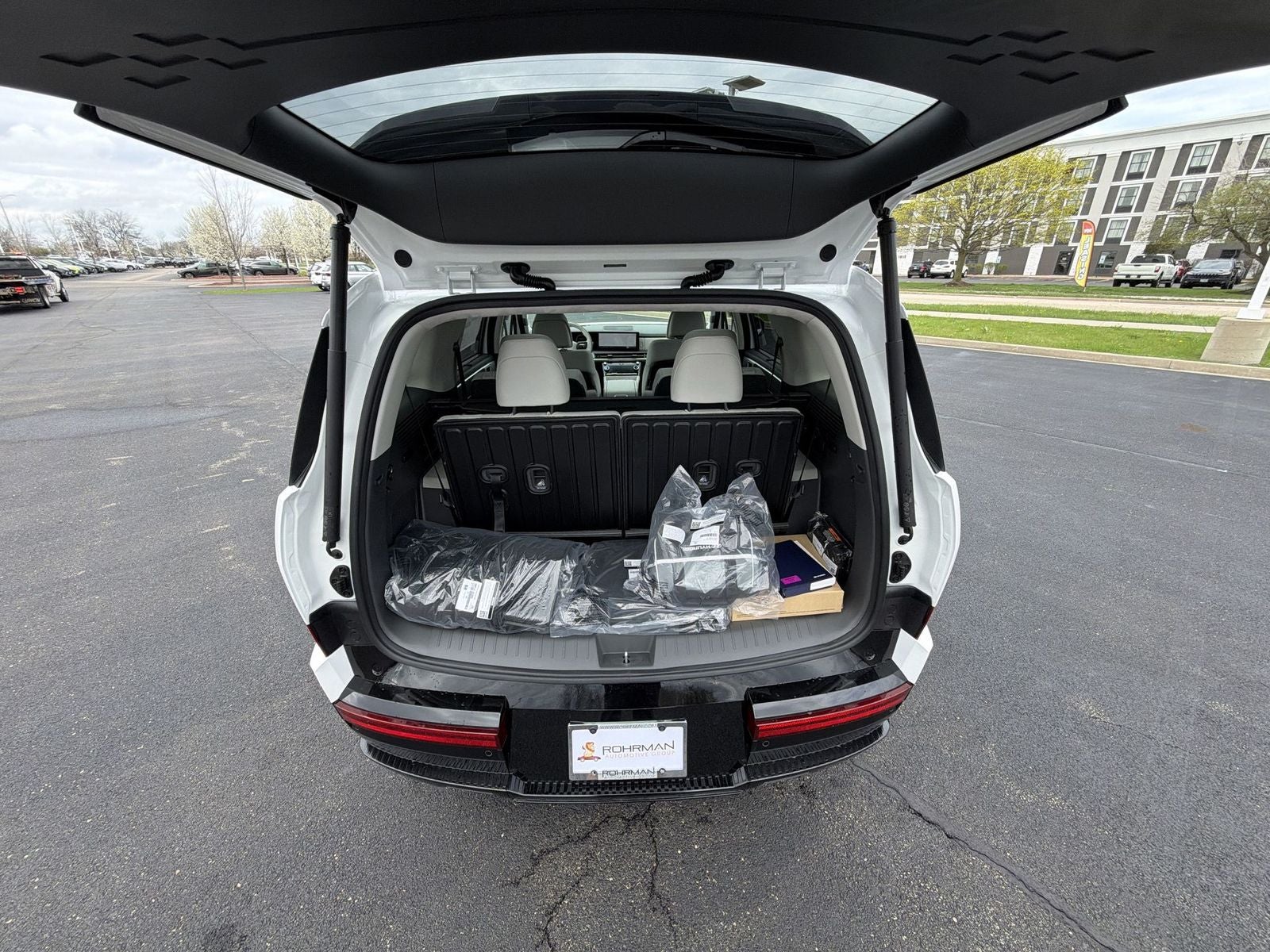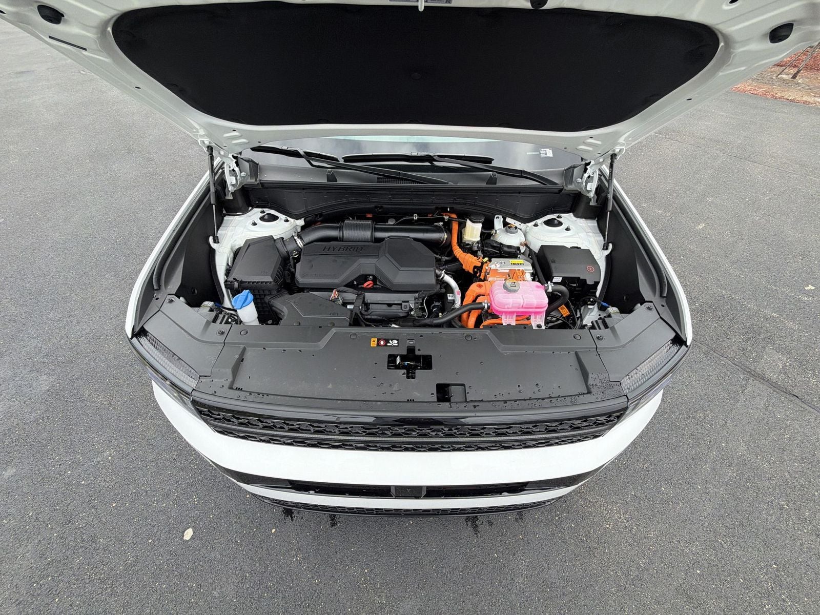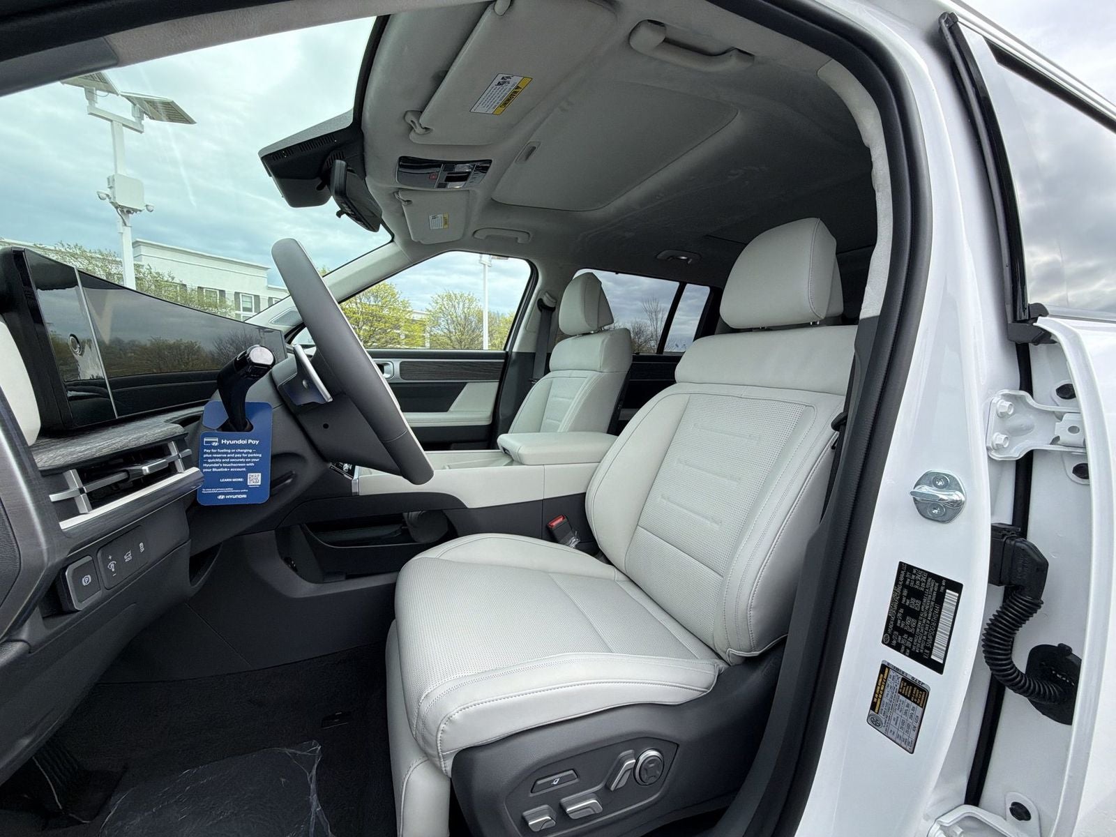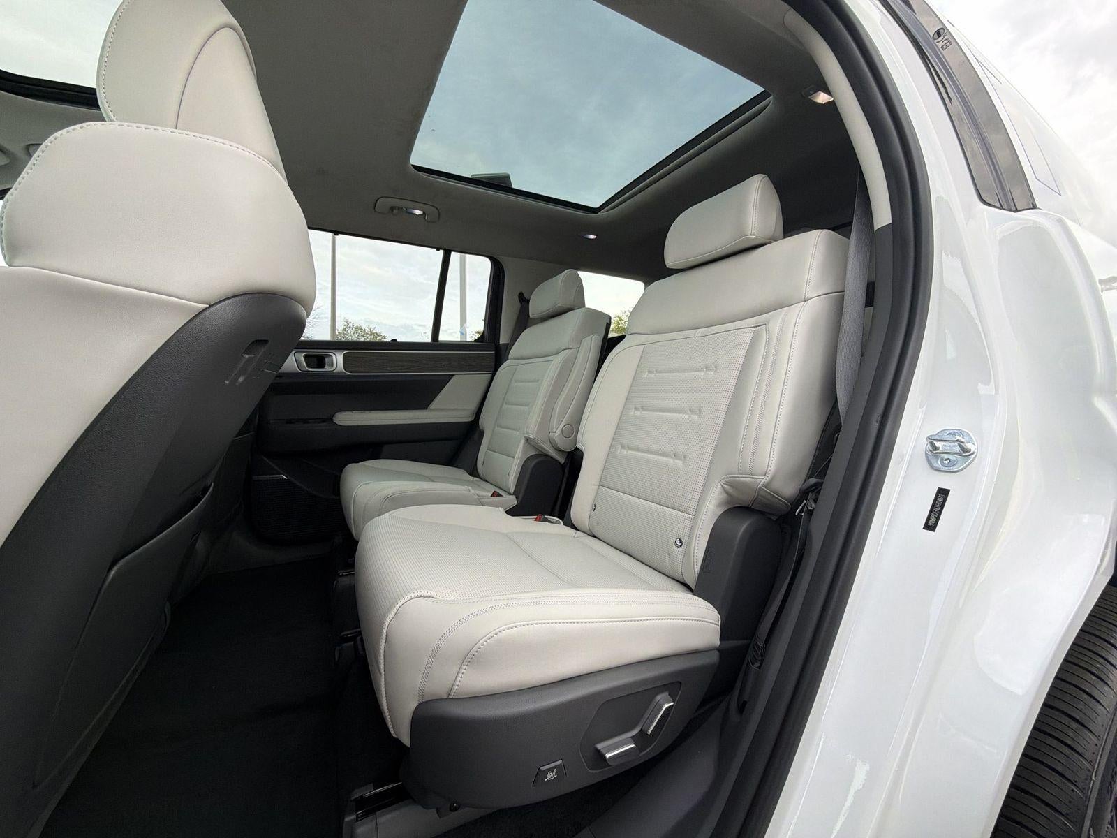 **ALL WHEEL DRIVE**, **SUNROOF/MOONROOF**, **NAVIGATION**, **LEATHER SEATS**, **3RD ROW SEATS**, **PUSH BUTTON START**, **KEYLESS ENTRY**, **BACKUP CAMERA**, **Bluetooth®**, **HEATED STEERING WHEEL**, **RAIN SENSING WIPERS!**, **POWER LIFTGATE**, **REMOTE START**, **BLIND SPOT MONITOR**, **APPLE CARPLAY/ANDROID AUTO**, **ADAPTIVE CRUISE CONTROL**, PORTABLE AUDIO CONNECTION/MP3, **BOSE PREMIUM AUDIO**, Navigation System, Option Group 01. $3,183 off MSRP! With options like Option Group 01, Navigation System, 12 Speakers, 3rd row seats: bench, 4-Wheel Disc Brakes, ABS brakes, Air Conditioning, Alloy wheels, AM/FM radio: SiriusXM, Apple CarPlay & Android Auto, Auto High-beam Headlights, Auto-dimming Rear-View mirror, Automatic temperature control, Brake assist, Bumpers: body-color, Cargo Cover/Screen, Cargo Net, Cargo Organizer, Cargo Tray, Carpeted Floor Mats, Delay-off headlights, Driver door bin, Driver vanity mirror, Dual front impact airbags, Dual front side impact airbags, Electronic Stability Control, Emergency communication system, Exterior Parking Camera Rear, First Aid Kit, Four wheel independent suspension, Front anti-roll bar, Front Bucket Seats, Front Center Armrest, Front dual zone A/C, Front reading lights, Fully automatic headlights, Garage door transmitter: HomeLink, Heads-Up Display, Heated and Ventilated Front Bucket Seats, Heated door mirrors, Heated front seats, Heated rear seats, Heated steering wheel, Illuminated entry, Knee airbag, Leather steering wheel, Low tire pressure warning, Memory seat, Mudguards, Occupant sensing airbag, Outside temperature display, Overhead airbag, Overhead console, Panic alarm, Passenger door bin, Passenger vanity mirror, Power door mirrors, Power driver seat, Power Liftgate, Power moonroof, Power passenger seat, Power steering, Power windows, Quilted Premium Nappa Leather Seat Trim, Radio: AM/FM/HD Bose Premium Audio System, Rain sensing wipers, Rear anti-roll bar, Rear side impact airbag, Rear window defroster, Rear window wiper, Remote keyless entry, Roadside Assistance Kit, Security system, Speed control, Speed-sensing steering, Split folding rear seat, Spoiler, Steering wheel mounted audio controls, Tachometer, Telescoping steering wheel, Tilt steering wheel, Traction control, Trip computer, Turn signal indicator mirrors, Variably intermittent wipers, Ventilated front seats, and Wheels: 20 x 8.5J Unique Dark Finish Alloy. Serenity White 2026 Hyundai Santa Fe Hybrid Calligraphy AWD 6-Speed Automatic with Shiftronic I4