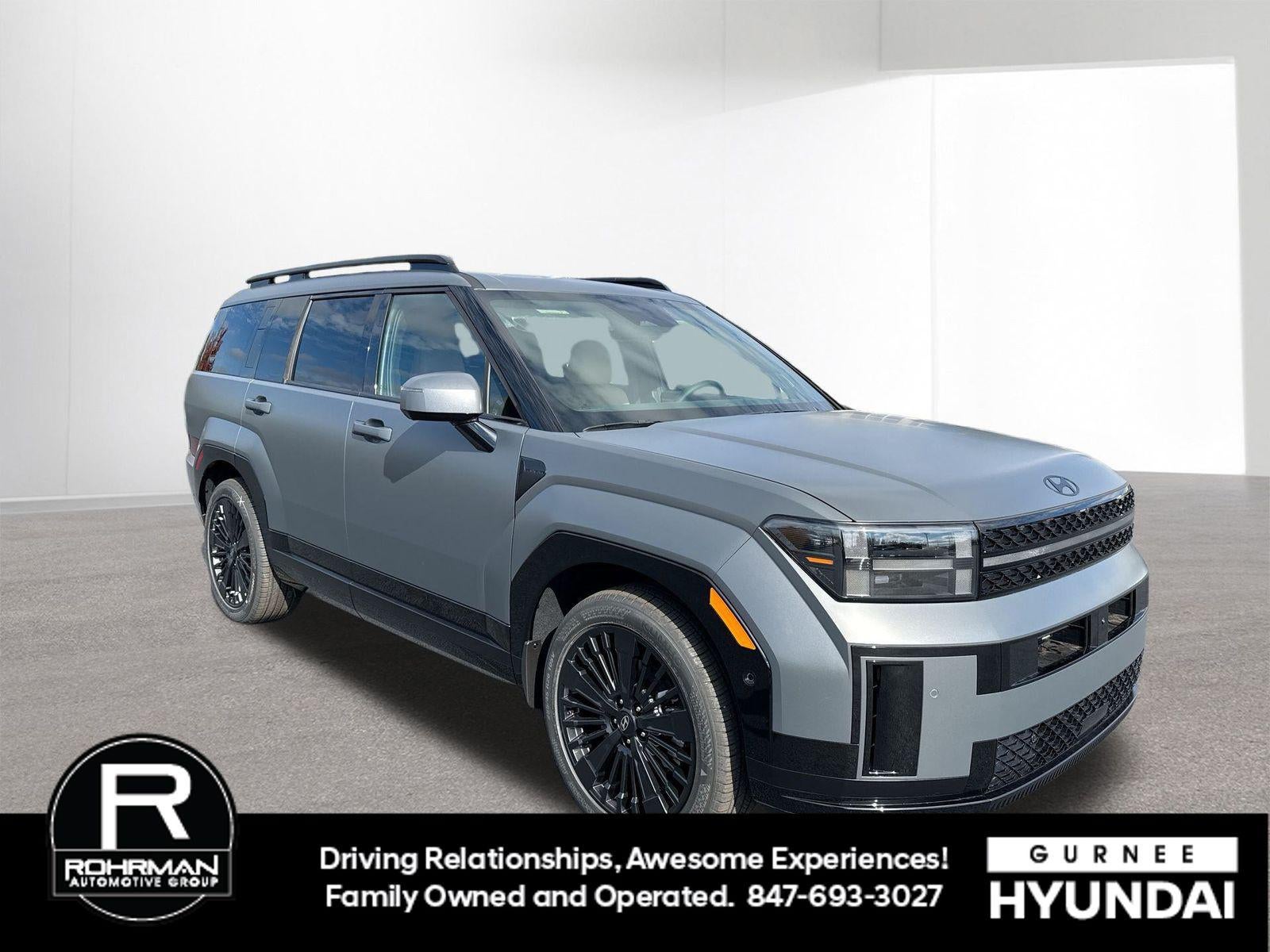 **ALL WHEEL DRIVE**, **SUNROOF/MOONROOF**, **NAVIGATION**, **LEATHER SEATS**, **3RD ROW SEATS**, **PUSH BUTTON START**, **KEYLESS ENTRY**, **BACKUP CAMERA**, **Bluetooth®**, **HEATED STEERING WHEEL**, **RAIN SENSING WIPERS!**, **POWER LIFTGATE**, **REMOTE START**, **BLIND SPOT MONITOR**, **APPLE CARPLAY/ANDROID AUTO**, **ADAPTIVE CRUISE CONTROL**, PORTABLE AUDIO CONNECTION/MP3, **BOSE PREMIUM AUDIO**, Cargo Blocks, Cargo Cover/Screen, Cargo Net, Cargo Tray, Carpeted Floor Mats, First Aid Kit, Mudguards, Navigation System, Option Group 01. $2,676 off MSRP! With options like Option Group 01, Cargo Blocks, Cargo Cover/Screen, Cargo Net, Cargo Tray, Carpeted Floor Mats, First Aid Kit, Mudguards, Navigation System, 12 Speakers, 3rd row seats: bench, 4-Wheel Disc Brakes, ABS brakes, Air Conditioning, Alloy wheels, AM/FM radio: SiriusXM, Apple CarPlay & Android Auto, Auto High-beam Headlights, Auto-dimming Rear-View mirror, Automatic temperature control, Brake assist, Bumpers: body-color, Delay-off headlights, Driver door bin, Driver vanity mirror, Dual front impact airbags, Dual front side impact airbags, Electronic Stability Control, Emergency communication system, Exterior Parking Camera Rear, Four wheel independent suspension, Front anti-roll bar, Front Bucket Seats, Front Center Armrest, Front dual zone A/C, Front reading lights, Fully automatic headlights, Garage door transmitter: HomeLink, Heads-Up Display, Heated door mirrors, Heated front seats, Heated rear seats, Heated steering wheel, Illuminated entry, Knee airbag, Leather steering wheel, Low tire pressure warning, Memory seat, Occupant sensing airbag, Outside temperature display, Overhead airbag, Overhead console, Panic alarm, Passenger door bin, Passenger vanity mirror, Power door mirrors, Power driver seat, Power Liftgate, Power moonroof, Power passenger seat, Power steering, Power windows, Quilted Premium Nappa Leather Seat Trim, Radio: AM/FM/HD Bose Premium Audio System, Rain sensing wipers, Rear anti-roll bar, Rear side impact airbag, Rear window defroster, Rear window wiper, Remote keyless entry, Security system, Speed control, Speed-sensing steering, Split folding rear seat, Spoiler, Steering wheel mounted audio controls, Tachometer, Telescoping steering wheel, Tilt steering wheel, Traction control, Trip computer, Turn signal indicator mirrors, Variably intermittent wipers, Ventilated front seats, and Wheels: 20 x 8.5J Unique Dark Finish Alloy. Ecotronic Gray Matte 2026 Hyundai Santa Fe Hybrid Calligraphy AWD 6-Speed Automatic with Shiftronic I4