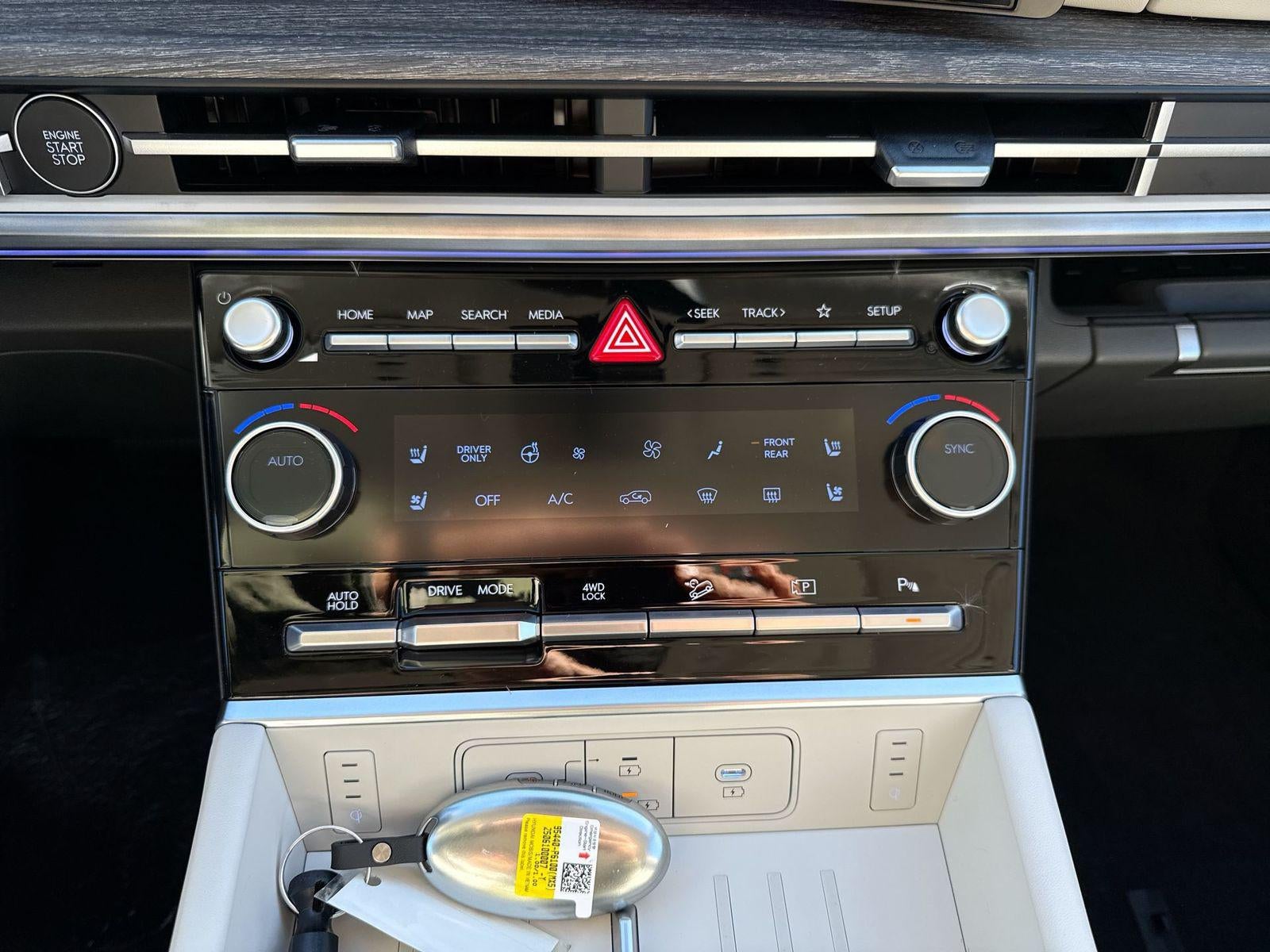 **ALL WHEEL DRIVE**, **SUNROOF/MOONROOF**, **NAVIGATION**, **LEATHER SEATS**, **3RD ROW SEATS**, **PUSH BUTTON START**, **KEYLESS ENTRY**, **BACKUP CAMERA**, **Bluetooth®**, **HEATED STEERING WHEEL**, **RAIN SENSING WIPERS!**, **POWER LIFTGATE**, **REMOTE START**, **BLIND SPOT MONITOR**, **APPLE CARPLAY/ANDROID AUTO**, **ADAPTIVE CRUISE CONTROL**, PORTABLE AUDIO CONNECTION/MP3, **BOSE PREMIUM AUDIO**, Navigation System, Option Group 01. $2,690 off MSRP! With options like Option Group 01, Navigation System, 12 Speakers, 3rd row seats: bench, 4-Wheel Disc Brakes, ABS brakes, Air Conditioning, Alloy wheels, AM/FM radio: SiriusXM, Apple CarPlay & Android Auto, Auto High-beam Headlights, Auto-dimming Rear-View mirror, Automatic temperature control, Brake assist, Bumpers: body-color, Cargo Blocks, Cargo Net, Cargo Tray, Carpeted Floor Mats, Delay-off headlights, Driver door bin, Driver vanity mirror, Dual front impact airbags, Dual front side impact airbags, Electronic Stability Control, Emergency communication system, Exterior Parking Camera Rear, First Aid Kit, Four wheel independent suspension, Front anti-roll bar, Front Bucket Seats, Front Center Armrest, Front dual zone A/C, Front reading lights, Fully automatic headlights, Garage door transmitter: HomeLink, Heads-Up Display, Heated door mirrors, Heated front seats, Heated rear seats, Heated steering wheel, Illuminated entry, Knee airbag, Leather steering wheel, Low tire pressure warning, Memory seat, Occupant sensing airbag, Outside temperature display, Overhead airbag, Overhead console, Panic alarm, Passenger door bin, Passenger vanity mirror, Power door mirrors, Power driver seat, Power Liftgate, Power moonroof, Power passenger seat, Power steering, Power windows, Quilted Premium Nappa Leather Seat Trim, Radio: AM/FM/HD Bose Premium Audio System, Rain sensing wipers, Rear anti-roll bar, Rear side impact airbag, Rear window defroster, Rear window wiper, Remote keyless entry, Roadside Assistance Kit, Roof Rack Crossbars, Security system, Speed control, Speed-sensing steering, Split folding rear seat, Spoiler, Steering wheel mounted audio controls, Tachometer, Telescoping steering wheel, Tilt steering wheel, Traction control, Trip computer, Turn signal indicator mirrors, Variably intermittent wipers, Ventilated front seats, and Wheels: 20 x 8.5J Unique Dark Finish Alloy. Ecotronic Gray 2026 Hyundai Santa Fe Hybrid Calligraphy AWD 6-Speed Automatic with Shiftronic I4