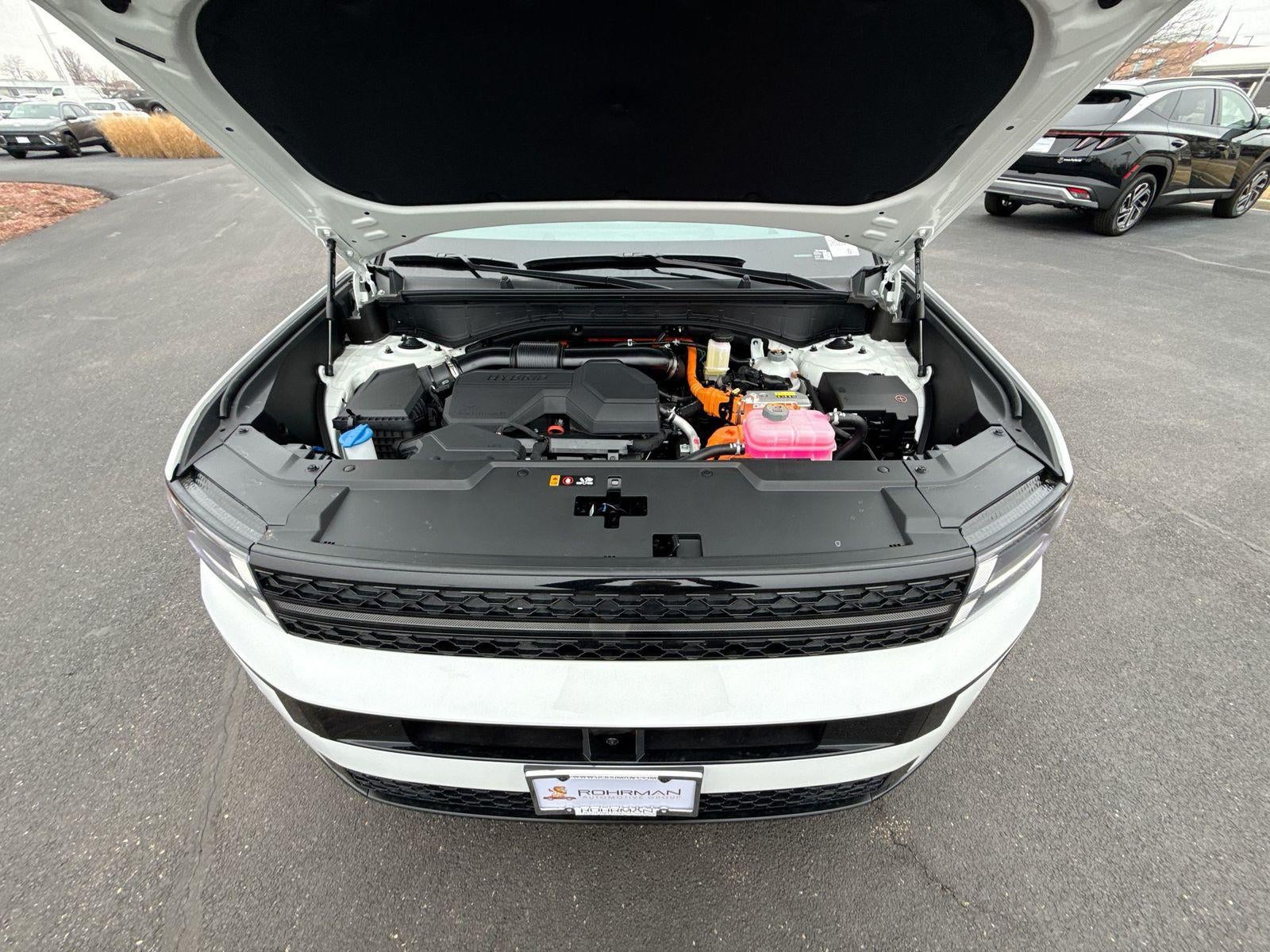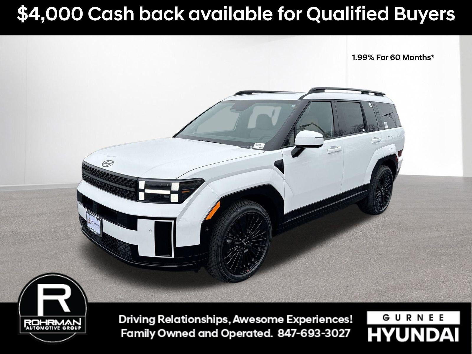 $5,170 off MSRP! Priced below KBB Fair Purchase Price! With options like Option Group 01, 12 Speakers, 3rd row seats: bench, 4-Wheel Disc Brakes, ABS brakes, Air Conditioning, Alloy wheels, AM/FM radio: SiriusXM, Apple CarPlay & Android Auto, Auto High-beam Headlights, Auto-dimming Rear-View mirror, Automatic temperature control, Brake assist, Bumpers: body-color, Cargo Cover/Screen, Cargo Net, Cargo Organizer, Cargo Tray, Carpeted Floor Mats, Delay-off headlights, Driver door bin, Driver vanity mirror, Dual front impact airbags, Dual front side impact airbags, Electronic Stability Control, Emergency communication system, Exterior Parking Camera Rear, First Aid Kit, Four wheel independent suspension, Front anti-roll bar, Front Bucket Seats, Front Center Armrest, Front dual zone A/C, Front reading lights, Fully automatic headlights, Garage door transmitter: HomeLink, Heads-Up Display, Heated and Ventilated Front Bucket Seats, Heated door mirrors, Heated front seats, Heated rear seats, Heated steering wheel, Illuminated entry, Knee airbag, Leather steering wheel, Low tire pressure warning, Memory seat, Navigation System, Occupant sensing airbag, Outside temperature display, Overhead airbag, Overhead console, Panic alarm, Passenger door bin, Passenger vanity mirror, Power door mirrors, Power driver seat, Power Liftgate, Power moonroof, Power passenger seat, Power steering, Power windows, Quilted Premium Nappa Leather Seat Trim, Radio: AM/FM/HD Bose Premium Audio System, Rain sensing wipers, Rear anti-roll bar, Rear side impact airbag, Rear window defroster, Rear window wiper, Remote keyless entry, Roadside Assistance Kit, Security system, Speed control, Speed-sensing steering, Split folding rear seat, Spoiler, Steering wheel mounted audio controls, Tachometer, Telescoping steering wheel, Tilt steering wheel, Traction control, Trip computer, Turn signal indicator mirrors, Variably intermittent wipers, Ventilated front seats, and Wheels: 20 x 8.5J Unique Dark Finish Alloy. Serenity White 2026 Hyundai Santa Fe Hybrid Calligraphy AWD 6-Speed Automatic with Shiftronic I4