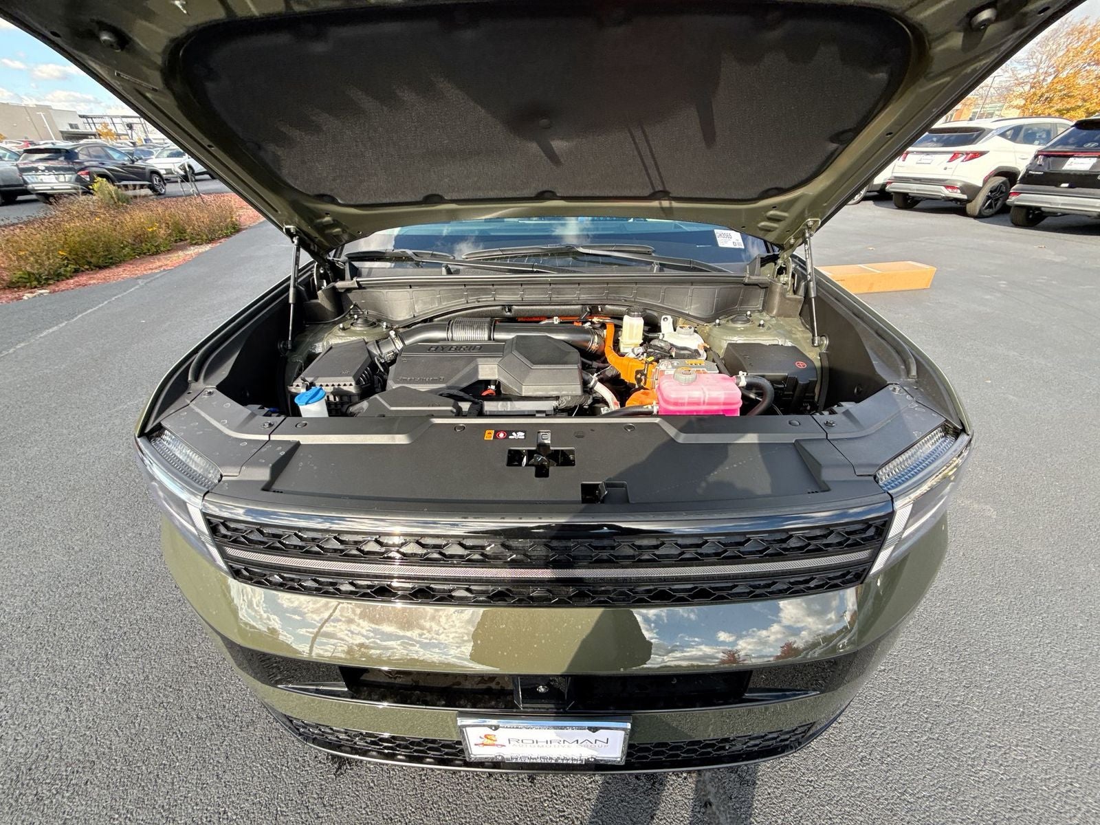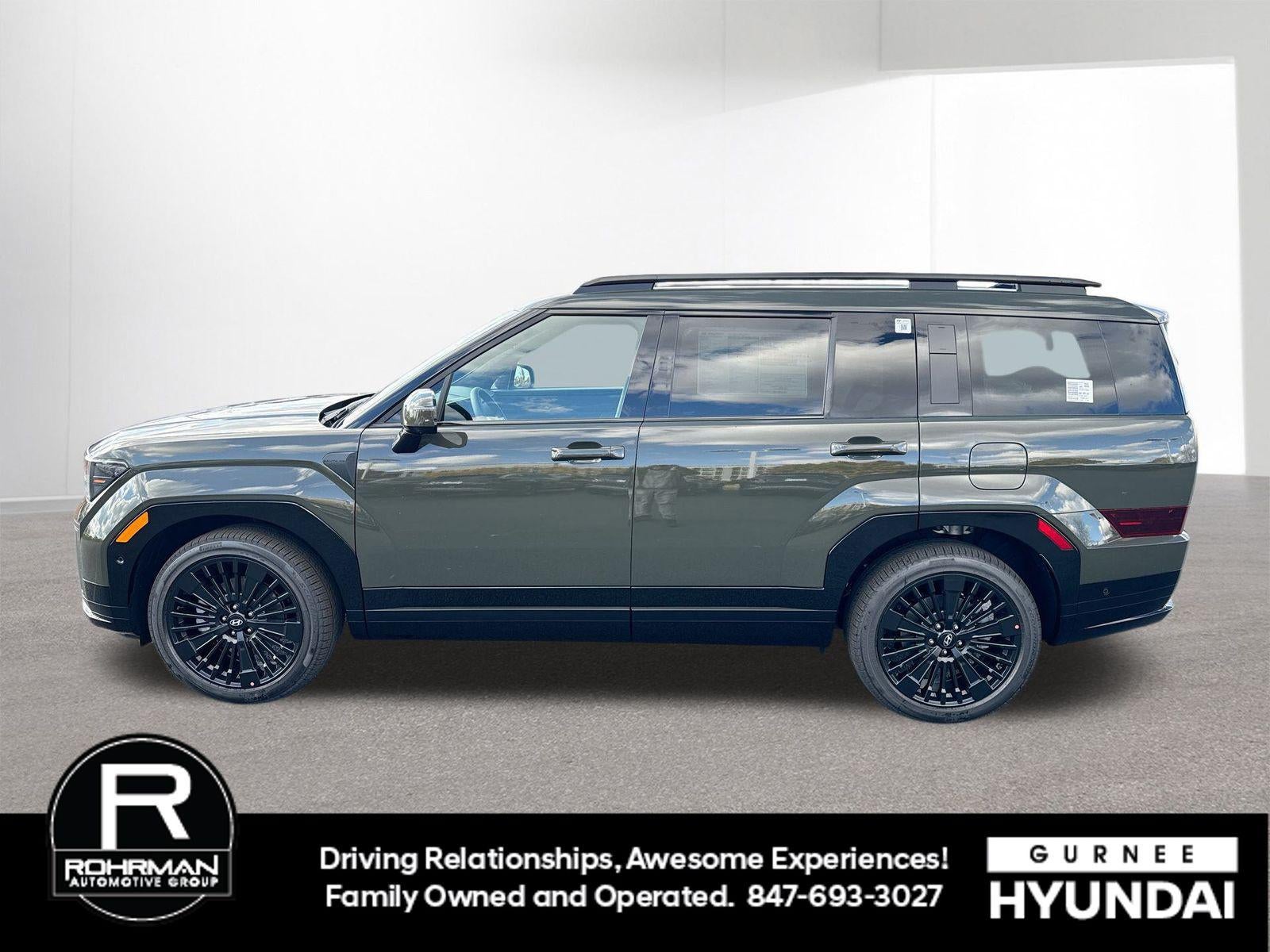 **ALL WHEEL DRIVE**, **SUNROOF/MOONROOF**, **NAVIGATION**, **LEATHER SEATS**, **3RD ROW SEATS**, **PUSH BUTTON START**, **KEYLESS ENTRY**, **BACKUP CAMERA**, **Bluetooth®**, **HEATED STEERING WHEEL**, **RAIN SENSING WIPERS!**, **POWER LIFTGATE**, **REMOTE START**, **BLIND SPOT MONITOR**, **APPLE CARPLAY/ANDROID AUTO**, **ADAPTIVE CRUISE CONTROL**, PORTABLE AUDIO CONNECTION/MP3, **BOSE PREMIUM AUDIO**, Navigation System, Option Group 01. $2,690 off MSRP! With options like Option Group 01, Navigation System, 12 Speakers, 3rd row seats: bench, 4-Wheel Disc Brakes, ABS brakes, Air Conditioning, Alloy wheels, AM/FM radio: SiriusXM, Apple CarPlay & Android Auto, Auto High-beam Headlights, Auto-dimming Rear-View mirror, Automatic temperature control, Brake assist, Bumpers: body-color, Cargo Blocks, Cargo Net, Cargo Tray, Carpeted Floor Mats, Delay-off headlights, Driver door bin, Driver vanity mirror, Dual front impact airbags, Dual front side impact airbags, Electronic Stability Control, Emergency communication system, Exterior Parking Camera Rear, First Aid Kit, Four wheel independent suspension, Front anti-roll bar, Front Bucket Seats, Front Center Armrest, Front dual zone A/C, Front reading lights, Fully automatic headlights, Garage door transmitter: HomeLink, Heads-Up Display, Heated door mirrors, Heated front seats, Heated rear seats, Heated steering wheel, Illuminated entry, Knee airbag, Leather steering wheel, Low tire pressure warning, Memory seat, Occupant sensing airbag, Outside temperature display, Overhead airbag, Overhead console, Panic alarm, Passenger door bin, Passenger vanity mirror, Power door mirrors, Power driver seat, Power Liftgate, Power moonroof, Power passenger seat, Power steering, Power windows, Quilted Premium Nappa Leather Seat Trim, Radio: AM/FM/HD Bose Premium Audio System, Rain sensing wipers, Rear anti-roll bar, Rear side impact airbag, Rear window defroster, Rear window wiper, Remote keyless entry, Roadside Assistance Kit, Roof Rack Crossbars, Security system, Speed control, Speed-sensing steering, Split folding rear seat, Spoiler, Steering wheel mounted audio controls, Tachometer, Telescoping steering wheel, Tilt steering wheel, Traction control, Trip computer, Turn signal indicator mirrors, Variably intermittent wipers, Ventilated front seats, and Wheels: 20 x 8.5J Unique Dark Finish Alloy. Rockwood Green 2026 Hyundai Santa Fe Hybrid Calligraphy AWD 6-Speed Automatic with Shiftronic I4