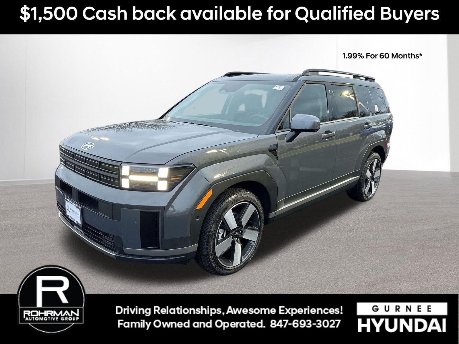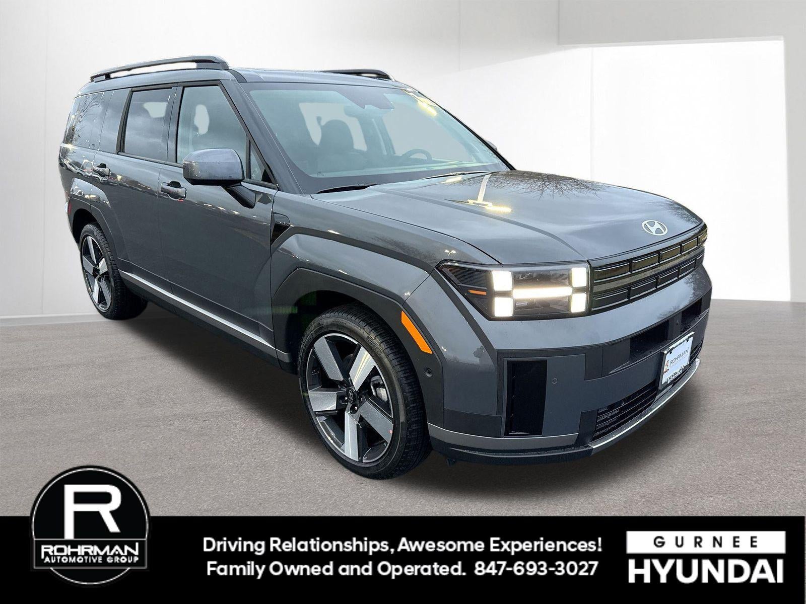 **ALL WHEEL DRIVE**, **SUNROOF/MOONROOF**, **NAVIGATION**, **LEATHER SEATS**, **3RD ROW SEATS**, **PUSH BUTTON START**, **KEYLESS ENTRY**, **BACKUP CAMERA**, **Bluetooth®**, **HEATED STEERING WHEEL**, **RAIN SENSING WIPERS!**, **POWER LIFTGATE**, **BLIND SPOT MONITOR**, **APPLE CARPLAY/ANDROID AUTO**, **ADAPTIVE CRUISE CONTROL**, PORTABLE AUDIO CONNECTION/MP3, **BOSE PREMIUM AUDIO**, Navigation System, Option Group 01. $2,640 off MSRP! With options like Option Group 01, Navigation System, 12 Speakers, 3rd row seats: bench, 4-Wheel Disc Brakes, ABS brakes, Air Conditioning, Alloy wheels, AM/FM radio: SiriusXM, Apple CarPlay & Android Auto, Auto High-beam Headlights, Auto-dimming Rear-View mirror, Automatic temperature control, Brake assist, Bumpers: body-color, Cargo Net, Cargo Tray, Carpeted Floor Mats, Delay-off headlights, Driver door bin, Driver vanity mirror, Dual front impact airbags, Dual front side impact airbags, Electronic Stability Control, Emergency communication system, Exterior Parking Camera Rear, First Aid Kit, Four wheel independent suspension, Front anti-roll bar, Front Bucket Seats, Front Center Armrest, Front dual zone A/C, Front reading lights, Fully automatic headlights, Garage door transmitter: HomeLink, Heated door mirrors, Heated front seats, Heated rear seats, Heated steering wheel, Illuminated entry, Knee airbag, Leather Seat Trim, Leather steering wheel, Low tire pressure warning, Memory seat, Occupant sensing airbag, Outside temperature display, Overhead airbag, Overhead console, Panic alarm, Passenger door bin, Passenger vanity mirror, Power door mirrors, Power driver seat, Power Liftgate, Power moonroof, Power passenger seat, Power steering, Power windows, Radio: AM/FM/HD Bose Premium Audio System, Rain sensing wipers, Rear anti-roll bar, Rear side impact airbag, Rear window defroster, Rear window wiper, Remote keyless entry, Roof Rack Crossbars, Security system, Severe Weather Kit, Speed control, Speed-sensing steering, Split folding rear seat, Spoiler, Steering wheel mounted audio controls, Tachometer, Telescoping steering wheel, Tilt steering wheel, Traction control, Trip computer, Turn signal indicator mirrors, Variably intermittent wipers, Ventilated front seats, and Wheels: 20 x 8.5J Alloy. Ecotronic Gray 2026 Hyundai Santa Fe Hybrid Limited AWD 6-Speed Automatic with Shiftronic I4