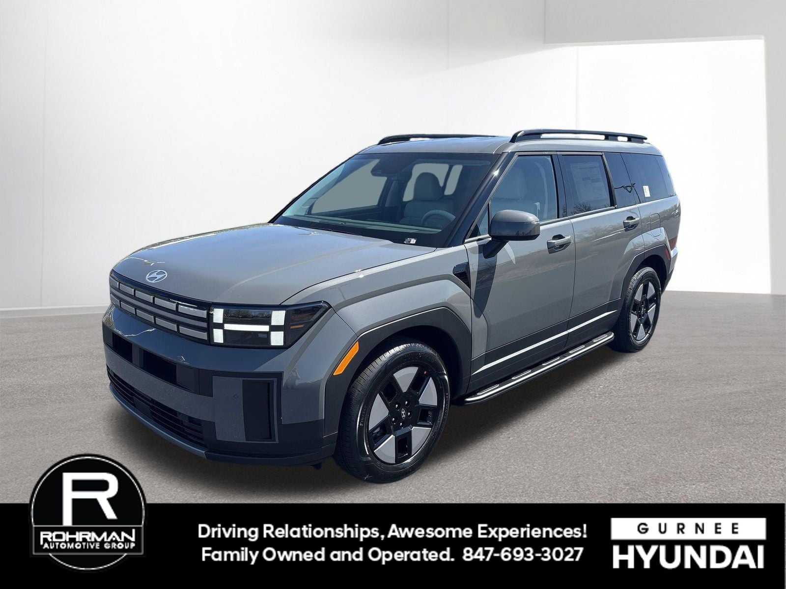 $3,003 off MSRP! With options like Option Group 01, 18 x 7.5J Alloy Wheels, 3rd row seats: bench, 4-Wheel Disc Brakes, 6 Speakers, ABS brakes, Air Conditioning, Alloy wheels, AM/FM radio: SiriusXM, Apple CarPlay & Android Auto, Auto High-beam Headlights, Automatic temperature control, Brake assist, Bumpers: body-color, Cargo Net, Carpeted Floor Mats, Delay-off headlights, Driver door bin, Driver vanity mirror, Dual front impact airbags, Dual front side impact airbags, Electronic Stability Control, Emergency communication system, Exterior Parking Camera Rear, Four wheel independent suspension, Front anti-roll bar, Front Bucket Seats, Front Center Armrest, Front dual zone A/C, Front reading lights, Fully automatic headlights, H-Tex Leatherette Seat Trim, Heated door mirrors, Heated Front Bucket Seats, Heated front seats, Illuminated entry, Knee airbag, Leather steering wheel, Low tire pressure warning, Occupant sensing airbag, Outside temperature display, Overhead airbag, Overhead console, Panic alarm, Passenger door bin, Passenger vanity mirror, Power door mirrors, Power driver seat, Power Liftgate, Power steering, Power windows, Radio: AM/FM/HD Display Audio, Rear anti-roll bar, Rear seat center armrest, Rear side impact airbag, Rear window defroster, Rear window wiper, Remote keyless entry, Security system, Side Steps, Speed control, Speed-sensing steering, Split folding rear seat, Spoiler, Steering wheel mounted audio controls, Tachometer, Telescoping steering wheel, Tilt steering wheel, Traction control, Trip computer, Turn signal indicator mirrors, and Variably intermittent wipers. Hampton Gray 2026 Hyundai Santa Fe Hybrid SEL AWD 6-Speed Automatic with Shiftronic I4
