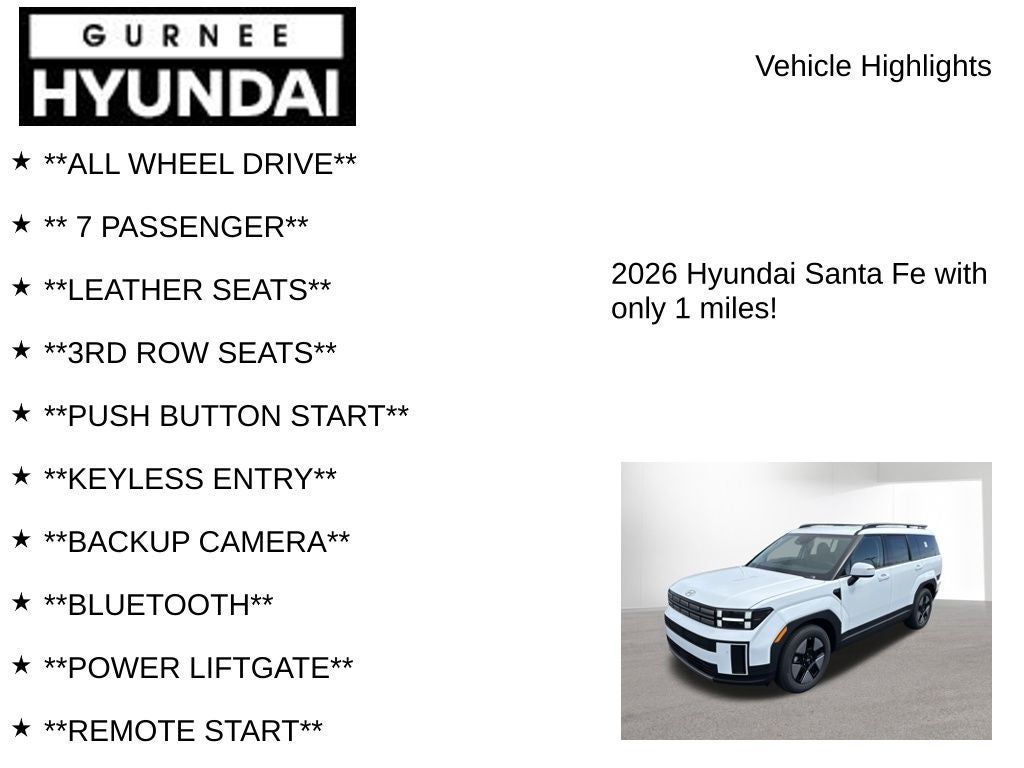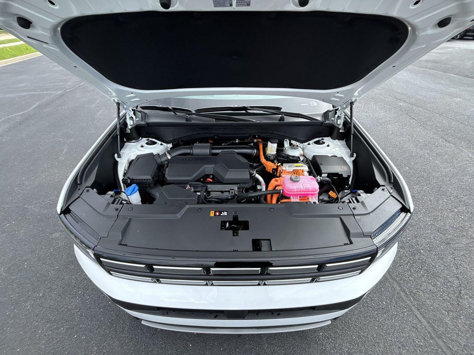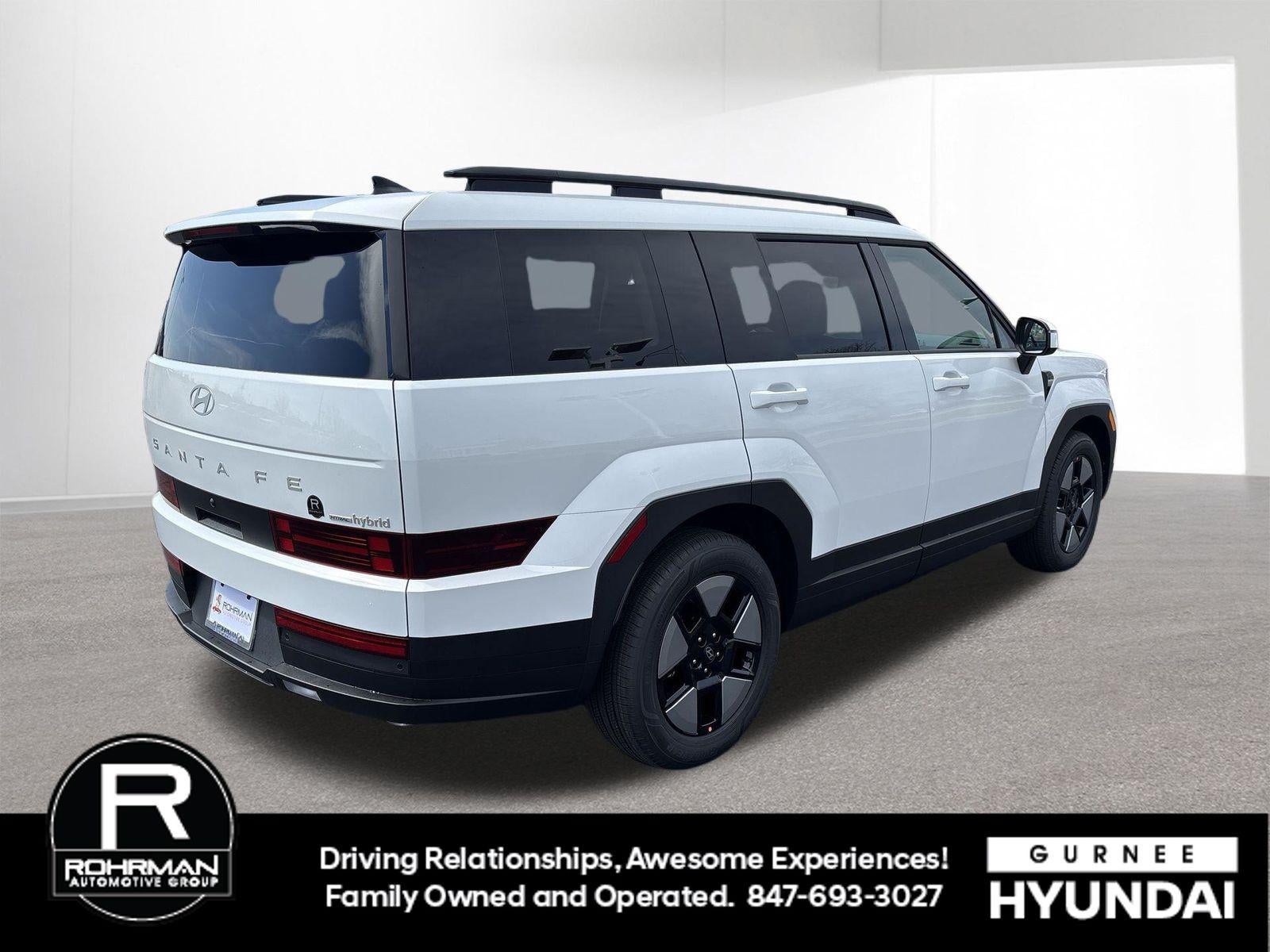 $3,023 off MSRP! With options like Option Group 01, 18 x 7.5J Alloy Wheels, 3rd row seats: bench, 4-Wheel Disc Brakes, 6 Speakers, ABS brakes, Air Conditioning, All Season Fitted Liners, Alloy wheels, AM/FM radio: SiriusXM, Apple CarPlay & Android Auto, Auto High-beam Headlights, Automatic temperature control, Brake assist, Bumpers: body-color, Cargo Cover/Screen, Cargo Net, Cargo Tray, Carpeted Floor Mats, Delay-off headlights, Driver door bin, Driver vanity mirror, Dual front impact airbags, Dual front side impact airbags, Electronic Stability Control, Emergency communication system, Exterior Parking Camera Rear, First Aid Kit, Four wheel independent suspension, Front anti-roll bar, Front Bucket Seats, Front Center Armrest, Front dual zone A/C, Front reading lights, Fully automatic headlights, H-Tex Leatherette Seat Trim, Heated door mirrors, Heated Front Bucket Seats, Heated front seats, Illuminated entry, Knee airbag, Leather steering wheel, Low tire pressure warning, Occupant sensing airbag, Outside temperature display, Overhead airbag, Overhead console, Panic alarm, Passenger door bin, Passenger vanity mirror, Power door mirrors, Power driver seat, Power Liftgate, Power steering, Power windows, Radio: AM/FM/HD Display Audio, Rear anti-roll bar, Rear seat center armrest, Rear side impact airbag, Rear window defroster, Rear window wiper, Remote keyless entry, Security system, Speed control, Speed-sensing steering, Split folding rear seat, Spoiler, Steering wheel mounted audio controls, Tachometer, Telescoping steering wheel, Tilt steering wheel, Traction control, Trip computer, Turn signal indicator mirrors, and Variably intermittent wipers. Serenity White 2026 Hyundai Santa Fe Hybrid SEL AWD 6-Speed Automatic with Shiftronic I4