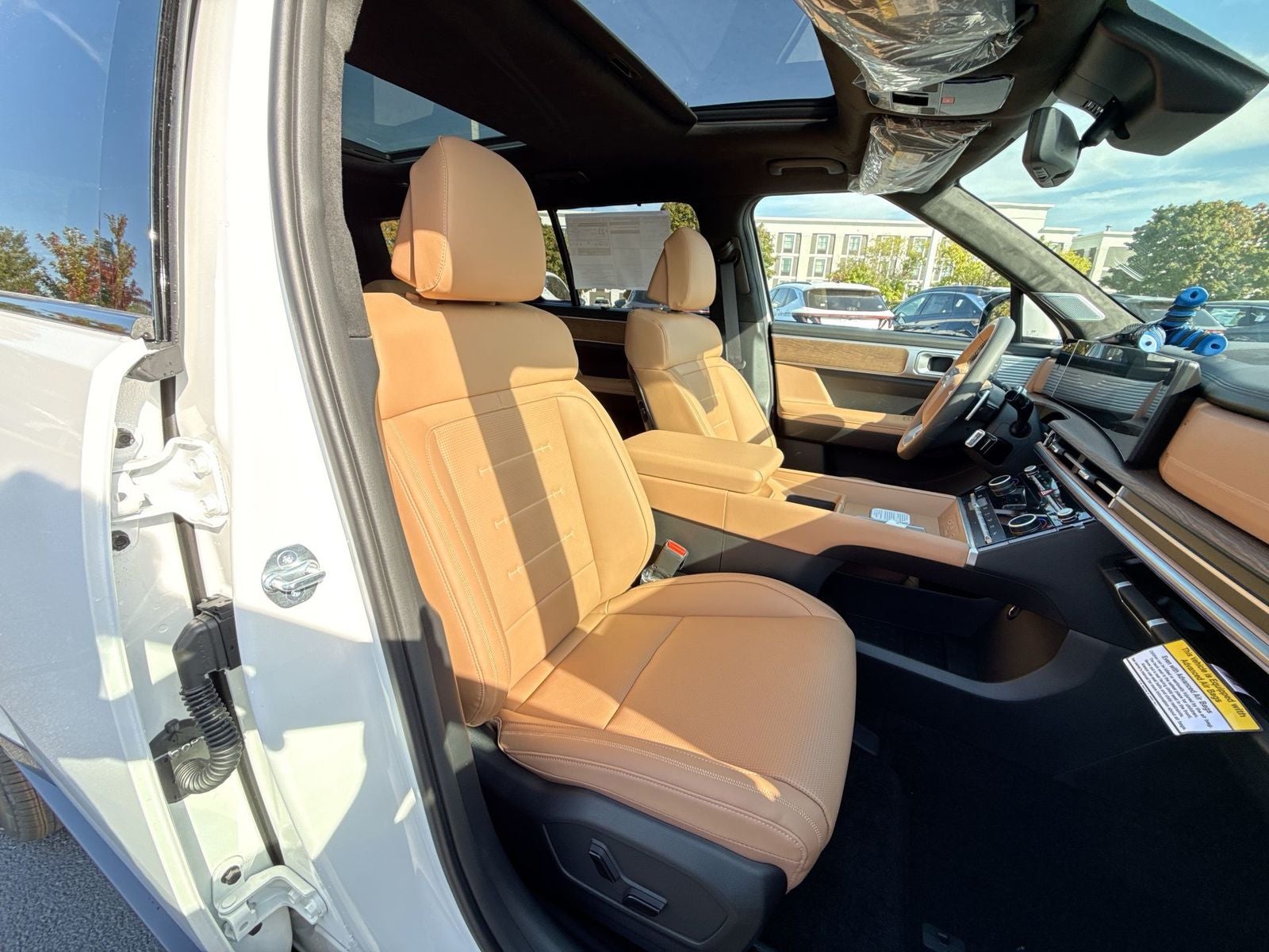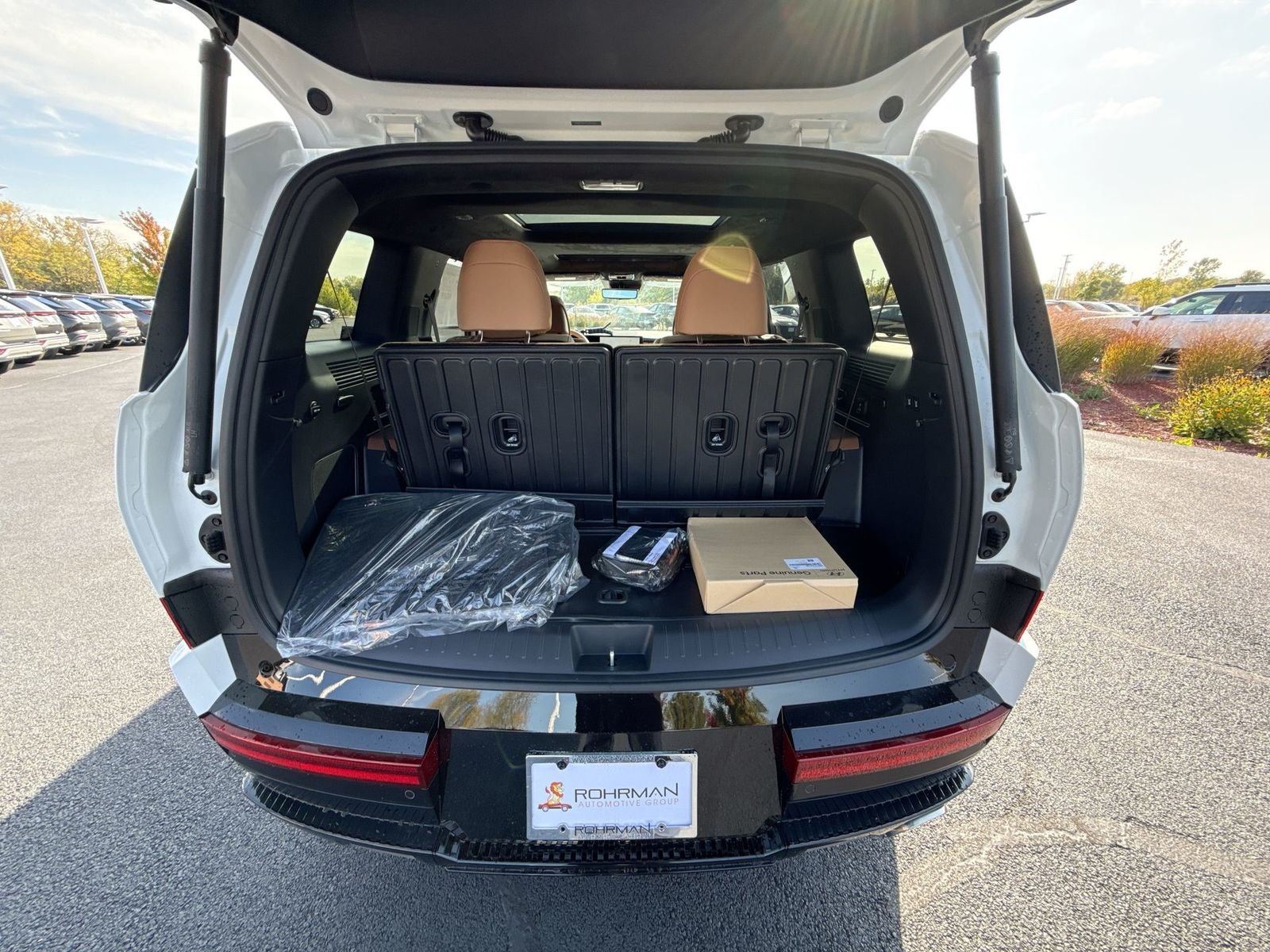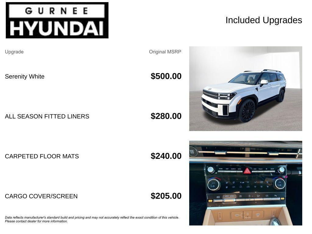 **ALL WHEEL DRIVE**, **SUNROOF/MOONROOF**, **NAVIGATION**, **LEATHER SEATS**, **3RD ROW SEATS**, **PUSH BUTTON START**, **KEYLESS ENTRY**, **BACKUP CAMERA**, **Bluetooth®**, **HEATED STEERING WHEEL**, **RAIN SENSING WIPERS!**, **POWER LIFTGATE**, **REMOTE START**, **BLIND SPOT MONITOR**, **APPLE CARPLAY/ANDROID AUTO**, **ADAPTIVE CRUISE CONTROL**, PORTABLE AUDIO CONNECTION/MP3, **BOSE PREMIUM AUDIO**, Navigation System, Option Group 01. $3,334 off MSRP! With options like Option Group 01, Navigation System, 12 Speakers, 3rd row seats: bench, 4-Wheel Disc Brakes, ABS brakes, Air Conditioning, All Season Fitted Liners, Alloy wheels, AM/FM radio: SiriusXM, Apple CarPlay & Android Auto, Auto High-beam Headlights, Auto-dimming Rear-View mirror, Automatic temperature control, Brake assist, Bumpers: body-color, Cargo Cover/Screen, Cargo Net, Cargo Tray, Carpeted Floor Mats, Delay-off headlights, Driver door bin, Driver vanity mirror, Dual front impact airbags, Dual front side impact airbags, Electronic Stability Control, Emergency communication system, Exterior Parking Camera Rear, First Aid Kit, Four wheel independent suspension, Front anti-roll bar, Front Bucket Seats, Front Center Armrest, Front dual zone A/C, Front reading lights, Fully automatic headlights, Garage door transmitter: HomeLink, Heads-Up Display, Heated door mirrors, Heated front seats, Heated rear seats, Heated steering wheel, Illuminated entry, Knee airbag, Leather steering wheel, Low tire pressure warning, Memory seat, Mudguards, Occupant sensing airbag, Outside temperature display, Overhead airbag, Overhead console, Panic alarm, Passenger door bin, Passenger vanity mirror, Power door mirrors, Power driver seat, Power Liftgate, Power moonroof, Power passenger seat, Power steering, Power windows, Quilted Premium Nappa Leather Seat Trim, Radio: AM/FM/HD Bose Premium Audio System, Rain sensing wipers, Rear anti-roll bar, Rear side impact airbag, Rear window defroster, Rear window wiper, Remote keyless entry, Security system, Speed control, Speed-sensing steering, Split folding rear seat, Spoiler, Steering wheel mounted audio controls, Tachometer, Telescoping steering wheel, Tilt steering wheel, Traction control, Trip computer, Turn signal indicator mirrors, Variably intermittent wipers, Ventilated front seats, and Wheels: 21 x 8.5J Unique Dark Finish Alloy. Serenity White 2026 Hyundai Santa Fe Calligraphy AWD 8-Speed Automatic with SHIFTRONIC 2.5L I4