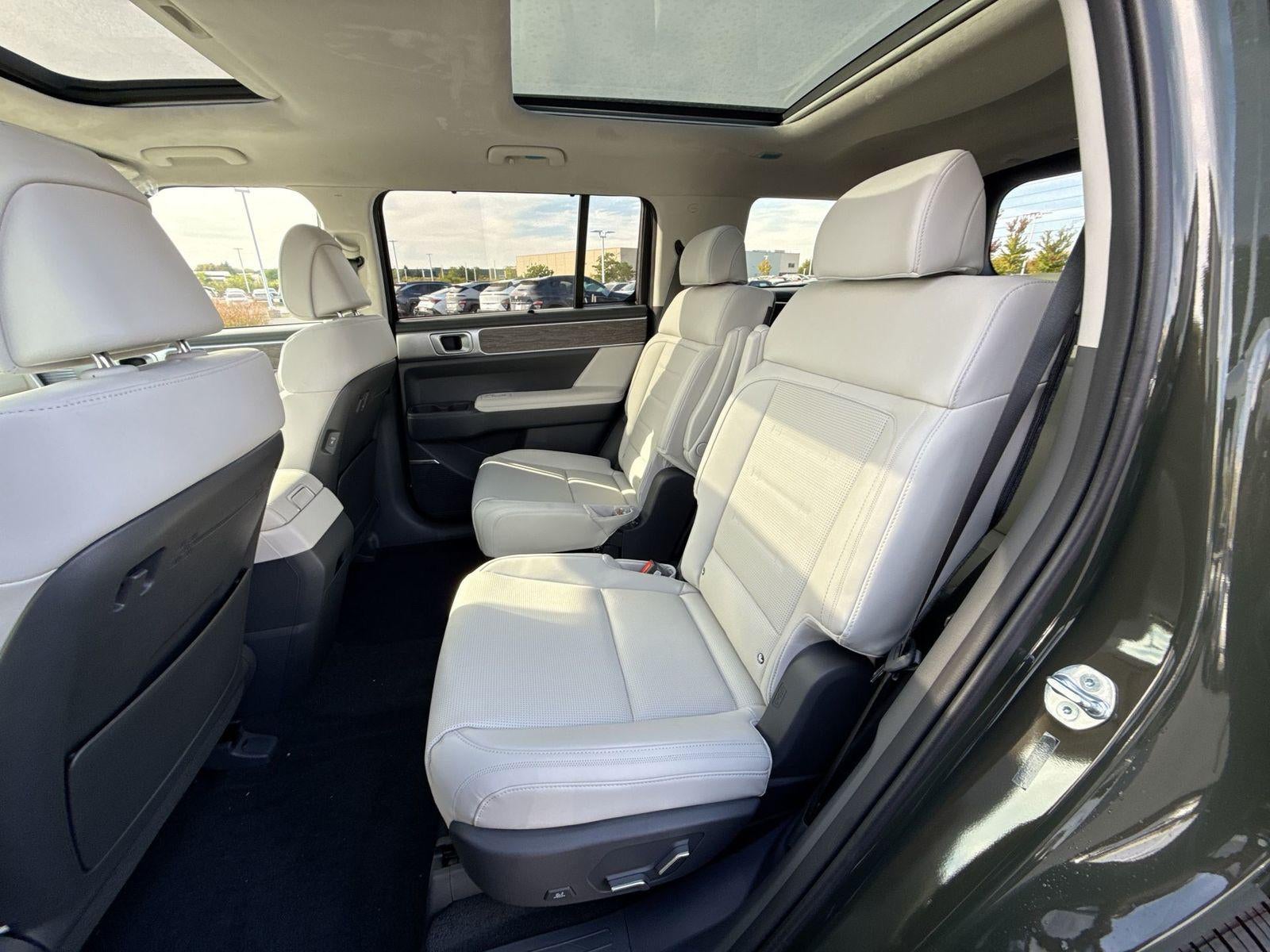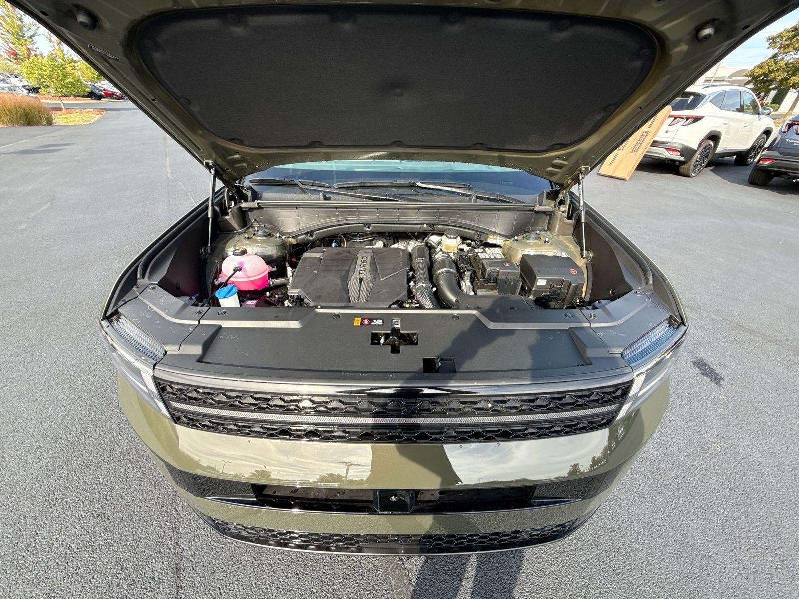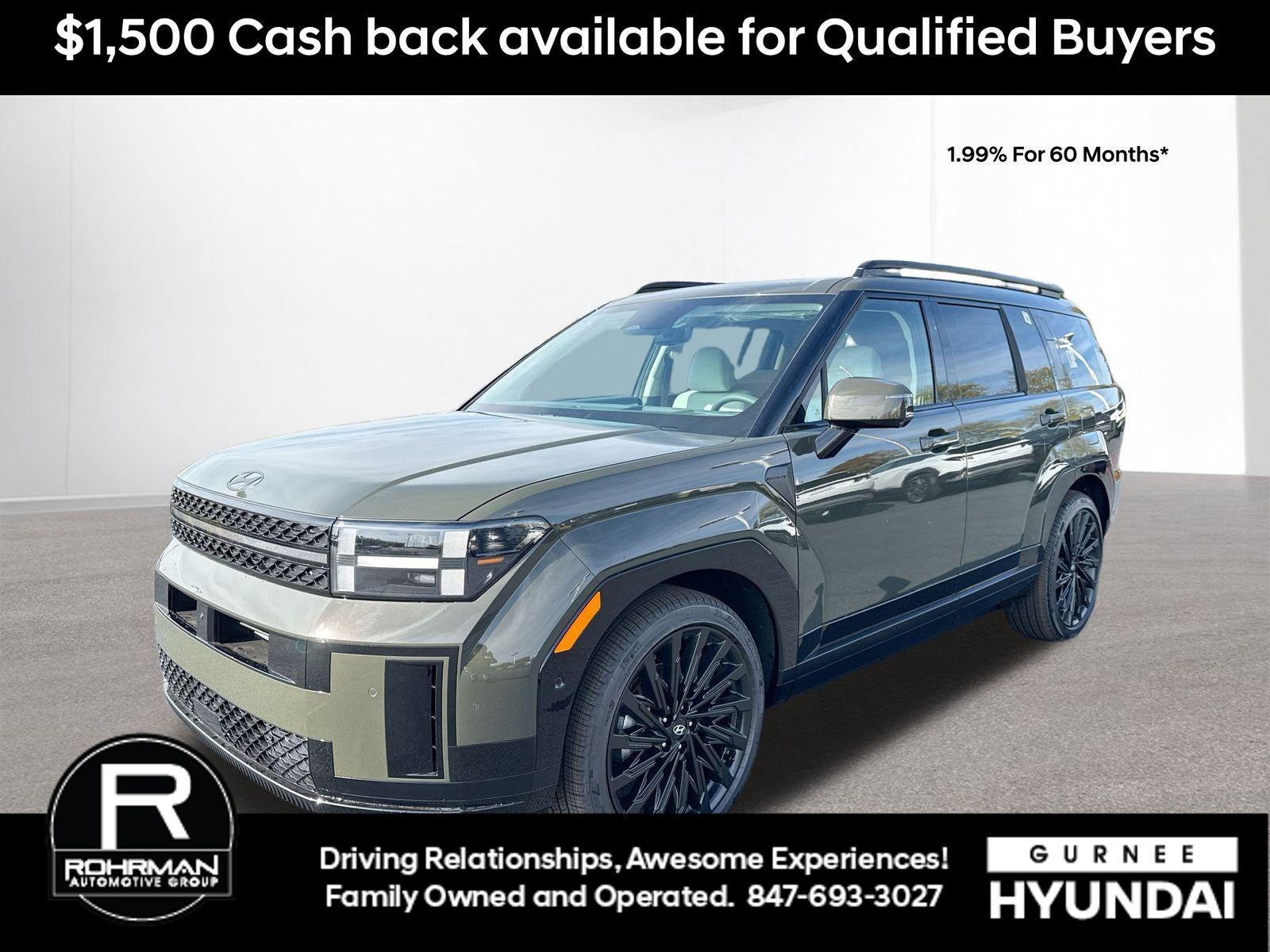 **ALL WHEEL DRIVE**, **SUNROOF/MOONROOF**, **NAVIGATION**, **LEATHER SEATS**, **3RD ROW SEATS**, **PUSH BUTTON START**, **KEYLESS ENTRY**, **BACKUP CAMERA**, **Bluetooth®**, **HEATED STEERING WHEEL**, **RAIN SENSING WIPERS!**, **POWER LIFTGATE**, **REMOTE START**, **BLIND SPOT MONITOR**, **APPLE CARPLAY/ANDROID AUTO**, **ADAPTIVE CRUISE CONTROL**, PORTABLE AUDIO CONNECTION/MP3, **BOSE PREMIUM AUDIO**, Navigation System, Option Group 01. $3,319 off MSRP! With options like Option Group 01, Navigation System, 12 Speakers, 3rd row seats: bench, 4-Wheel Disc Brakes, ABS brakes, Air Conditioning, All Season Fitted Liners, Alloy wheels, AM/FM radio: SiriusXM, Apple CarPlay & Android Auto, Auto High-beam Headlights, Auto-dimming Rear-View mirror, Automatic temperature control, Brake assist, Bumpers: body-color, Cargo Cover/Screen, Cargo Net, Cargo Organizer, Cargo Tray, Carpeted Floor Mats, Delay-off headlights, Driver door bin, Driver vanity mirror, Dual front impact airbags, Dual front side impact airbags, Electronic Stability Control, Emergency communication system, Exterior Parking Camera Rear, First Aid Kit, Four wheel independent suspension, Front anti-roll bar, Front Bucket Seats, Front Center Armrest, Front dual zone A/C, Front reading lights, Fully automatic headlights, Garage door transmitter: HomeLink, Heads-Up Display, Heated door mirrors, Heated front seats, Heated rear seats, Heated steering wheel, Illuminated entry, Knee airbag, Leather steering wheel, Low tire pressure warning, Memory seat, Occupant sensing airbag, Outside temperature display, Overhead airbag, Overhead console, Panic alarm, Passenger door bin, Passenger vanity mirror, Power door mirrors, Power driver seat, Power Liftgate, Power moonroof, Power passenger seat, Power steering, Power windows, Quilted Premium Nappa Leather Seat Trim, Radio: AM/FM/HD Bose Premium Audio System, Rain sensing wipers, Rear anti-roll bar, Rear side impact airbag, Rear window defroster, Rear window wiper, Remote keyless entry, Security system, Speed control, Speed-sensing steering, Split folding rear seat, Spoiler, Steering wheel mounted audio controls, Tachometer, Telescoping steering wheel, Tilt steering wheel, Traction control, Trip computer, Turn signal indicator mirrors, Variably intermittent wipers, Ventilated front seats, and Wheels: 21 x 8.5J Unique Dark Finish Alloy. Rockwood Green 2026 Hyundai Santa Fe Calligraphy AWD 8-Speed Automatic with SHIFTRONIC 2.5L I4