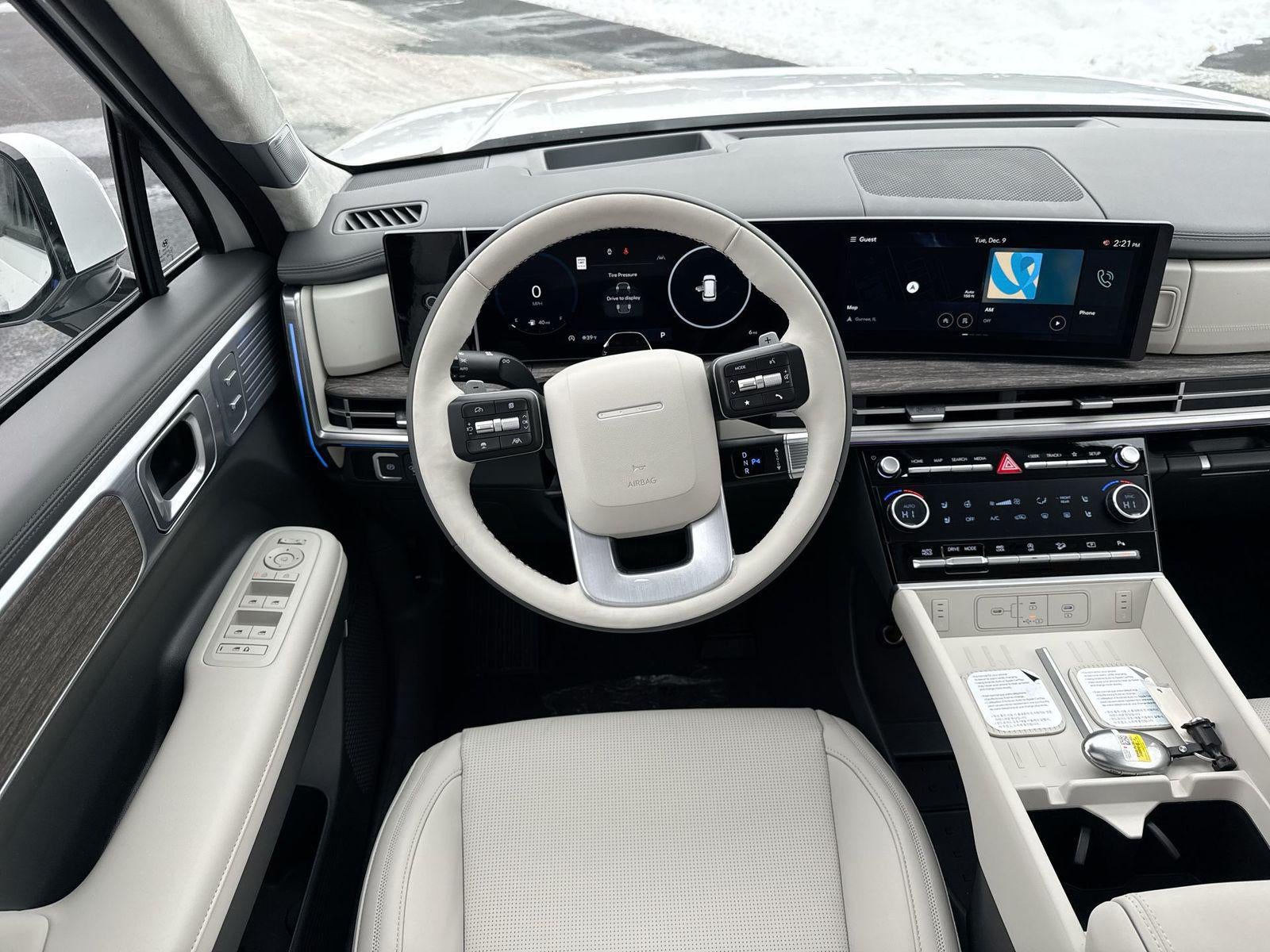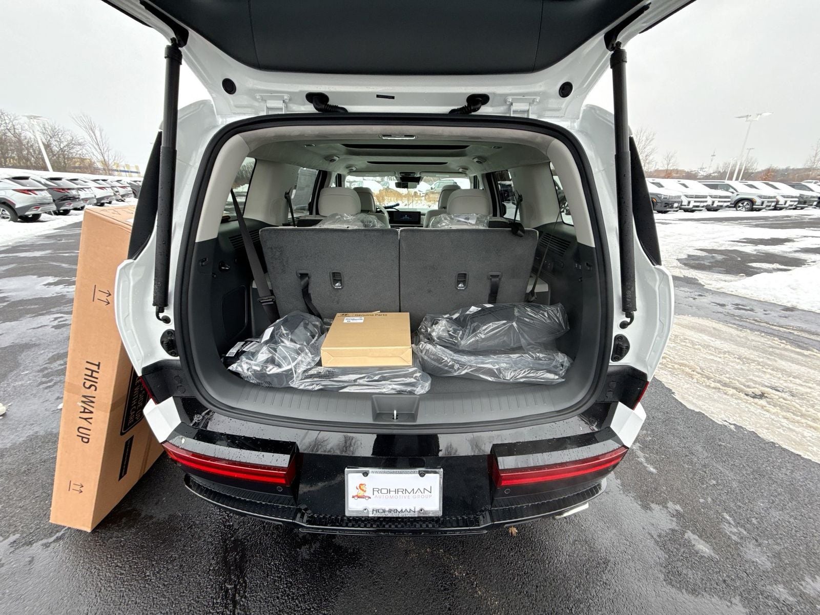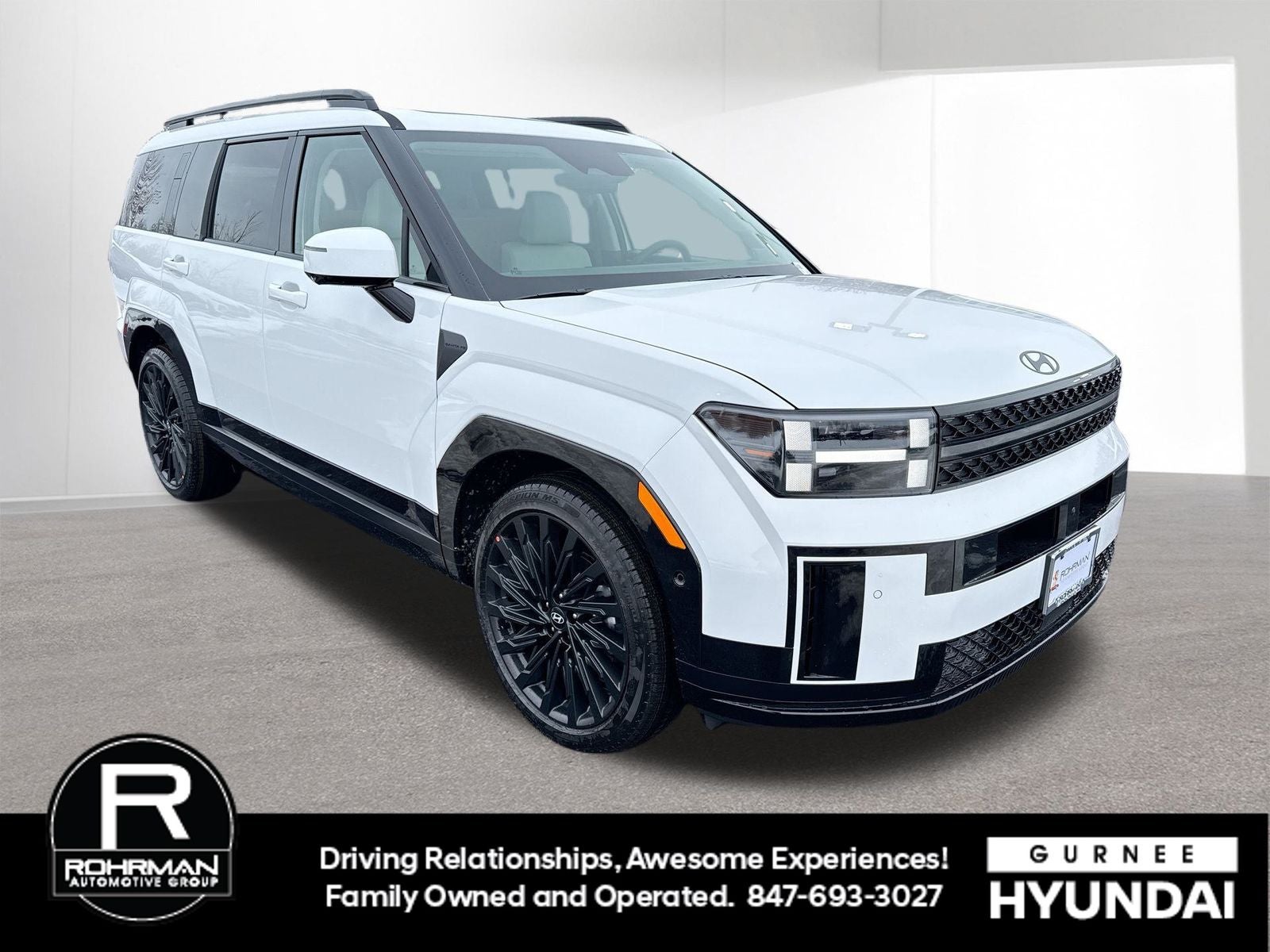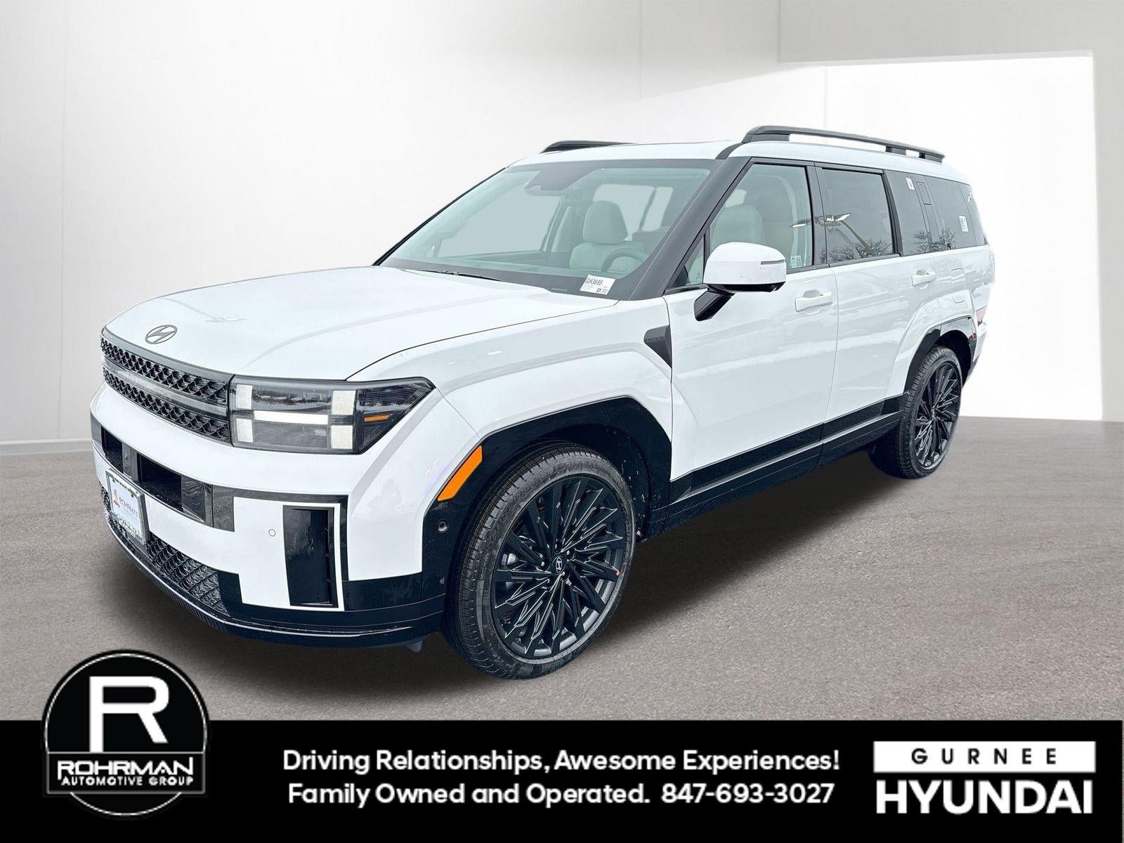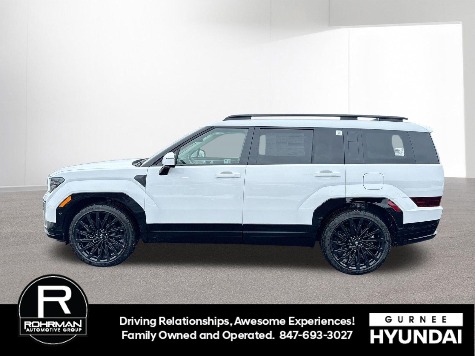 **ALL WHEEL DRIVE**, **SUNROOF/MOONROOF**, **NAVIGATION**, **LEATHER SEATS**, **3RD ROW SEATS**, **PUSH BUTTON START**, **KEYLESS ENTRY**, **BACKUP CAMERA**, **Bluetooth®**, **HEATED STEERING WHEEL**, **RAIN SENSING WIPERS!**, **POWER LIFTGATE**, **REMOTE START**, **BLIND SPOT MONITOR**, **APPLE CARPLAY/ANDROID AUTO**, **ADAPTIVE CRUISE CONTROL**, PORTABLE AUDIO CONNECTION/MP3, **BOSE PREMIUM AUDIO**, Navigation System, Option Group 01. $1,812 off MSRP! With options like Option Group 01, Navigation System, 12 Speakers, 3rd row seats: bench, 4-Wheel Disc Brakes, ABS brakes, Air Conditioning, All Season Fitted Liners, Alloy wheels, AM/FM radio: SiriusXM, Apple CarPlay & Android Auto, Auto High-beam Headlights, Auto-dimming Rear-View mirror, Automatic temperature control, Brake assist, Bumpers: body-color, Cargo Net, Cargo Organizer, Carpeted Floor Mats, Delay-off headlights, Driver door bin, Driver vanity mirror, Dual front impact airbags, Dual front side impact airbags, Electronic Stability Control, Emergency communication system, Exterior Parking Camera Rear, First Aid Kit, Four wheel independent suspension, Front anti-roll bar, Front Bucket Seats, Front Center Armrest, Front dual zone A/C, Front reading lights, Fully automatic headlights, Garage door transmitter: HomeLink, Heads-Up Display, Heated door mirrors, Heated front seats, Heated rear seats, Heated steering wheel, Illuminated entry, Knee airbag, Leather steering wheel, Low tire pressure warning, Memory seat, Occupant sensing airbag, Outside temperature display, Overhead airbag, Overhead console, Panic alarm, Passenger door bin, Passenger vanity mirror, Power door mirrors, Power driver seat, Power Liftgate, Power moonroof, Power passenger seat, Power steering, Power windows, Quilted Premium Nappa Leather Seat Trim, Radio: AM/FM/HD Bose Premium Audio System, Rain sensing wipers, Rear anti-roll bar, Rear side impact airbag, Rear window defroster, Rear window wiper, Remote keyless entry, Roadside Assistance Kit, Security system, Speed control, Speed-sensing steering, Split folding rear seat, Spoiler, Steering wheel mounted audio controls, Tachometer, Telescoping steering wheel, Tilt steering wheel, Traction control, Trip computer, Turn signal indicator mirrors, Variably intermittent wipers, Ventilated front seats, and Wheels: 21 x 8.5J Unique Dark Finish Alloy. Serenity White 2026 Hyundai Santa Fe Calligraphy AWD 8-Speed Automatic with SHIFTRONIC 2.5L I4