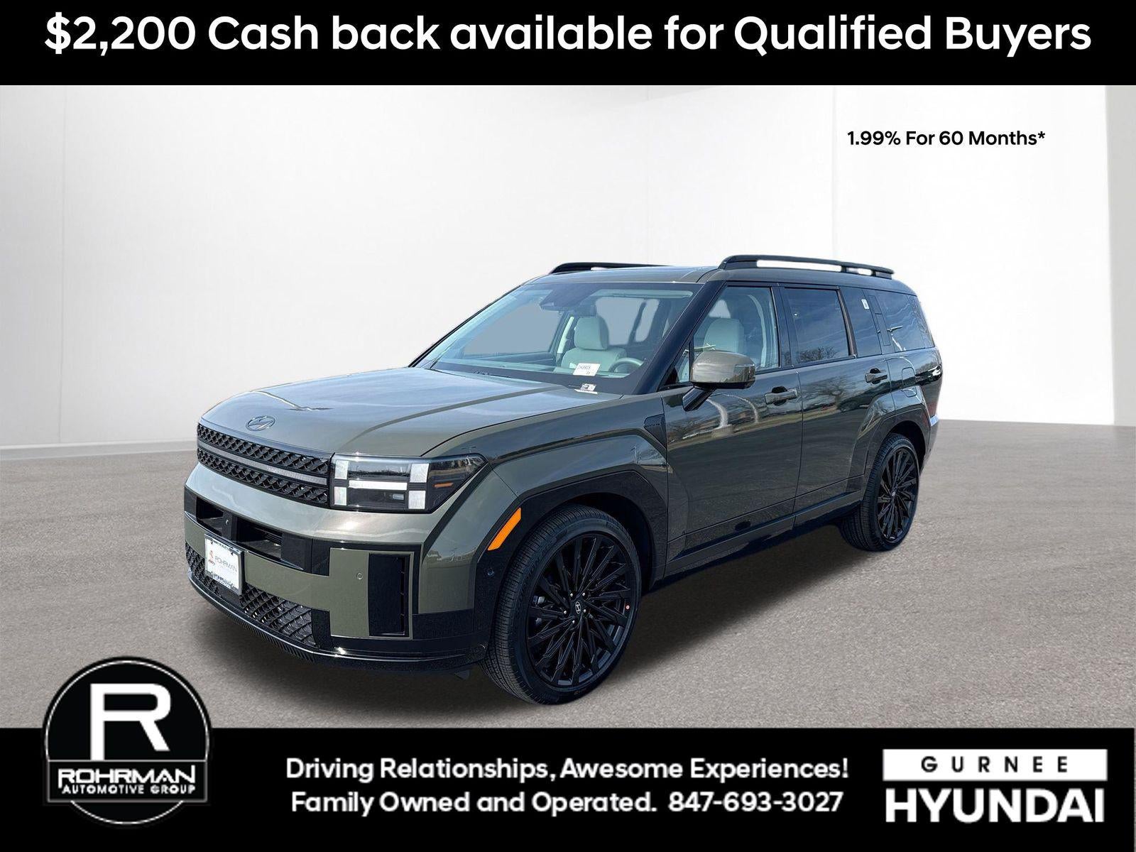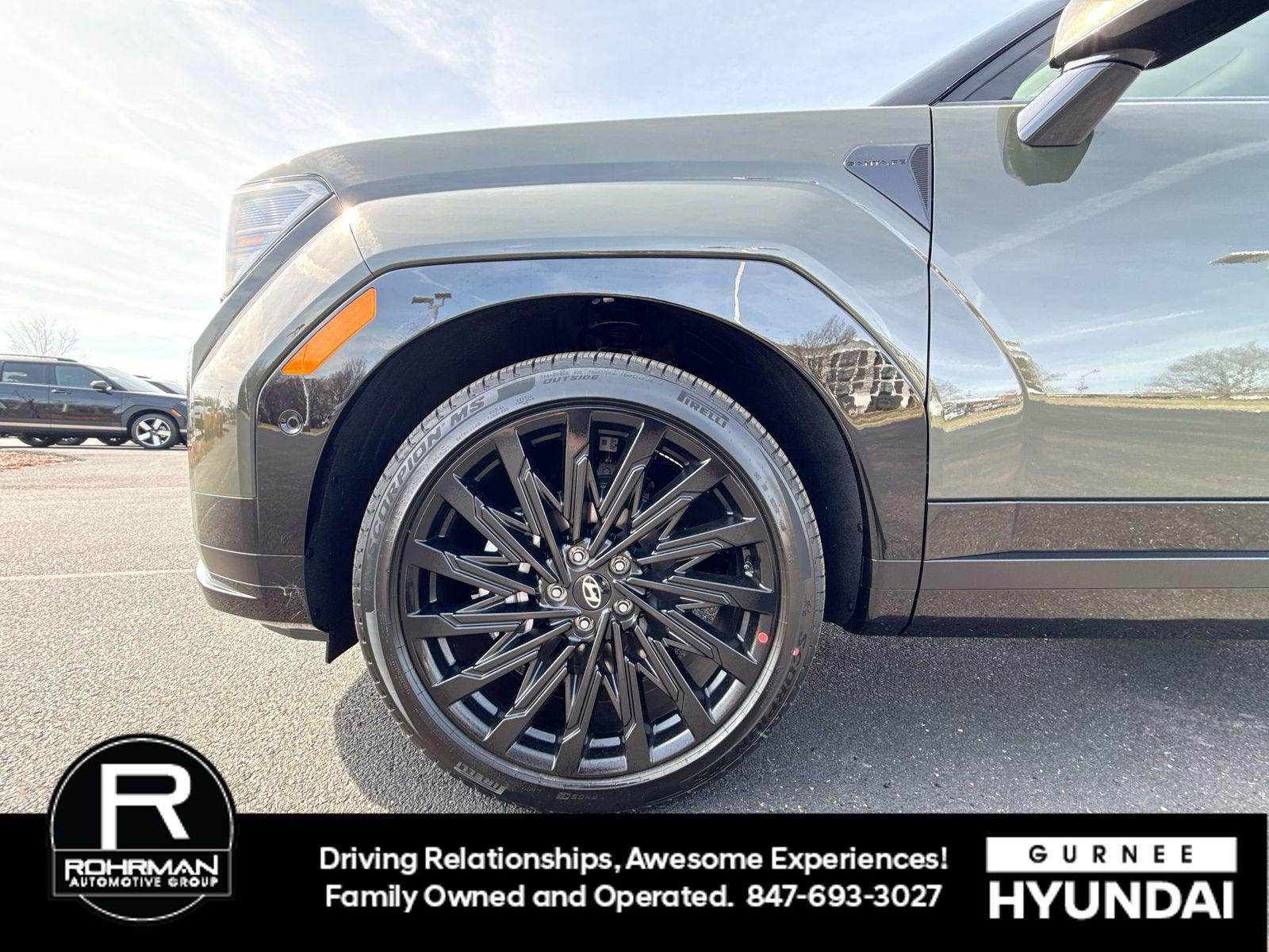 **ALL WHEEL DRIVE**, **SUNROOF/MOONROOF**, **NAVIGATION**, **LEATHER SEATS**, **3RD ROW SEATS**, **PUSH BUTTON START**, **KEYLESS ENTRY**, **BACKUP CAMERA**, **Bluetooth®**, **HEATED STEERING WHEEL**, **RAIN SENSING WIPERS!**, **POWER LIFTGATE**, **REMOTE START**, **BLIND SPOT MONITOR**, **APPLE CARPLAY/ANDROID AUTO**, **ADAPTIVE CRUISE CONTROL**, PORTABLE AUDIO CONNECTION/MP3, **BOSE PREMIUM AUDIO**, Navigation System, Option Group 01. $4,043 off MSRP! Priced below KBB Fair Purchase Price! With options like Option Group 01, Navigation System, 12 Speakers, 3rd row seats: bench, 4-Wheel Disc Brakes, ABS brakes, Air Conditioning, Alloy wheels, AM/FM radio: SiriusXM, Apple CarPlay & Android Auto, Auto High-beam Headlights, Auto-dimming Rear-View mirror, Automatic temperature control, Brake assist, Bumpers: body-color, Cargo Net, Cargo Tray, Carpeted Floor Mats, Delay-off headlights, Driver door bin, Driver vanity mirror, Dual front impact airbags, Dual front side impact airbags, Electronic Stability Control, Emergency communication system, Exterior Parking Camera Rear, First Aid Kit, Four wheel independent suspension, Front anti-roll bar, Front Bucket Seats, Front Center Armrest, Front dual zone A/C, Front reading lights, Fully automatic headlights, Garage door transmitter: HomeLink, Heads-Up Display, Heated and Ventilated Front Bucket Seats, Heated door mirrors, Heated front seats, Heated rear seats, Heated steering wheel, Illuminated entry, Knee airbag, Leather steering wheel, Low tire pressure warning, Memory seat, Occupant sensing airbag, Outside temperature display, Overhead airbag, Overhead console, Panic alarm, Passenger door bin, Passenger vanity mirror, Power door mirrors, Power driver seat, Power Liftgate, Power moonroof, Power passenger seat, Power steering, Power windows, Quilted Premium Nappa Leather Seat Trim, Radio: AM/FM/HD Bose Premium Audio System, Rain sensing wipers, Rear anti-roll bar, Rear side impact airbag, Rear window defroster, Rear window wiper, Remote keyless entry, Roadside Assistance Kit, Roof Rack Crossbars, Security system, Speed control, Speed-sensing steering, Split folding rear seat, Spoiler, Steering wheel mounted audio controls, Tachometer, Telescoping steering wheel, Tilt steering wheel, Traction control, Trip computer, Turn signal indicator mirrors, Variably intermittent wipers, Ventilated front seats, and Wheels: 21 x 8.5J Unique Dark Finish Alloy. Rockwood Green 2026 Hyundai Santa Fe Calligraphy AWD 8-Speed Automatic with SHIFTRONIC 2.5L I4