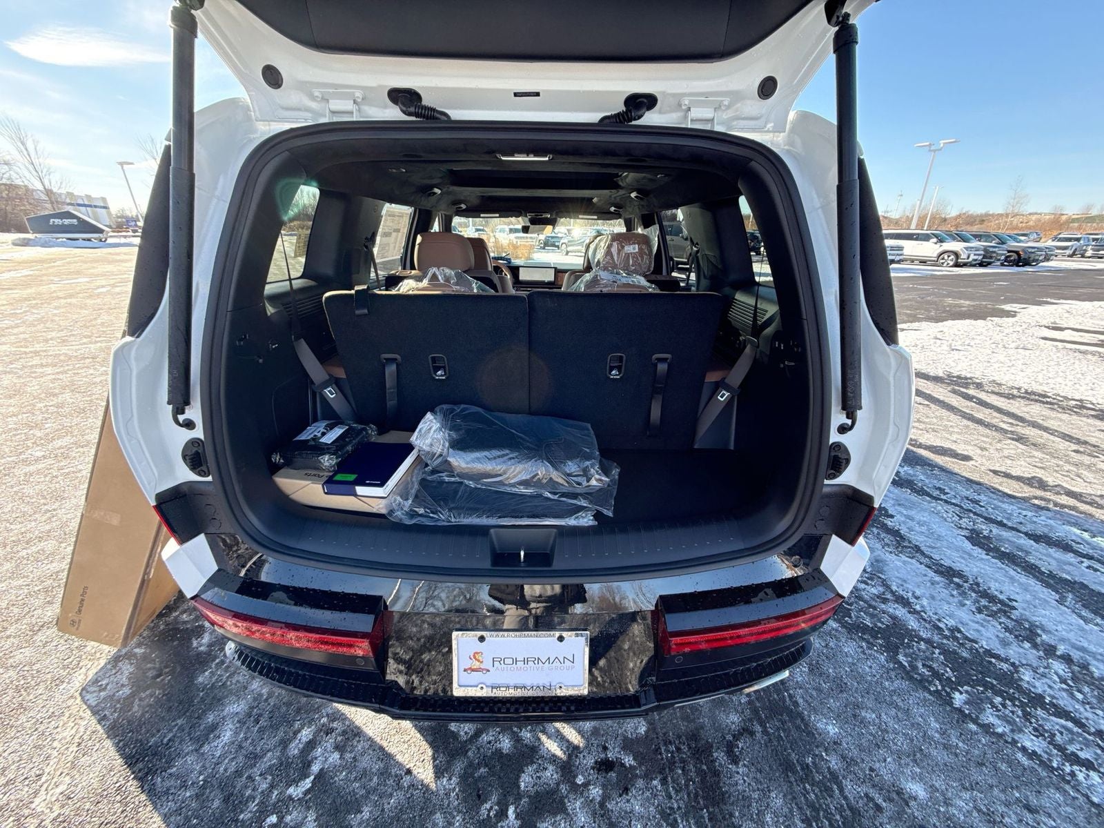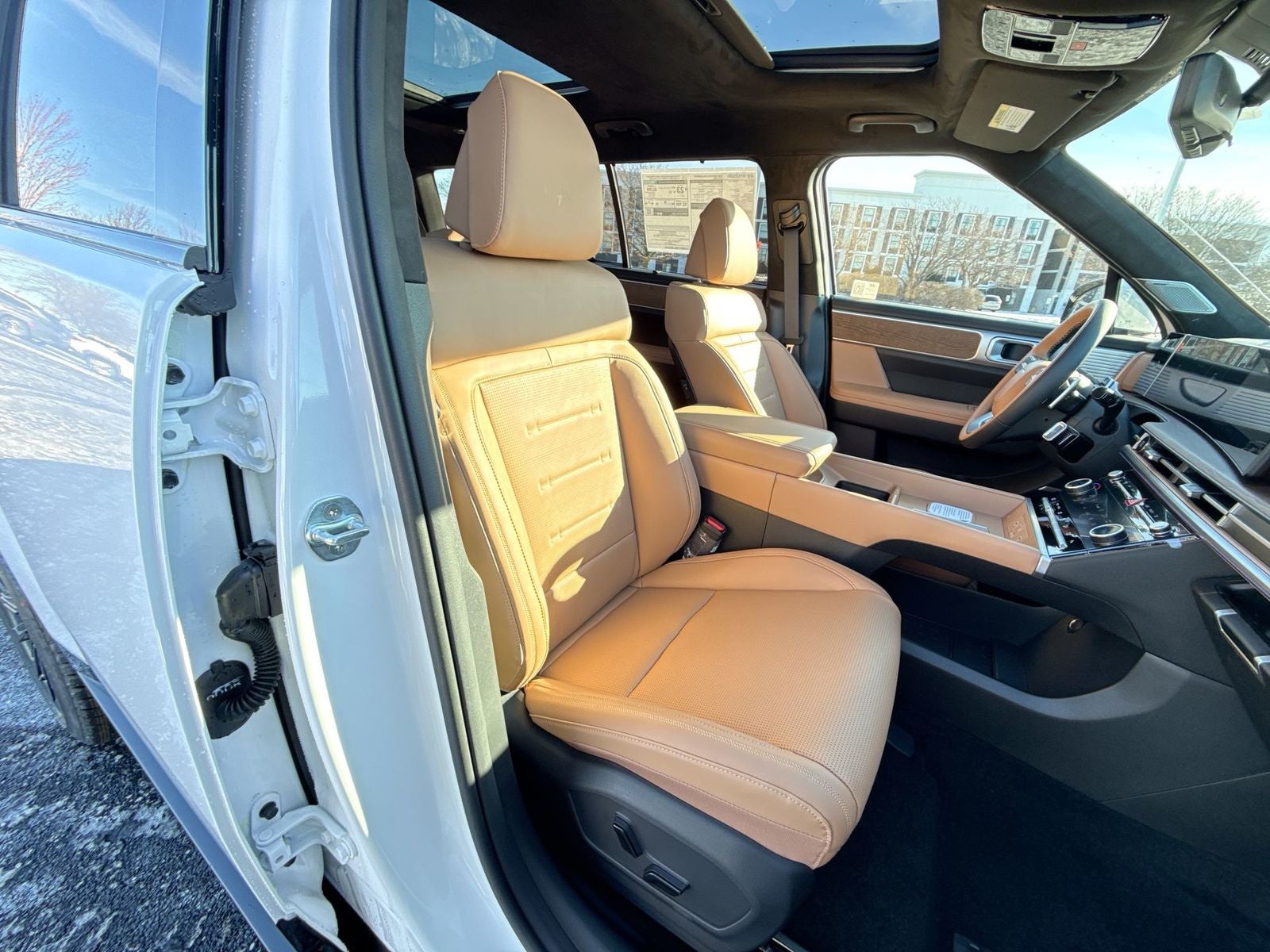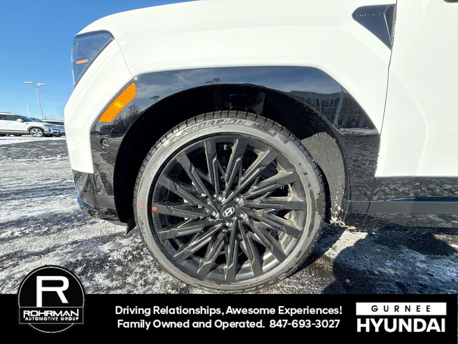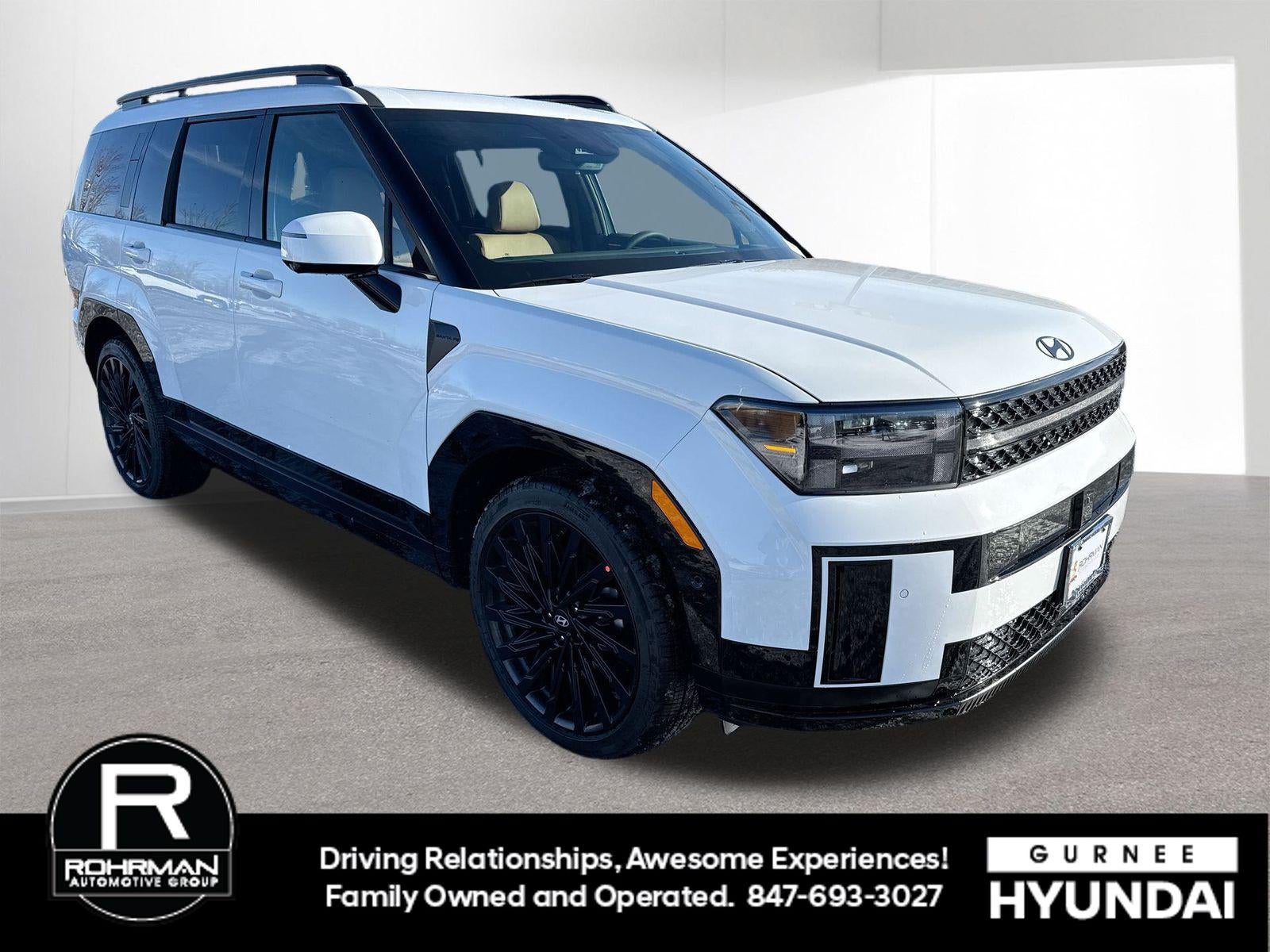 **ALL WHEEL DRIVE**, **SUNROOF/MOONROOF**, **NAVIGATION**, **LEATHER SEATS**, **3RD ROW SEATS**, **PUSH BUTTON START**, **KEYLESS ENTRY**, **BACKUP CAMERA**, **Bluetooth®**, **HEATED STEERING WHEEL**, **RAIN SENSING WIPERS!**, **POWER LIFTGATE**, **REMOTE START**, **BLIND SPOT MONITOR**, **APPLE CARPLAY/ANDROID AUTO**, **ADAPTIVE CRUISE CONTROL**, PORTABLE AUDIO CONNECTION/MP3, Navigation System, Option Group 01. $3,309 off MSRP! With options like Option Group 01, Navigation System, 12 Speakers, 3rd row seats: bench, 4-Wheel Disc Brakes, ABS brakes, Air Conditioning, Alloy wheels, AM/FM radio: SiriusXM, Apple CarPlay & Android Auto, Auto High-beam Headlights, Auto-dimming Rear-View mirror, Automatic temperature control, Brake assist, Bumpers: body-color, Cargo Cover/Screen, Cargo Net, Carpeted Floor Mats, Delay-off headlights, Driver door bin, Driver vanity mirror, Dual front impact airbags, Dual front side impact airbags, Electronic Stability Control, Emergency communication system, Exterior Parking Camera Rear, First Aid Kit, Four wheel independent suspension, Front anti-roll bar, Front Bucket Seats, Front Center Armrest, Front dual zone A/C, Front reading lights, Fully automatic headlights, Garage door transmitter: HomeLink, Heads-Up Display, Heated and Ventilated Front Bucket Seats, Heated door mirrors, Heated front seats, Heated rear seats, Heated steering wheel, Illuminated entry, Knee airbag, Leather steering wheel, Low tire pressure warning, Memory seat, Occupant sensing airbag, Outside temperature display, Overhead airbag, Overhead console, Panic alarm, Passenger door bin, Passenger vanity mirror, Power door mirrors, Power driver seat, Power Liftgate, Power moonroof, Power passenger seat, Power steering, Power windows, Quilted Premium Nappa Leather Seat Trim, Radio: AM/FM/HD Bose Premium Audio System, Rain sensing wipers, Rear anti-roll bar, Rear side impact airbag, Rear window defroster, Rear window wiper, Remote keyless entry, Roof Rack Crossbars, Security system, Speed control, Speed-sensing steering, Split folding rear seat, Spoiler, Steering wheel mounted audio controls, Tachometer, Telescoping steering wheel, Tilt steering wheel, Traction control, Trip computer, Turn signal indicator mirrors, Variably intermittent wipers, Ventilated front seats, and Wheels: 21 x 8.5J Unique Dark Finish Alloy. Serenity White 2026 Hyundai Santa Fe Calligraphy AWD 8-Speed Automatic with SHIFTRONIC 2.5L I4
