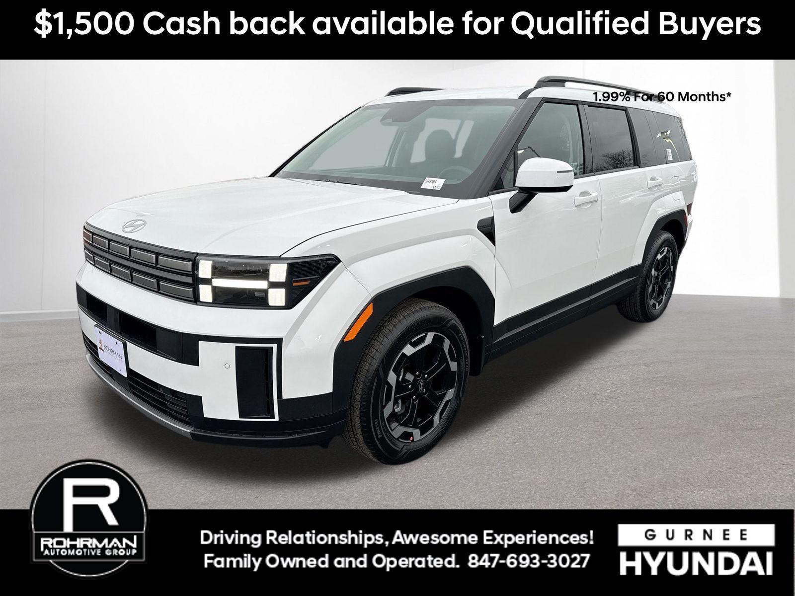 **ALL WHEEL DRIVE**, ** 7 PASSENGER**, **LEATHER SEATS**, **3RD ROW SEATS**, **PUSH BUTTON START**, **KEYLESS ENTRY**, **BACKUP CAMERA**, **Bluetooth®**, **POWER LIFTGATE**, **REMOTE START**, **BLIND SPOT MONITOR**, **APPLE CARPLAY/ANDROID AUTO**, **ADAPTIVE CRUISE CONTROL**, Option Group 01. $3,009 off MSRP! With options like Option Group 01, 18 x 7.5J Alloy Wheels, 3rd row seats: bench, 4-Wheel Disc Brakes, 6 Speakers, ABS brakes, Air Conditioning, All Season Fitted Liners, Alloy wheels, AM/FM radio: SiriusXM, Apple CarPlay & Android Auto, Auto High-beam Headlights, Automatic temperature control, Brake assist, Bumpers: body-color, Cargo Cover/Screen, Cargo Net, Carpeted Floor Mats, Delay-off headlights, Driver door bin, Driver vanity mirror, Dual front impact airbags, Dual front side impact airbags, Electronic Stability Control, Emergency communication system, Exterior Parking Camera Rear, First Aid Kit, Four wheel independent suspension, Front anti-roll bar, Front Bucket Seats, Front Center Armrest, Front dual zone A/C, Front reading lights, Fully automatic headlights, H-Tex Leatherette Seat Trim, Heated door mirrors, Heated Front Bucket Seats, Heated front seats, Illuminated entry, Knee airbag, Leather steering wheel, Low tire pressure warning, Mudguards, Occupant sensing airbag, Outside temperature display, Overhead airbag, Overhead console, Panic alarm, Passenger door bin, Passenger vanity mirror, Power door mirrors, Power driver seat, Power Liftgate, Power steering, Power windows, Radio: AM/FM/HD Display Audio, Rear anti-roll bar, Rear seat center armrest, Rear side impact airbag, Rear window defroster, Rear window wiper, Remote keyless entry, Security system, Speed control, Speed-sensing steering, Split folding rear seat, Spoiler, Steering wheel mounted audio controls, Tachometer, Telescoping steering wheel, Tilt steering wheel, Traction control, Trip computer, Turn signal indicator mirrors, and Variably intermittent wipers. Serenity White 2026 Hyundai Santa Fe SEL AWD 8-Speed Automatic with SHIFTRONIC 2.5L I4