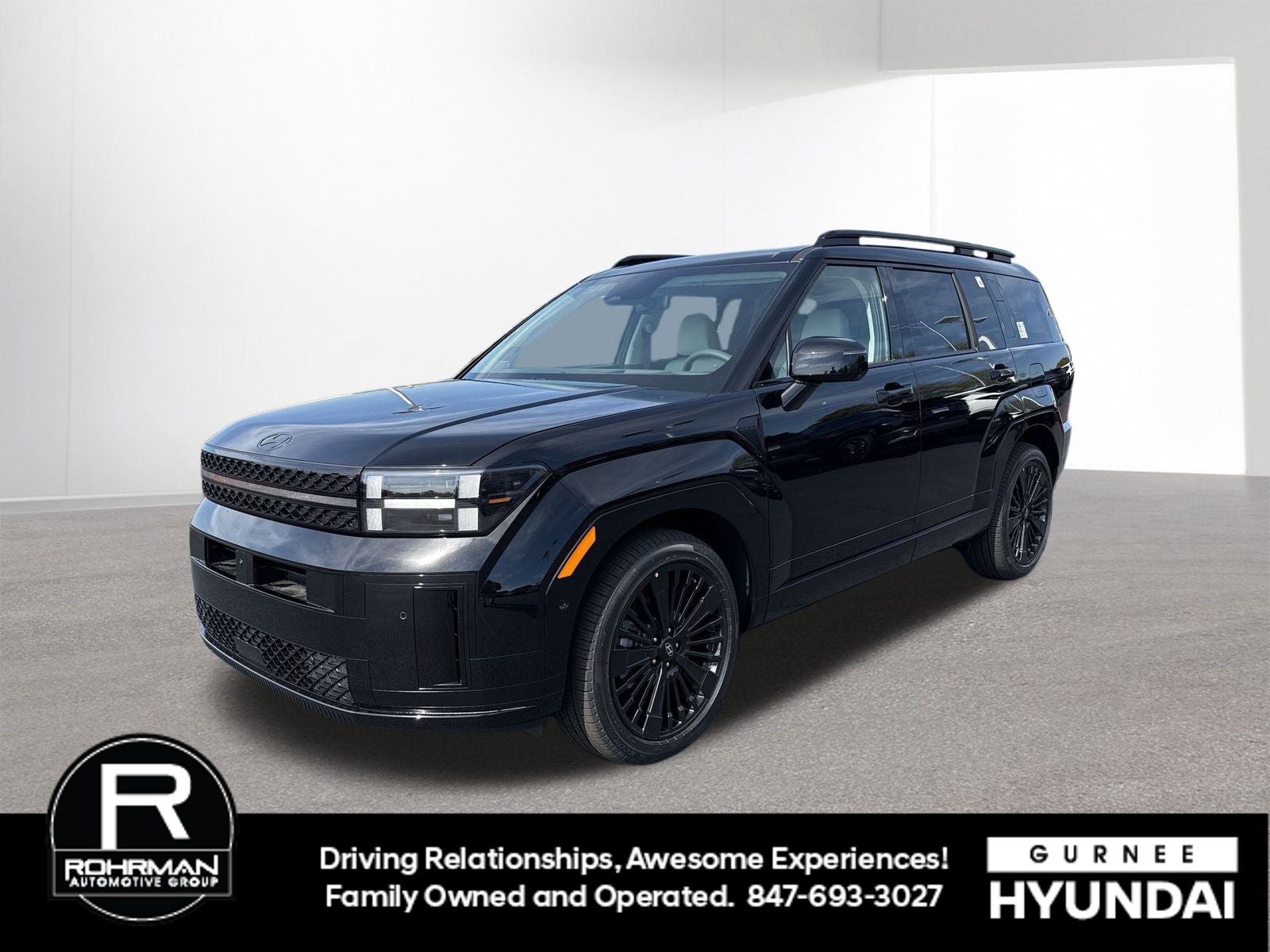 **ALL WHEEL DRIVE**, **SUNROOF/MOONROOF**, **NAVIGATION**, **LEATHER SEATS**, **3RD ROW SEATS**, **PUSH BUTTON START**, **KEYLESS ENTRY**, **BACKUP CAMERA**, **Bluetooth®**, **HEATED STEERING WHEEL**, **RAIN SENSING WIPERS!**, **POWER LIFTGATE**, **REMOTE START**, **BLIND SPOT MONITOR**, **APPLE CARPLAY/ANDROID AUTO**, **ADAPTIVE CRUISE CONTROL**, PORTABLE AUDIO CONNECTION/MP3, **BOSE PREMIUM AUDIO**, Carpeted Floor Mats, Navigation System, Option Group 01. $2,686 off MSRP! With options like Option Group 01, Carpeted Floor Mats, Navigation System, 12 Speakers, 3rd row seats: bench, 4-Wheel Disc Brakes, ABS brakes, Air Conditioning, All Season Fitted Liners, Alloy wheels, AM/FM radio: SiriusXM, Apple CarPlay & Android Auto, Auto High-beam Headlights, Auto-dimming Rear-View mirror, Automatic temperature control, Brake assist, Bumpers: body-color, Cargo Cover/Screen, Cargo Net, Cargo Tray, Delay-off headlights, Driver door bin, Driver vanity mirror, Dual front impact airbags, Dual front side impact airbags, Electronic Stability Control, Emergency communication system, Exterior Parking Camera Rear, First Aid Kit, Four wheel independent suspension, Front anti-roll bar, Front Bucket Seats, Front Center Armrest, Front dual zone A/C, Front reading lights, Fully automatic headlights, Garage door transmitter: HomeLink, Heads-Up Display, Heated door mirrors, Heated front seats, Heated rear seats, Heated steering wheel, Illuminated entry, Knee airbag, Leather steering wheel, Low tire pressure warning, Memory seat, Occupant sensing airbag, Outside temperature display, Overhead airbag, Overhead console, Panic alarm, Passenger door bin, Passenger vanity mirror, Power door mirrors, Power driver seat, Power Liftgate, Power moonroof, Power passenger seat, Power steering, Power windows, Quilted Premium Nappa Leather Seat Trim, Radio: AM/FM/HD Bose Premium Audio System, Rain sensing wipers, Rear anti-roll bar, Rear side impact airbag, Rear window defroster, Rear window wiper, Remote keyless entry, Roof Rack Crossbars, Security system, Severe Weather Kit, Speed control, Speed-sensing steering, Split folding rear seat, Spoiler, Steering wheel mounted audio controls, Tachometer, Telescoping steering wheel, Tilt steering wheel, Traction control, Trip computer, Turn signal indicator mirrors, Variably intermittent wipers, Ventilated front seats, and Wheels: 20 x 8.5J Unique Dark Finish Alloy. Phantom Black 2026 Hyundai Santa Fe Hybrid Calligraphy AWD 6-Speed Automatic with Shiftronic I4