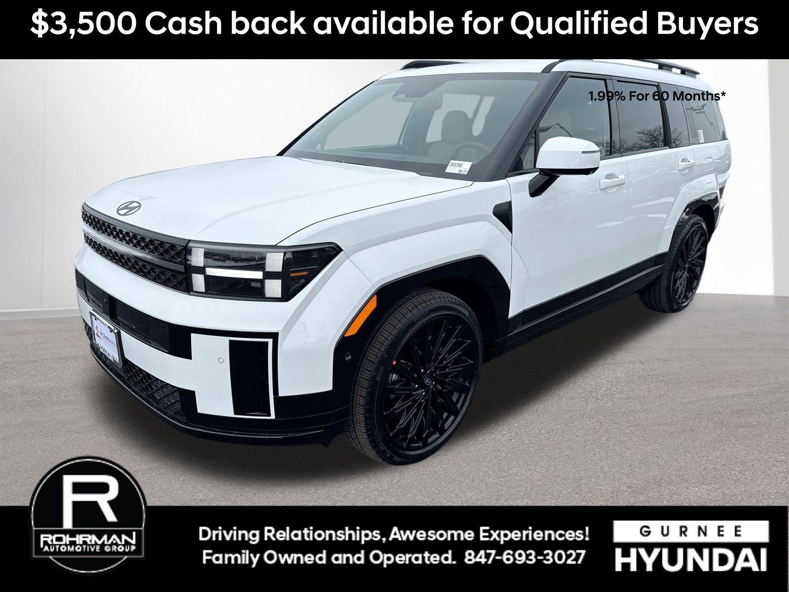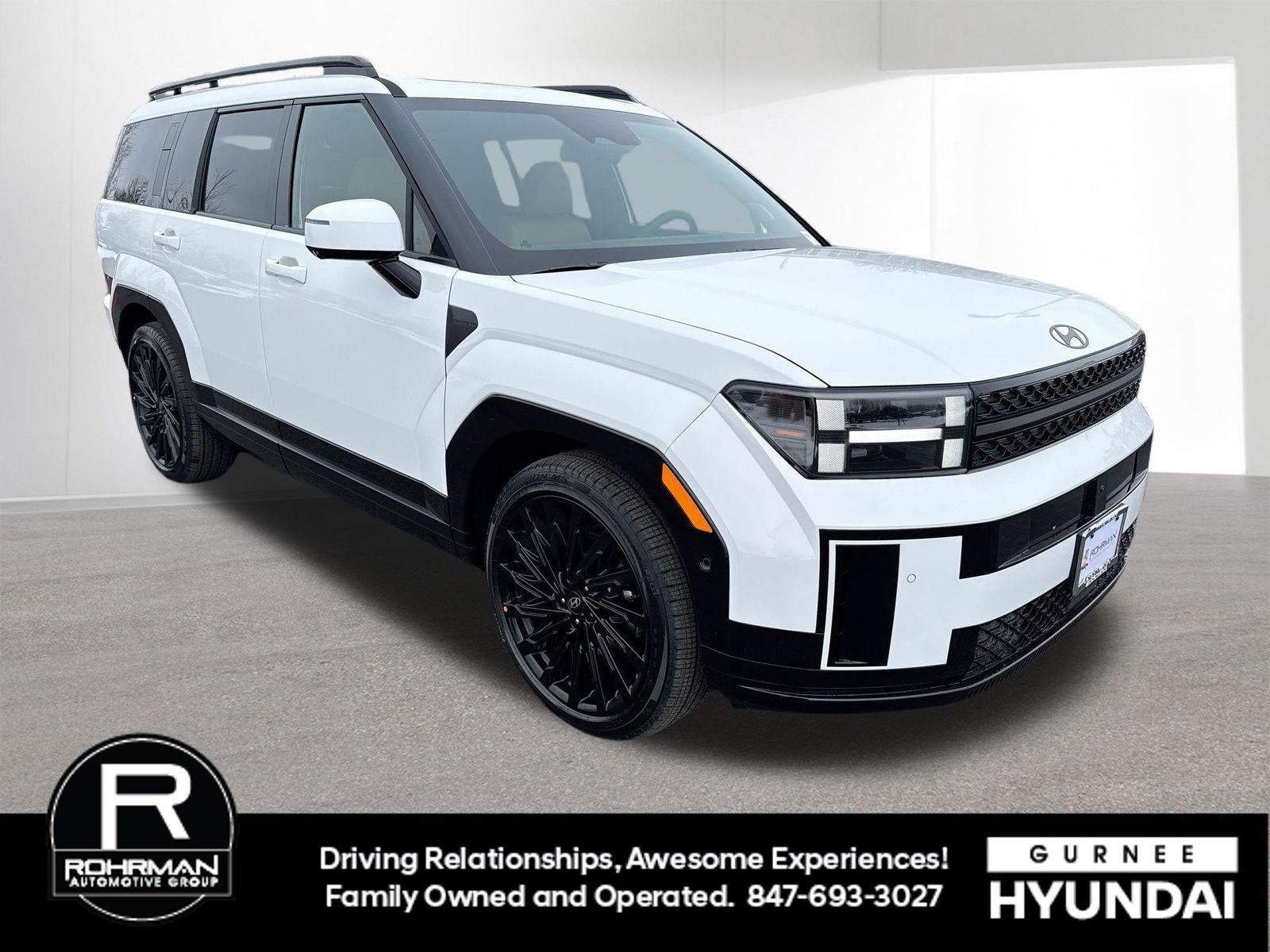 **ALL WHEEL DRIVE**, **SUNROOF/MOONROOF**, **NAVIGATION**, **LEATHER SEATS**, **3RD ROW SEATS**, **PUSH BUTTON START**, **KEYLESS ENTRY**, **BACKUP CAMERA**, **Bluetooth®**, **HEATED STEERING WHEEL**, **RAIN SENSING WIPERS!**, **POWER LIFTGATE**, **REMOTE START**, **BLIND SPOT MONITOR**, **APPLE CARPLAY/ANDROID AUTO**, **ADAPTIVE CRUISE CONTROL**, PORTABLE AUDIO CONNECTION/MP3, **BOSE PREMIUM AUDIO**, Navigation System, Option Group 01. $5,326 off MSRP! Priced below KBB Fair Purchase Price! With options like Option Group 01, Navigation System, 12 Speakers, 3rd row seats: bench, 4-Wheel Disc Brakes, ABS brakes, Air Conditioning, Alloy wheels, AM/FM radio: SiriusXM, Apple CarPlay & Android Auto, Auto High-beam Headlights, Auto-dimming Rear-View mirror, Automatic temperature control, Brake assist, Bumpers: body-color, Cargo Cover/Screen, Cargo Net, Cargo Organizer, Cargo Tray, Carpeted Floor Mats, Delay-off headlights, Driver door bin, Driver vanity mirror, Dual front impact airbags, Dual front side impact airbags, Electronic Stability Control, Emergency communication system, Exterior Parking Camera Rear, First Aid Kit, Four wheel independent suspension, Front anti-roll bar, Front Bucket Seats, Front Center Armrest, Front dual zone A/C, Front reading lights, Fully automatic headlights, Garage door transmitter: HomeLink, Heads-Up Display, Heated and Ventilated Front Bucket Seats, Heated door mirrors, Heated front seats, Heated rear seats, Heated steering wheel, Illuminated entry, Knee airbag, Leather steering wheel, Low tire pressure warning, Memory seat, Occupant sensing airbag, Outside temperature display, Overhead airbag, Overhead console, Panic alarm, Passenger door bin, Passenger vanity mirror, Power door mirrors, Power driver seat, Power Liftgate, Power moonroof, Power passenger seat, Power steering, Power windows, Quilted Premium Nappa Leather Seat Trim, Radio: AM/FM/HD Bose Premium Audio System, Rain sensing wipers, Rear anti-roll bar, Rear side impact airbag, Rear window defroster, Rear window wiper, Remote keyless entry, Security system, Severe Weather Kit, Speed control, Speed-sensing steering, Split folding rear seat, Spoiler, Steering wheel mounted audio controls, Tachometer, Telescoping steering wheel, Tilt steering wheel, Traction control, Trip computer, Turn signal indicator mirrors, Variably intermittent wipers, Ventilated front seats, and Wheels: 21 x 8.5J Unique Dark Finish Alloy. Serenity White 2026 Hyundai Santa Fe Calligraphy AWD 8-Speed Automatic with SHIFTRONIC 2.5L I4