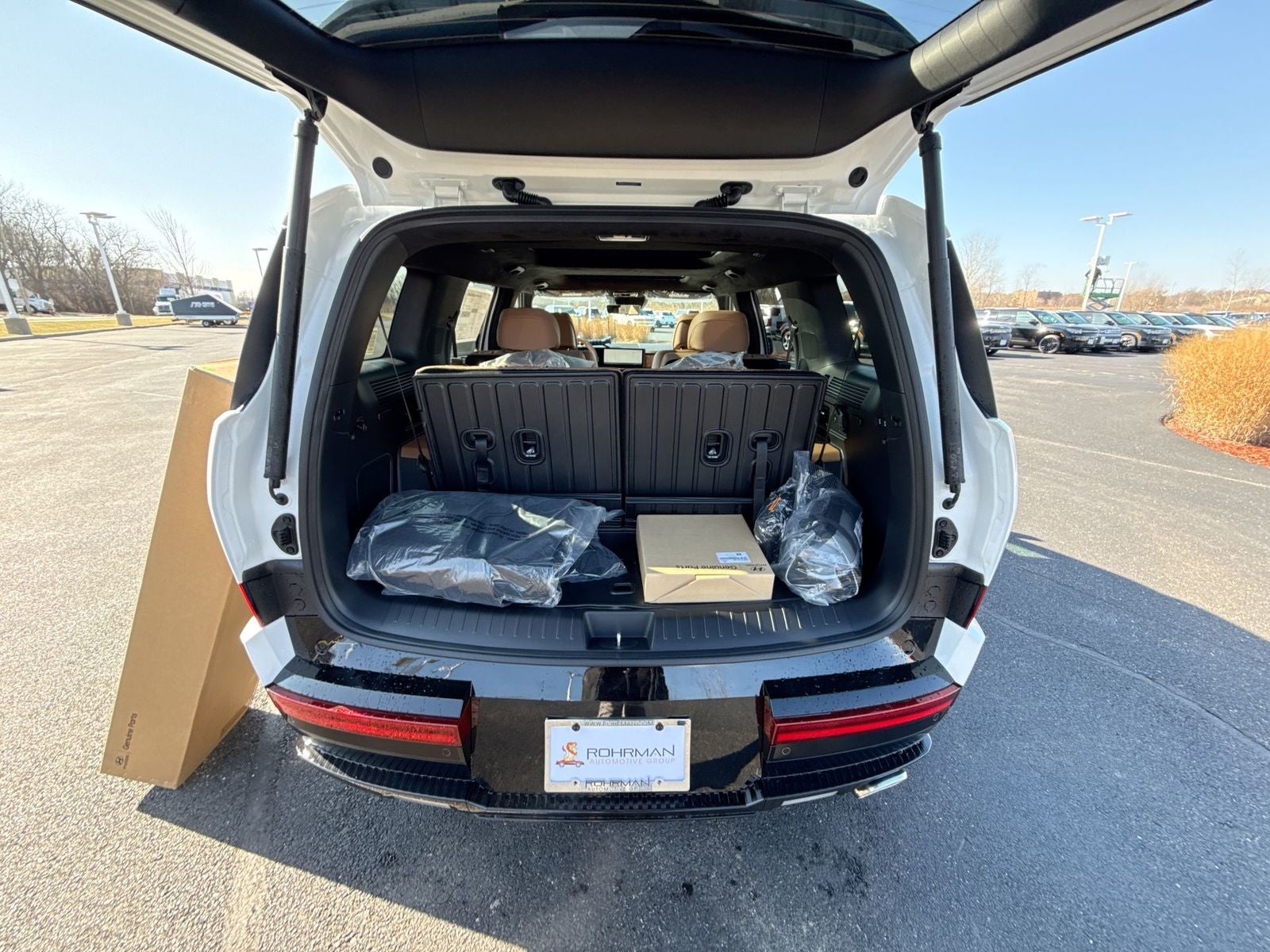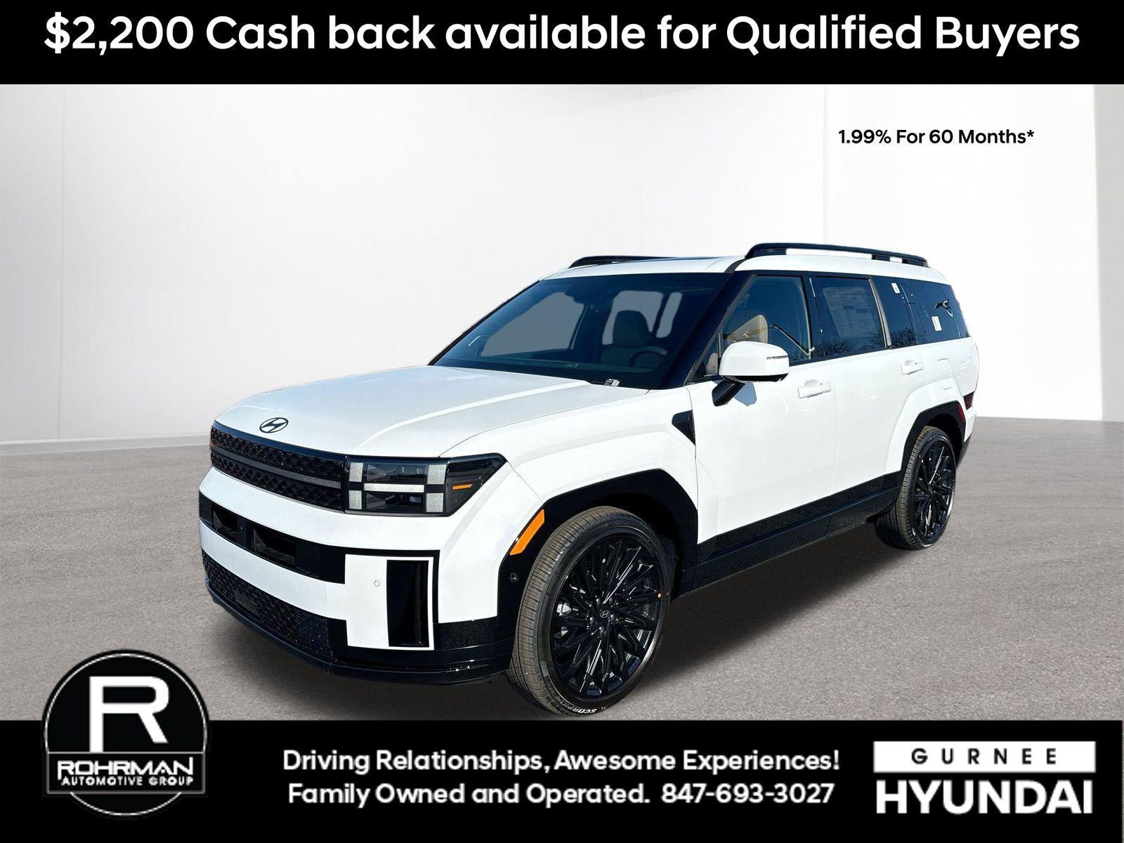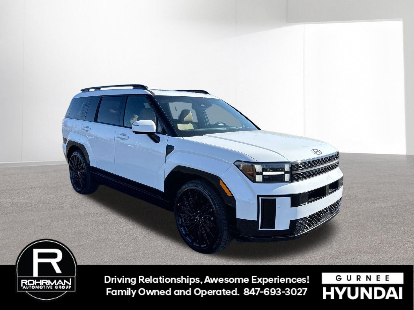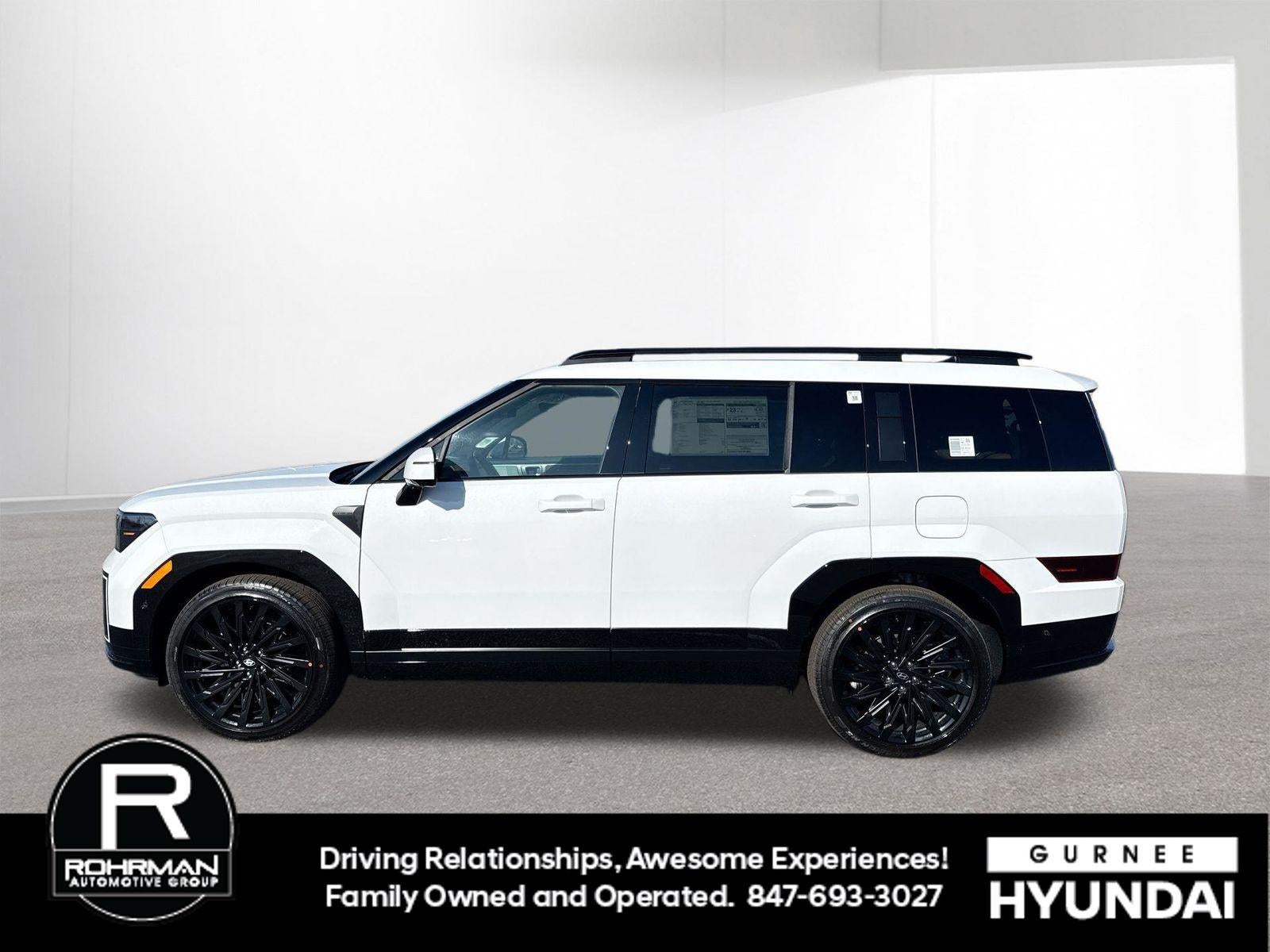 **ALL WHEEL DRIVE**, **SUNROOF/MOONROOF**, **NAVIGATION**, **LEATHER SEATS**, **3RD ROW SEATS**, **PUSH BUTTON START**, **KEYLESS ENTRY**, **BACKUP CAMERA**, **Bluetooth®**, **HEATED STEERING WHEEL**, **RAIN SENSING WIPERS!**, **POWER LIFTGATE**, **REMOTE START**, **BLIND SPOT MONITOR**, **APPLE CARPLAY/ANDROID AUTO**, **ADAPTIVE CRUISE CONTROL**, PORTABLE AUDIO CONNECTION/MP3, **BOSE PREMIUM AUDIO**, Navigation System, Option Group 01. $4,057 off MSRP! Priced below KBB Fair Purchase Price! With options like Option Group 01, Navigation System, 12 Speakers, 3rd row seats: bench, 4-Wheel Disc Brakes, ABS brakes, Air Conditioning, Alloy wheels, AM/FM radio: SiriusXM, Apple CarPlay & Android Auto, Auto High-beam Headlights, Auto-dimming Rear-View mirror, Automatic temperature control, Brake assist, Bumpers: body-color, Cargo Net, Cargo Tray, Carpeted Floor Mats, Delay-off headlights, Driver door bin, Driver vanity mirror, Dual front impact airbags, Dual front side impact airbags, Electronic Stability Control, Emergency communication system, Exterior Parking Camera Rear, First Aid Kit, Four wheel independent suspension, Front anti-roll bar, Front Bucket Seats, Front Center Armrest, Front dual zone A/C, Front reading lights, Fully automatic headlights, Garage door transmitter: HomeLink, Heads-Up Display, Heated and Ventilated Front Bucket Seats, Heated door mirrors, Heated front seats, Heated rear seats, Heated steering wheel, Illuminated entry, Knee airbag, Leather steering wheel, Low tire pressure warning, Memory seat, Occupant sensing airbag, Outside temperature display, Overhead airbag, Overhead console, Panic alarm, Passenger door bin, Passenger vanity mirror, Power door mirrors, Power driver seat, Power Liftgate, Power moonroof, Power passenger seat, Power steering, Power windows, Quilted Premium Nappa Leather Seat Trim, Radio: AM/FM/HD Bose Premium Audio System, Rain sensing wipers, Rear anti-roll bar, Rear side impact airbag, Rear window defroster, Rear window wiper, Remote keyless entry, Roadside Assistance Kit, Roof Rack Crossbars, Security system, Speed control, Speed-sensing steering, Split folding rear seat, Spoiler, Steering wheel mounted audio controls, Tachometer, Telescoping steering wheel, Tilt steering wheel, Traction control, Trip computer, Turn signal indicator mirrors, Variably intermittent wipers, Ventilated front seats, and Wheels: 21 x 8.5J Unique Dark Finish Alloy. Serenity White 2026 Hyundai Santa Fe Calligraphy AWD 8-Speed Automatic with SHIFTRONIC 2.5L I4