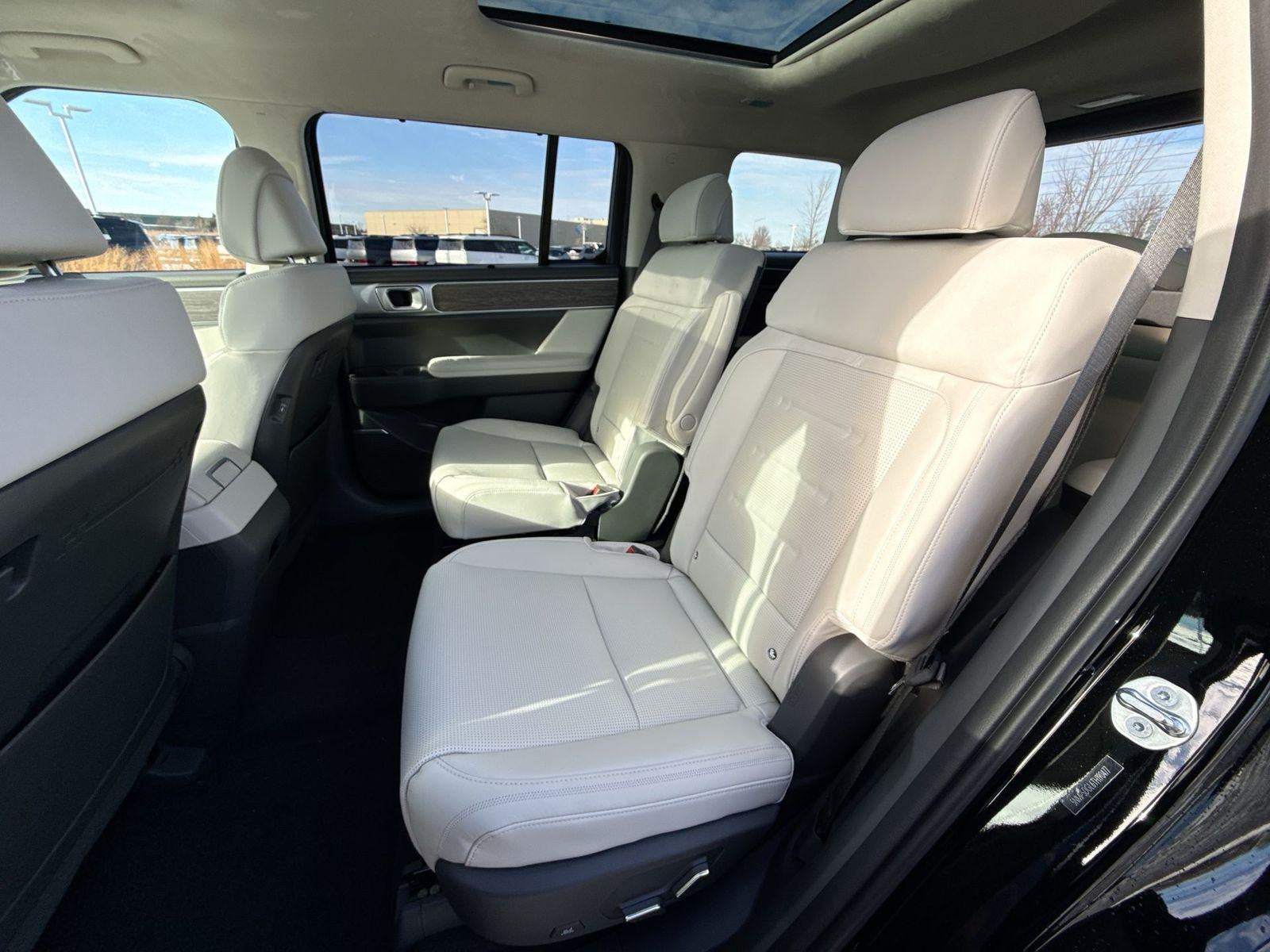**ALL WHEEL DRIVE**, **SUNROOF/MOONROOF**, **NAVIGATION**, **LEATHER SEATS**, **3RD ROW SEATS**, **PUSH BUTTON START**, **KEYLESS ENTRY**, **BACKUP CAMERA**, **Bluetooth®**, **HEATED STEERING WHEEL**, **RAIN SENSING WIPERS!**, **POWER LIFTGATE**, **REMOTE START**, **BLIND SPOT MONITOR**, **APPLE CARPLAY/ANDROID AUTO**, **ADAPTIVE CRUISE CONTROL**, PORTABLE AUDIO CONNECTION/MP3, **BOSE PREMIUM AUDIO**, Navigation System, Option Group 01. $1,796 off MSRP! With options like Option Group 01, Navigation System, 12 Speakers, 3rd row seats: bench, 4-Wheel Disc Brakes, ABS brakes, Air Conditioning, Alloy wheels, AM/FM radio: SiriusXM, Apple CarPlay & Android Auto, Auto High-beam Headlights, Auto-dimming Rear-View mirror, Automatic temperature control, Brake assist, Bumpers: body-color, Cargo Net, Carpeted Floor Mats, Delay-off headlights, Driver door bin, Driver vanity mirror, Dual front impact airbags, Dual front side impact airbags, Electronic Stability Control, Emergency communication system, Exterior Parking Camera Rear, Four wheel independent suspension, Front anti-roll bar, Front Bucket Seats, Front Center Armrest, Front dual zone A/C, Front reading lights, Fully automatic headlights, Garage door transmitter: HomeLink, Heads-Up Display, Heated and Ventilated Front Bucket Seats, Heated door mirrors, Heated front seats, Heated rear seats, Heated steering wheel, Illuminated entry, Knee airbag, Leather steering wheel, Low tire pressure warning, Memory seat, Occupant sensing airbag, Outside temperature display, Overhead airbag, Overhead console, Panic alarm, Passenger door bin, Passenger vanity mirror, Power door mirrors, Power driver seat, Power Liftgate, Power moonroof, Power passenger seat, Power steering, Power windows, Quilted Premium Nappa Leather Seat Trim, Radio: AM/FM/HD Bose Premium Audio System, Rain sensing wipers, Rear anti-roll bar, Rear side impact airbag, Rear window defroster, Rear window wiper, Remote keyless entry, Security system, Speed control, Speed-sensing steering, Split folding rear seat, Spoiler, Steering wheel mounted audio controls, Tachometer, Telescoping steering wheel, Tilt steering wheel, Traction control, Trip computer, Turn signal indicator mirrors, Variably intermittent wipers, Ventilated front seats, and Wheels: 21 x 8.5J Unique Dark Finish Alloy. Phantom Black 2026 Hyundai Santa Fe Calligraphy AWD 8-Speed Automatic with SHIFTRONIC 2.5L I4