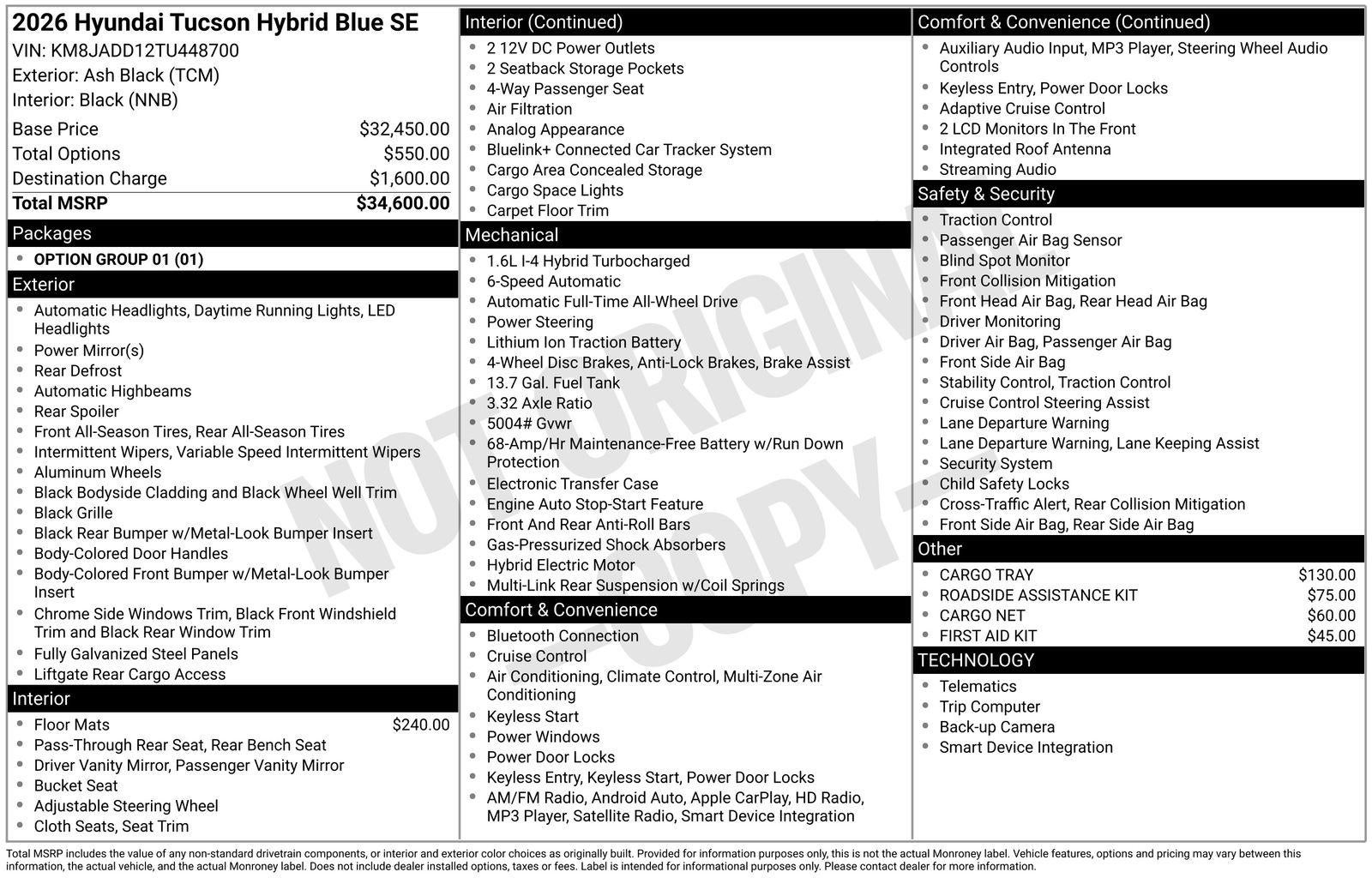 - Vehicle Name: Hyundai Tucson Hybrid
