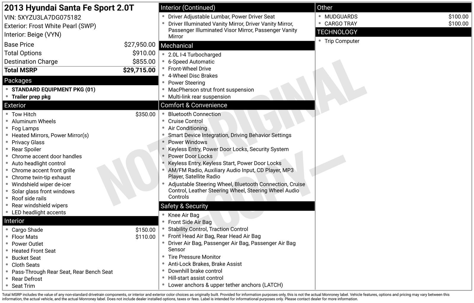 This online window sticker is provided for informational purposes only. Vehicle features, options, pricing and other information are subject to change. See your Hyundai dealer and the Monroney label affixed to the actual vehicle for the most up-to-date specifications and information.