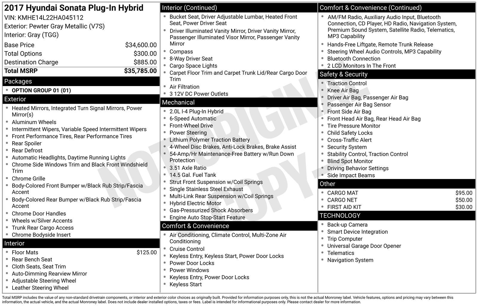 This online window sticker is provided for informational purposes only. Vehicle features, options, pricing and other information are subject to change. See your Hyundai dealer and the Monroney label affixed to the actual vehicle for the most up-to-date specifications and information.