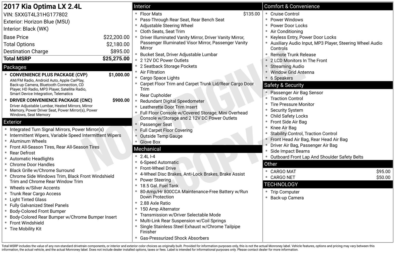 This online window sticker is provided for informational purposes only. Vehicle features, options, pricing and other information are subject to change. See your Hyundai dealer and the Monroney label affixed to the actual vehicle for the most up-to-date specifications and information.