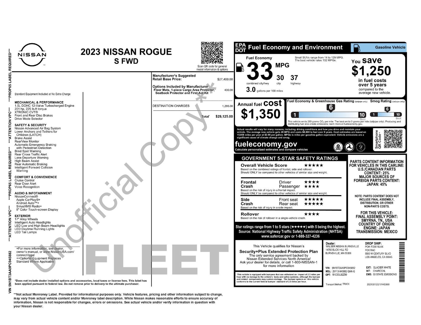 Clean CARFAX. CARFAX One-Owner. **KEYLESS ENTRY**, **BACKUP CAMERA**, **Bluetooth®**, **BLIND SPOT MONITOR**, **APPLE CARPLAY/ANDROID AUTO**, PORTABLE AUDIO CONNECTION/MP3. 2023 Glacier White Nissan Rogue S FWD