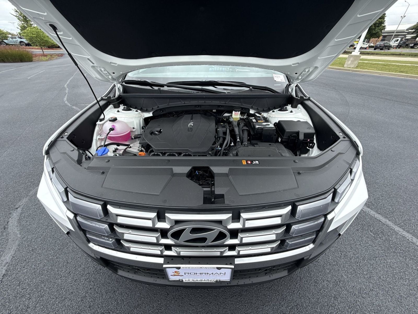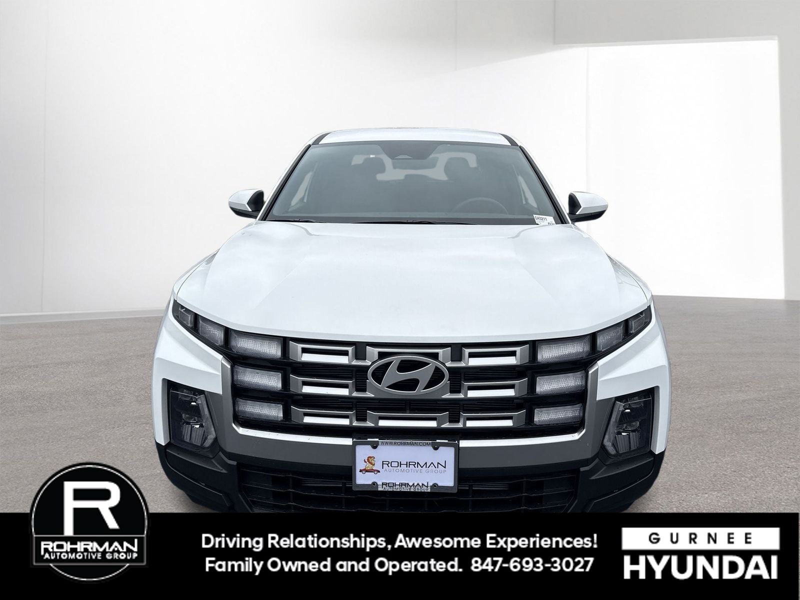 **ALL WHEEL DRIVE**, **PUSH BUTTON START**, **KEYLESS ENTRY**, **BACKUP CAMERA**, **Bluetooth®**, **REMOTE START**, **BLIND SPOT MONITOR**, **APPLE CARPLAY/ANDROID AUTO**, PORTABLE AUDIO CONNECTION/MP3, Option Group 01. With options like Option Group 01, 18 x 7.5J Alloy Wheels, 4-Wheel Disc Brakes, 4.081 Axle Ratio, 6 Speakers, ABS brakes, Air Conditioning, Alloy wheels, AM/FM radio: SiriusXM, Apple CarPlay & Android Auto, Auto High-beam Headlights, Auto-leveling suspension, Bed Cargo Net, Brake assist, Bumpers: body-color, Cargo Net, Carpeted Floor Mats, Compass, Delay-off headlights, Driver door bin, Driver vanity mirror, Dual front impact airbags, Dual front side impact airbags, Electronic Stability Control, Exterior Parking Camera Rear, First Aid Kit, Four wheel independent suspension, Front anti-roll bar, Front Bucket Seats, Front Center Armrest, Front reading lights, Fully automatic headlights, Illuminated entry, Low tire pressure warning, Mud Guards, Occupant sensing airbag, Outside temperature display, Overhead airbag, Overhead console, Panic alarm, Passenger door bin, Passenger vanity mirror, Power door mirrors, Power steering, Power windows, Radio data system, Radio: AM/FM/HD Audio System, Rear anti-roll bar, Rear side impact airbag, Rear step bumper, Rear window defroster, Remote keyless entry, Security system, Severe Weather Kit, Speed control, Speed-sensing steering, Split folding rear seat, Spoiler, Steering wheel mounted audio controls, Tachometer, Telescoping steering wheel, Tilt steering wheel, Traction control, Trip computer, and Variably intermittent wipers. Atlas White 2026 Hyundai Santa Cruz SE AWD 8-Speed Automatic with SHIFTRONIC 2.5L I4